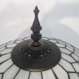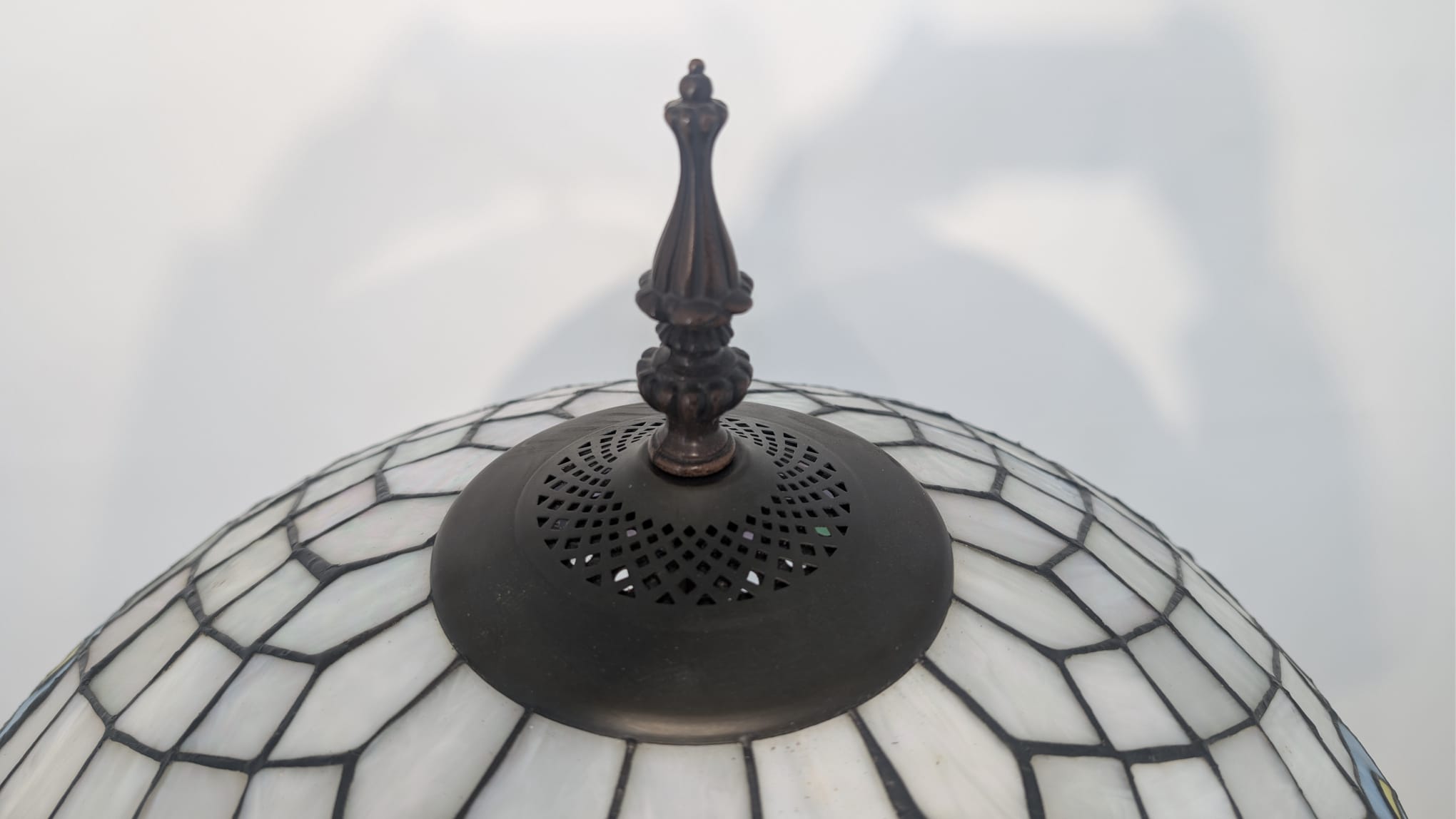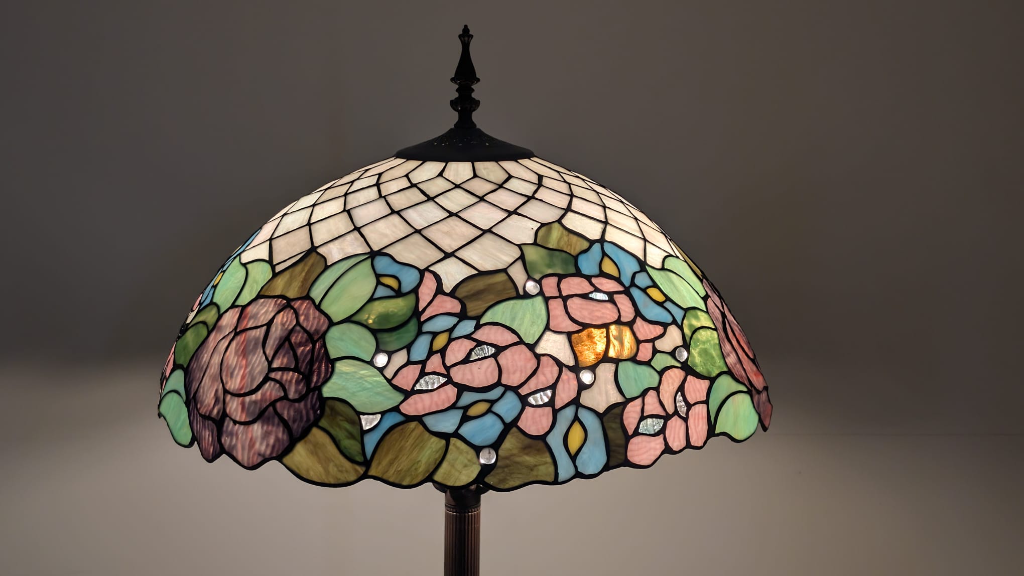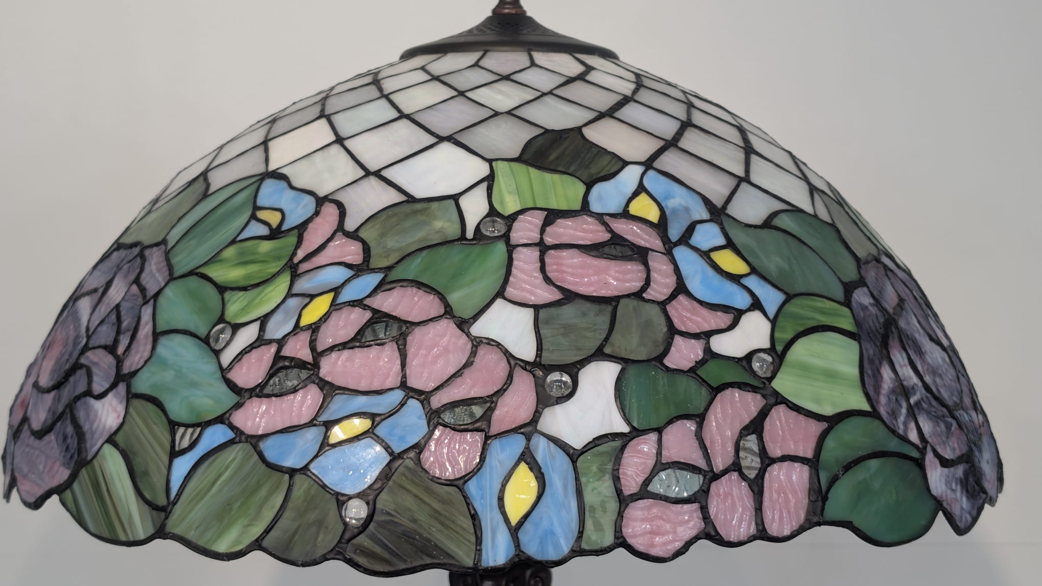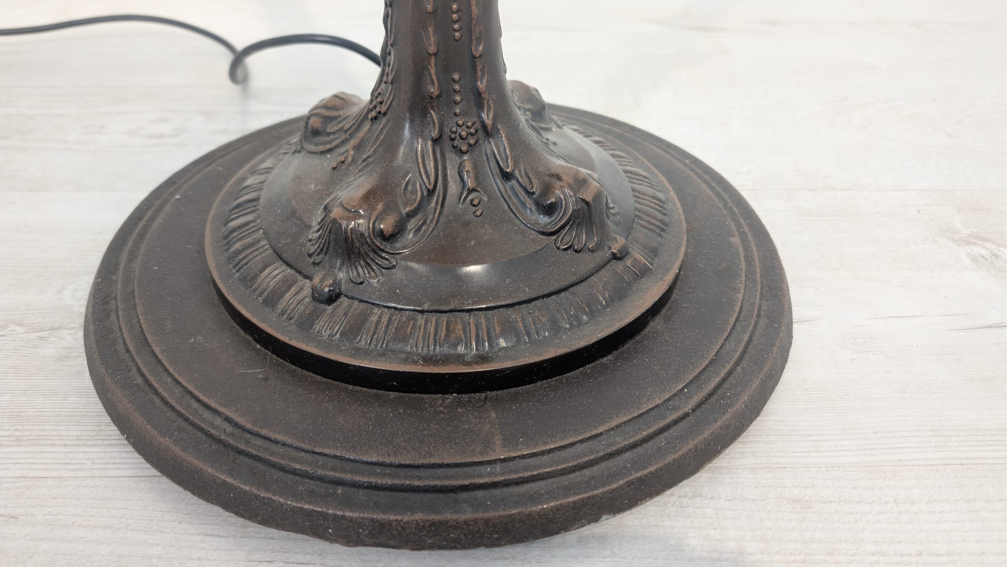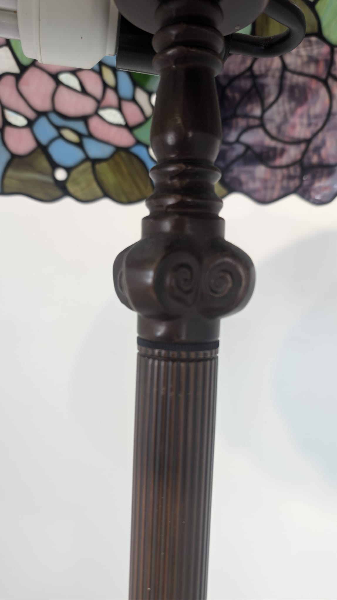 Piękna, stylowa lampa podłogowa w stylu Tiffany’ego. Klosz wykonany z kolorowego, witrażowego szkła tworzy niepowtarzalny, ciepły nastrój. Podstawa lampy w ciemnym kolorze doskonale komponuje się z całością. Produkt używany, ale w dobrym stanie. Świetna dekoracja do każdego wnętrza.