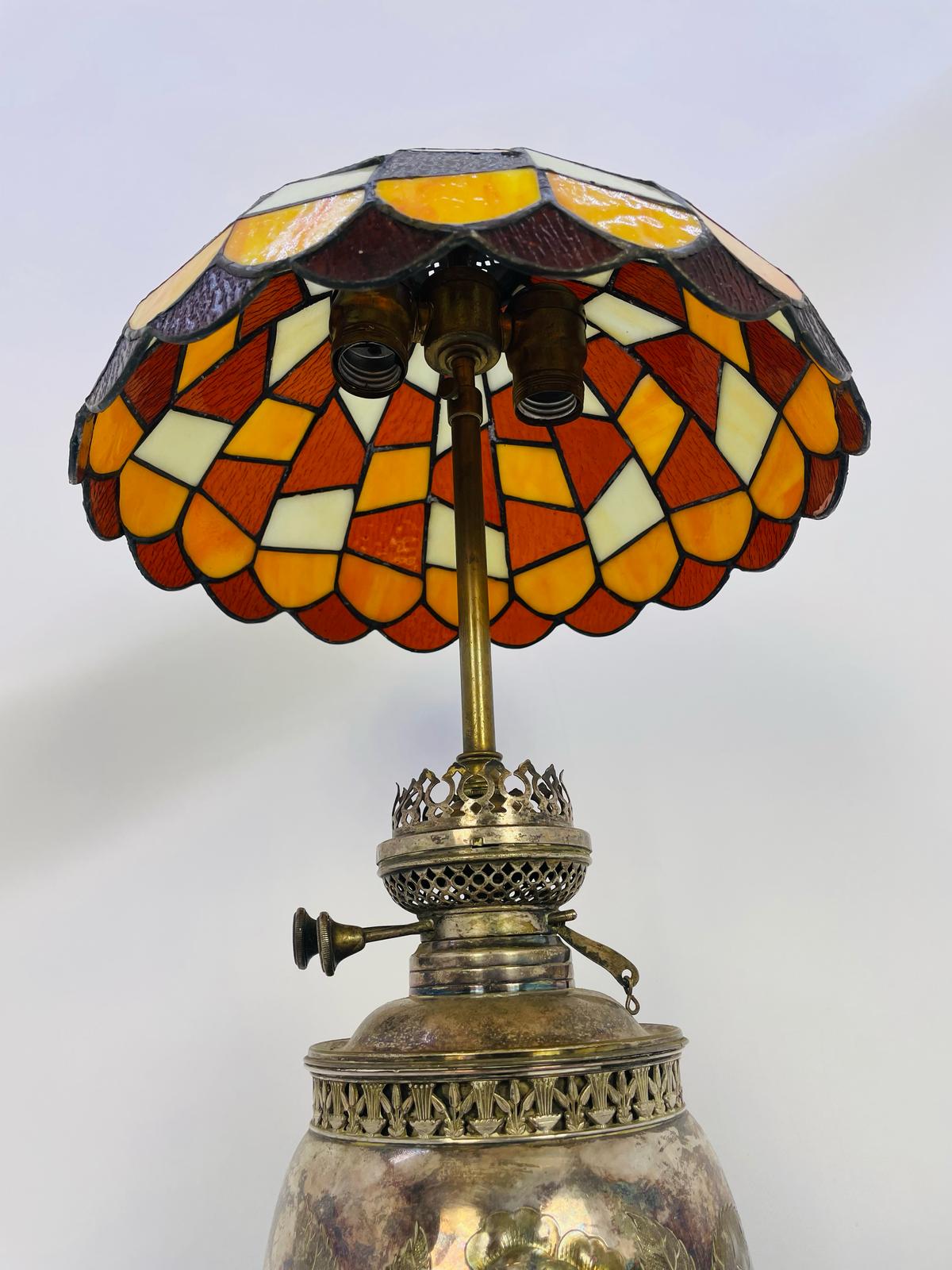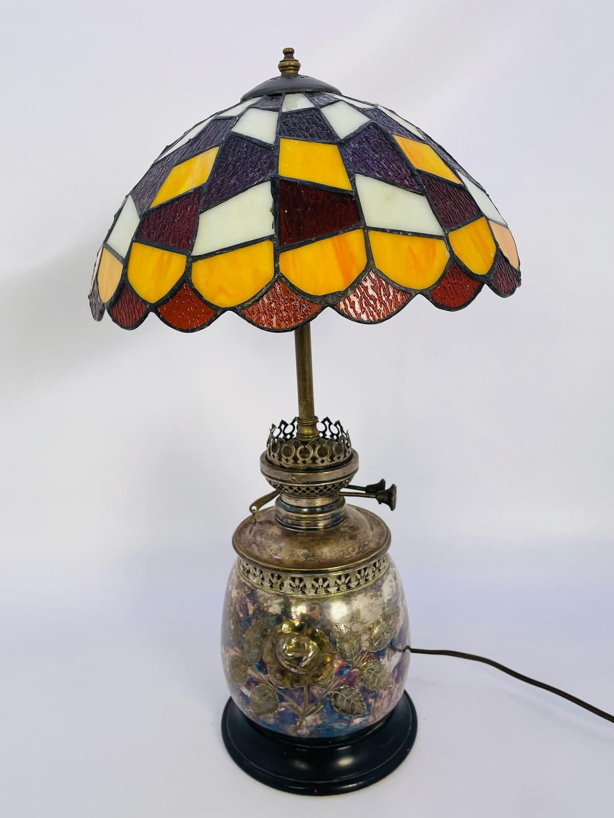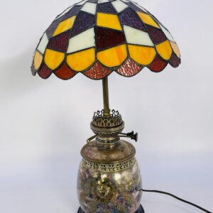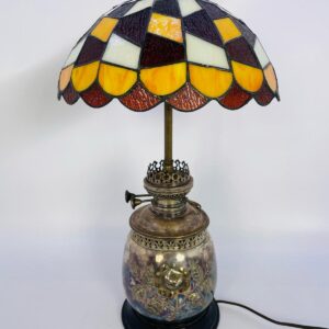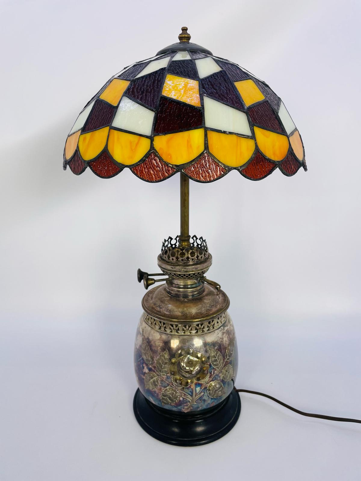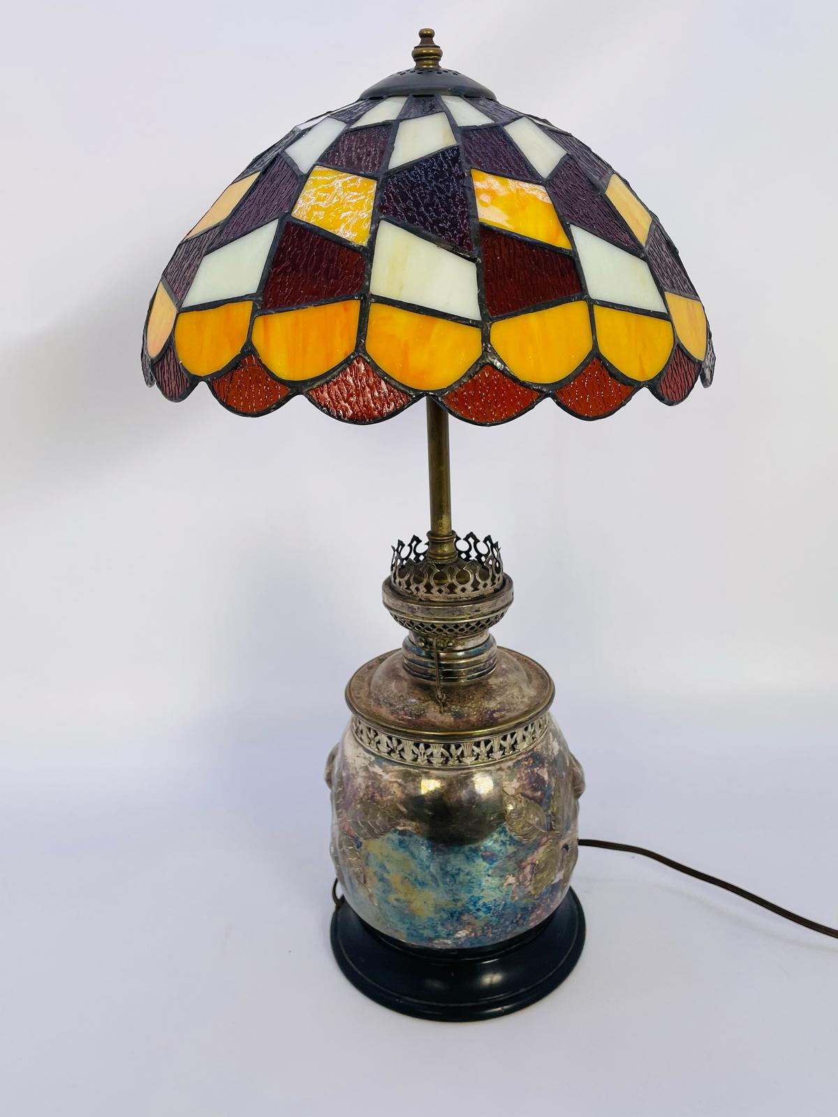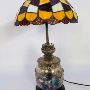 Lampka stołowa, nocna w stylu Tiffany srebrzona lata 70/80-te