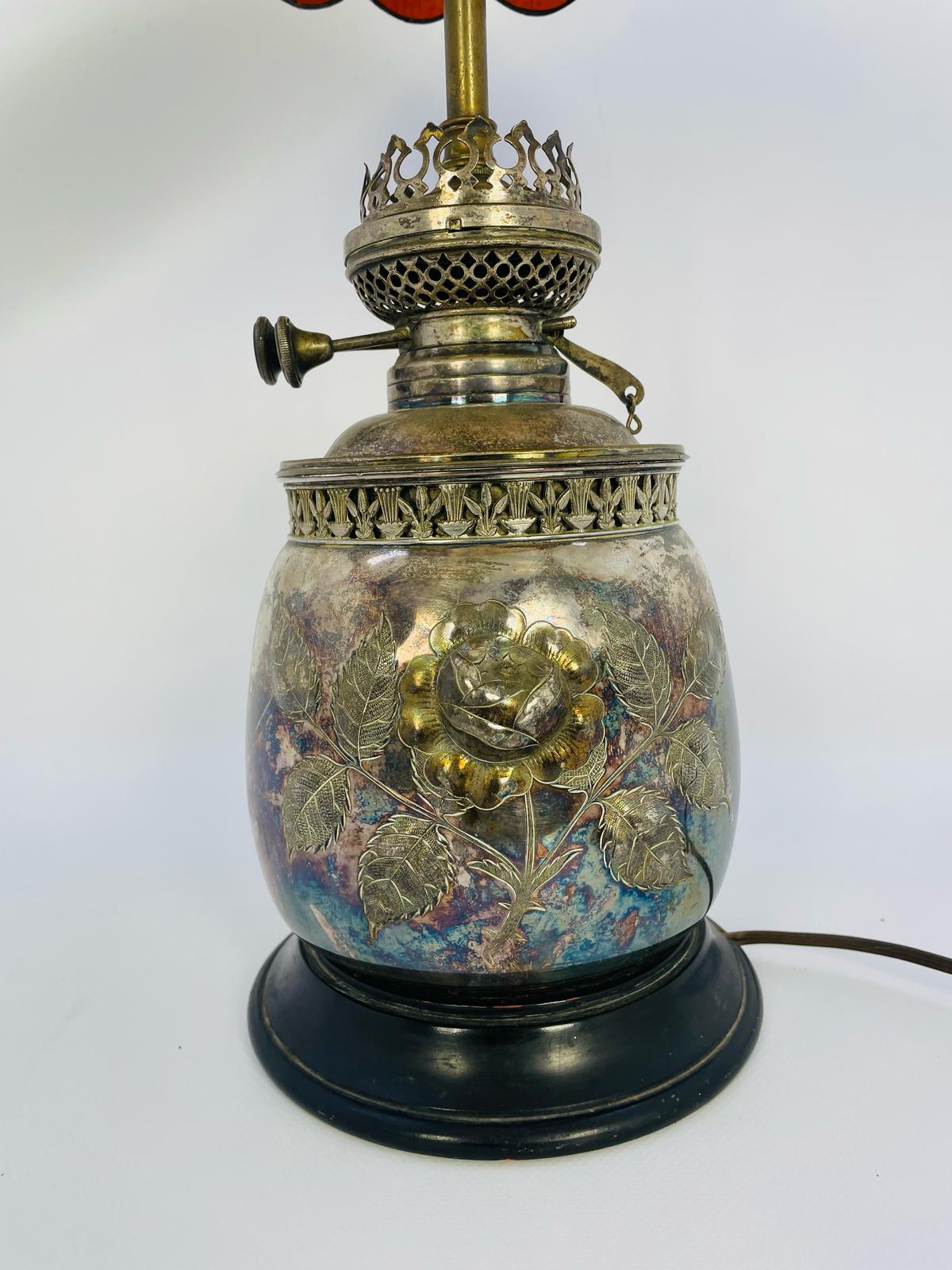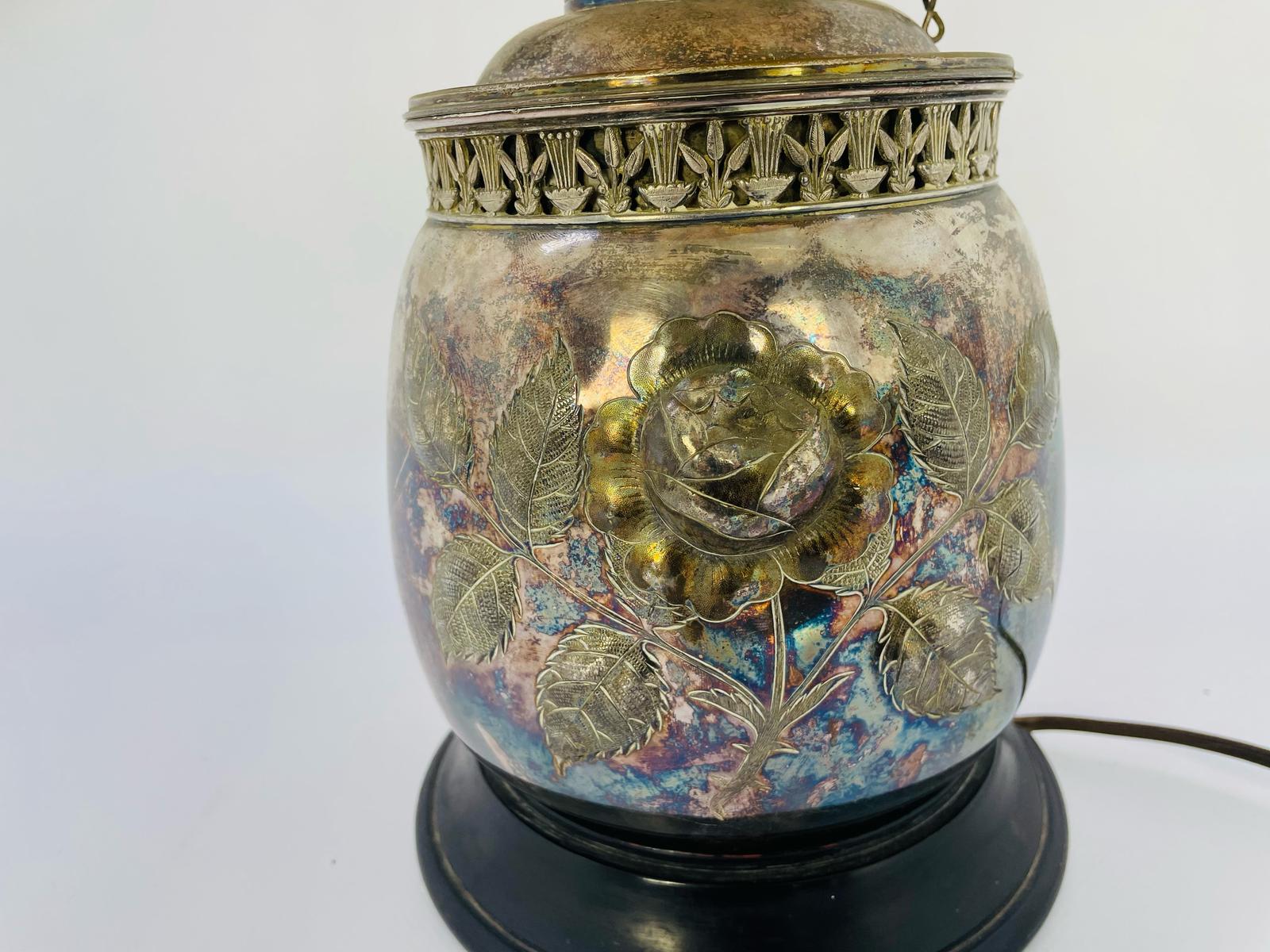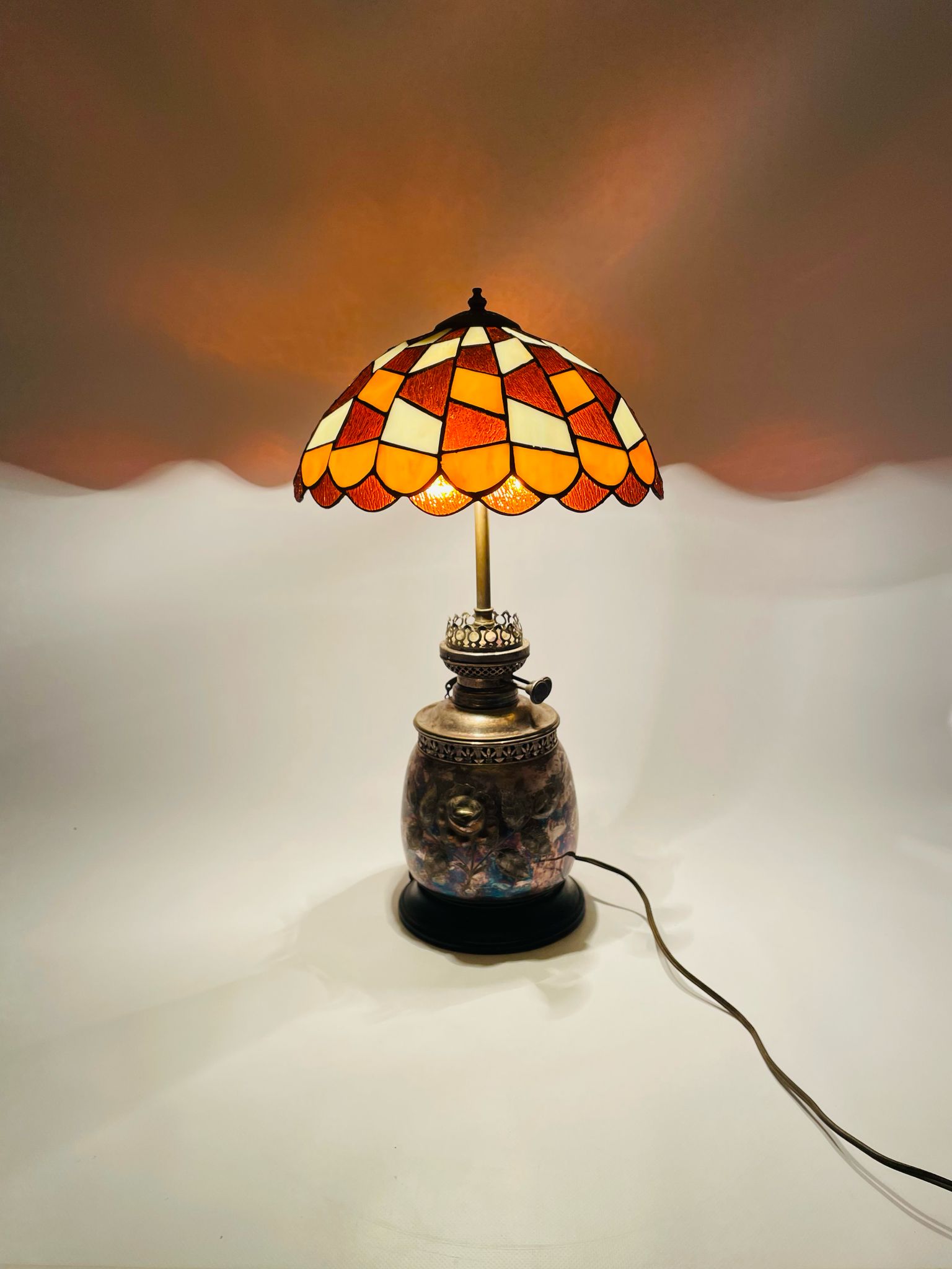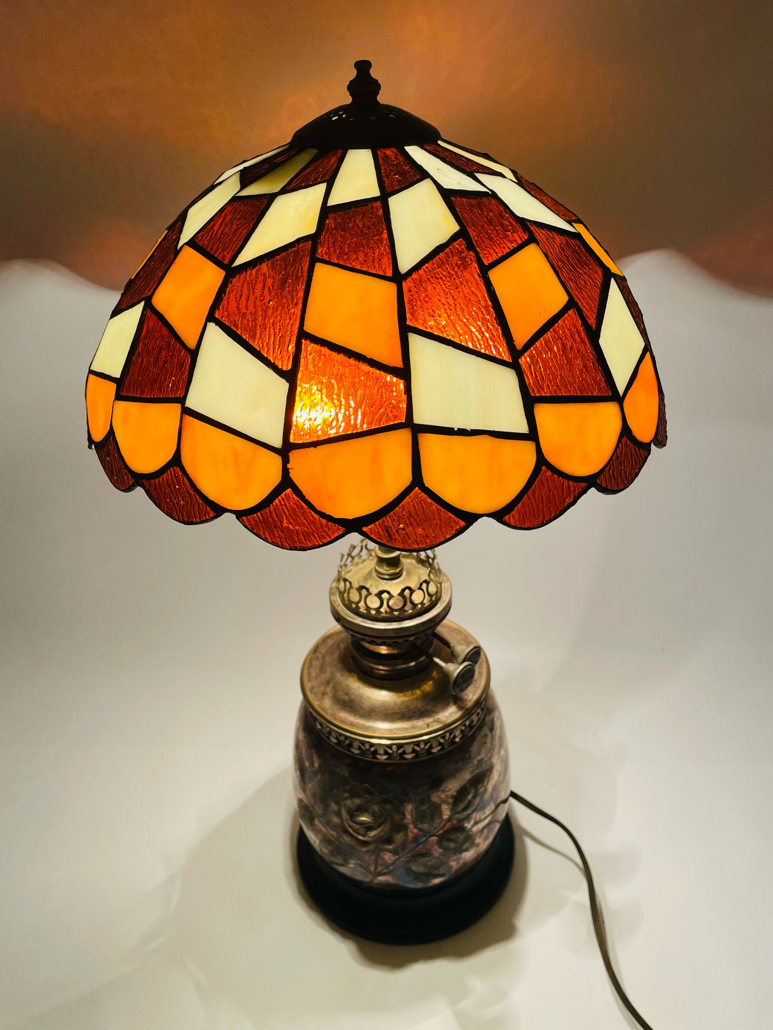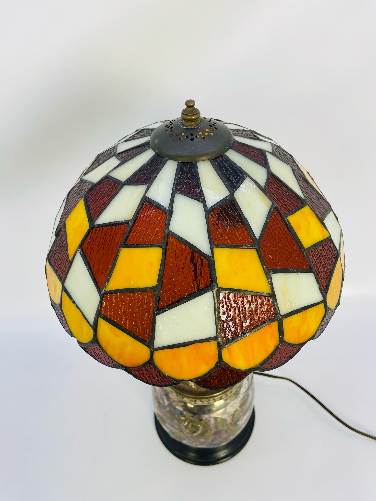 Lampka stołowa, nocna w stylu Tiffany srebrzona lata 70/80-te