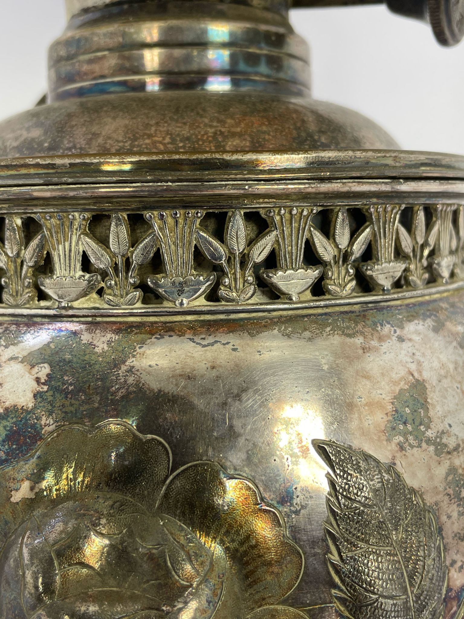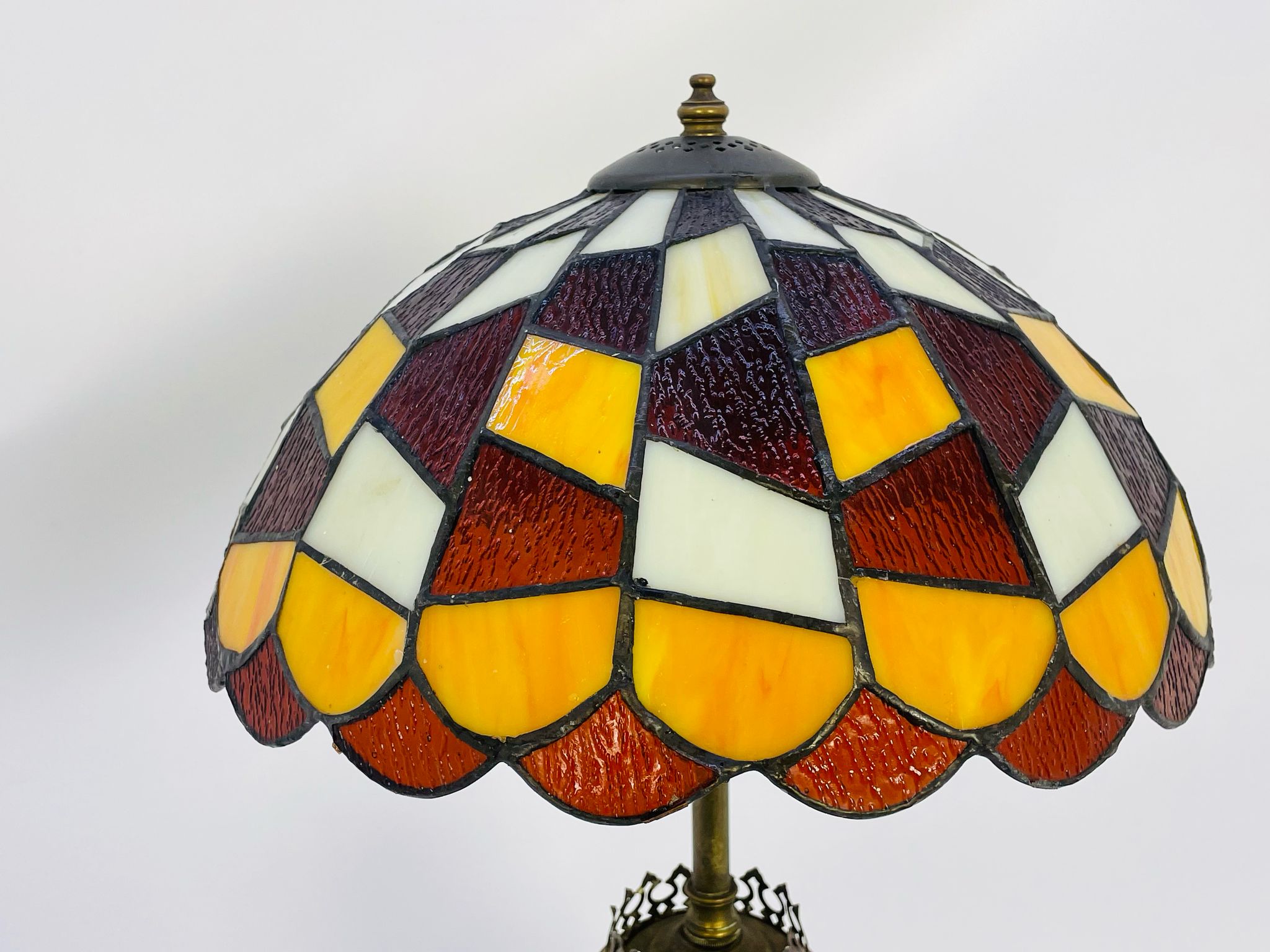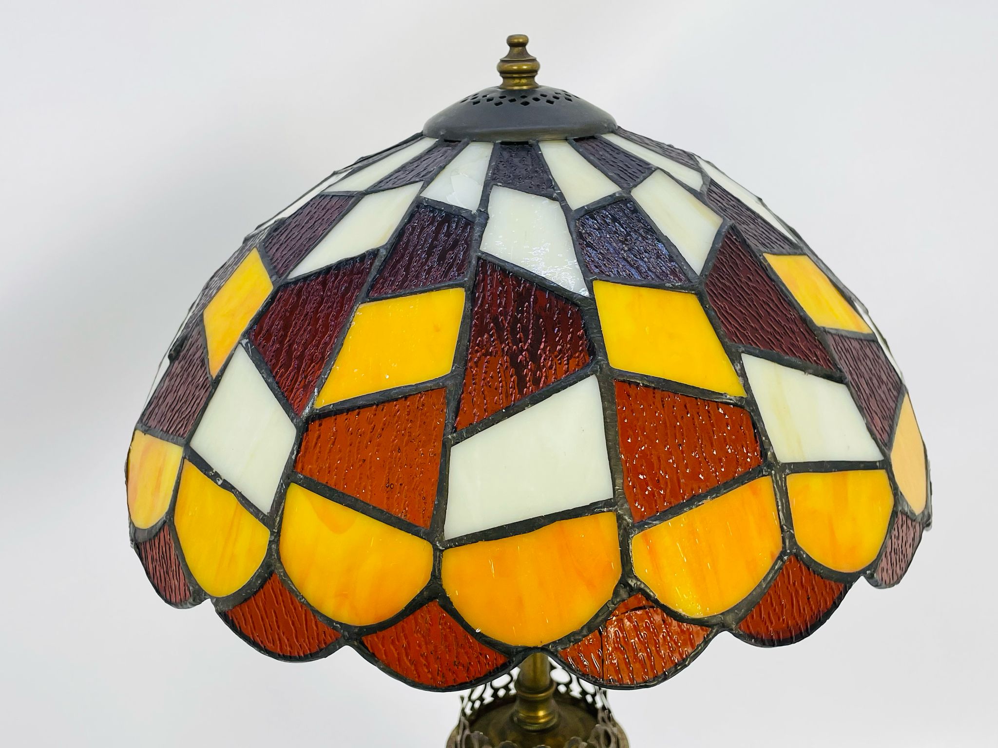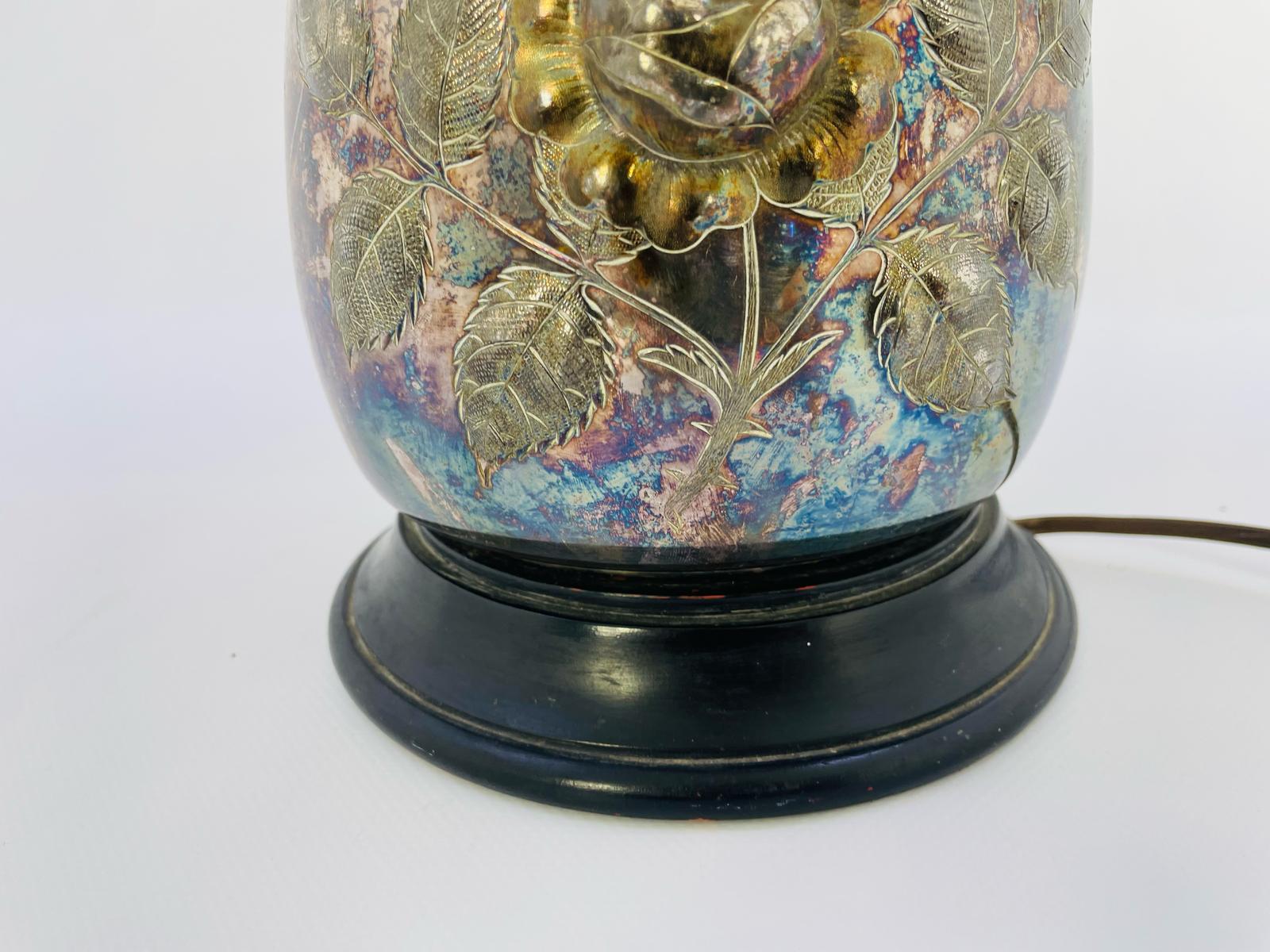 Lampka stołowa, nocna w stylu Tiffany srebrzona lata 70/80-te