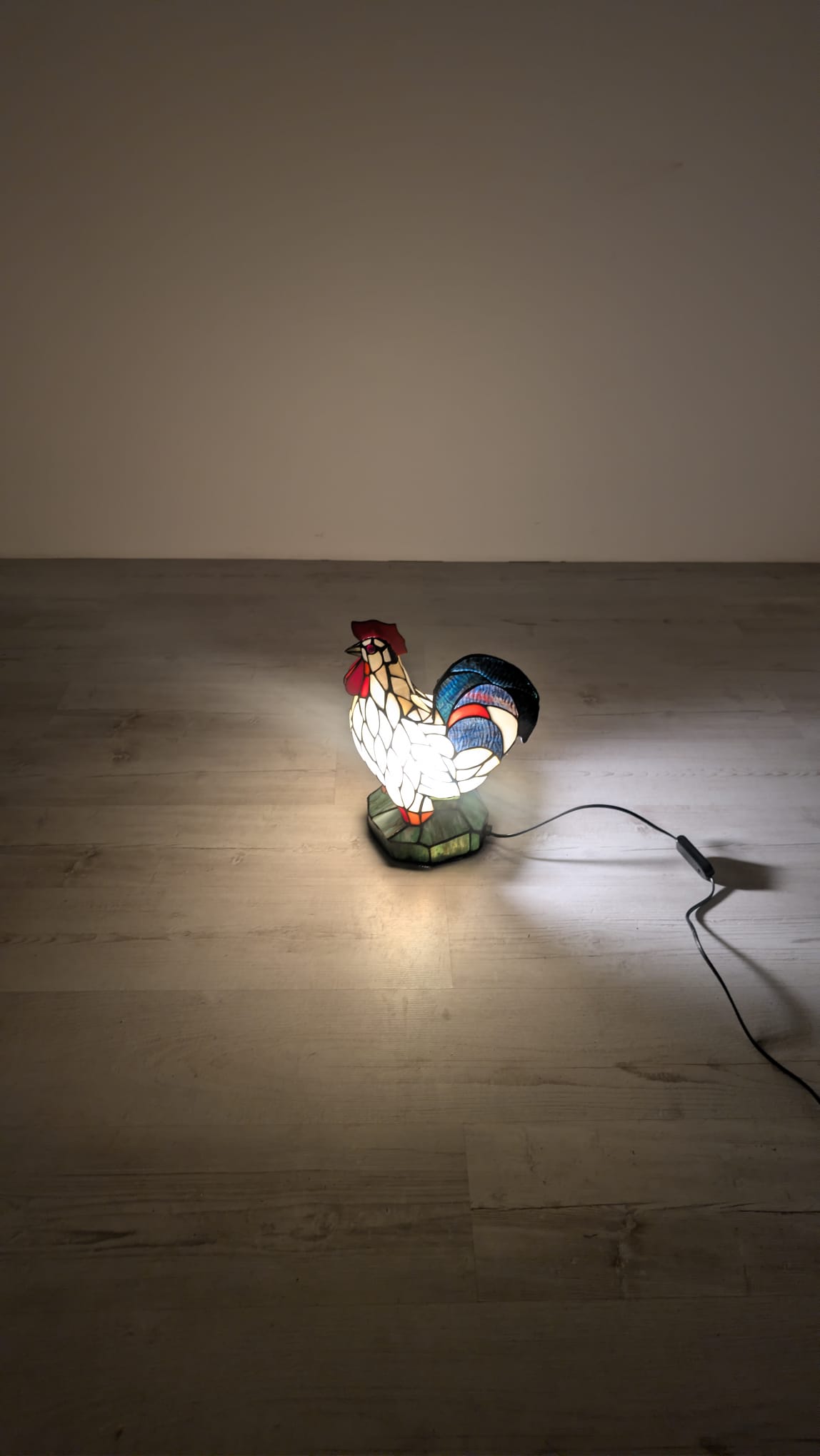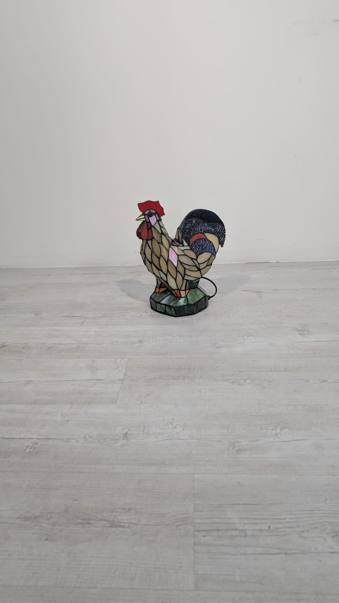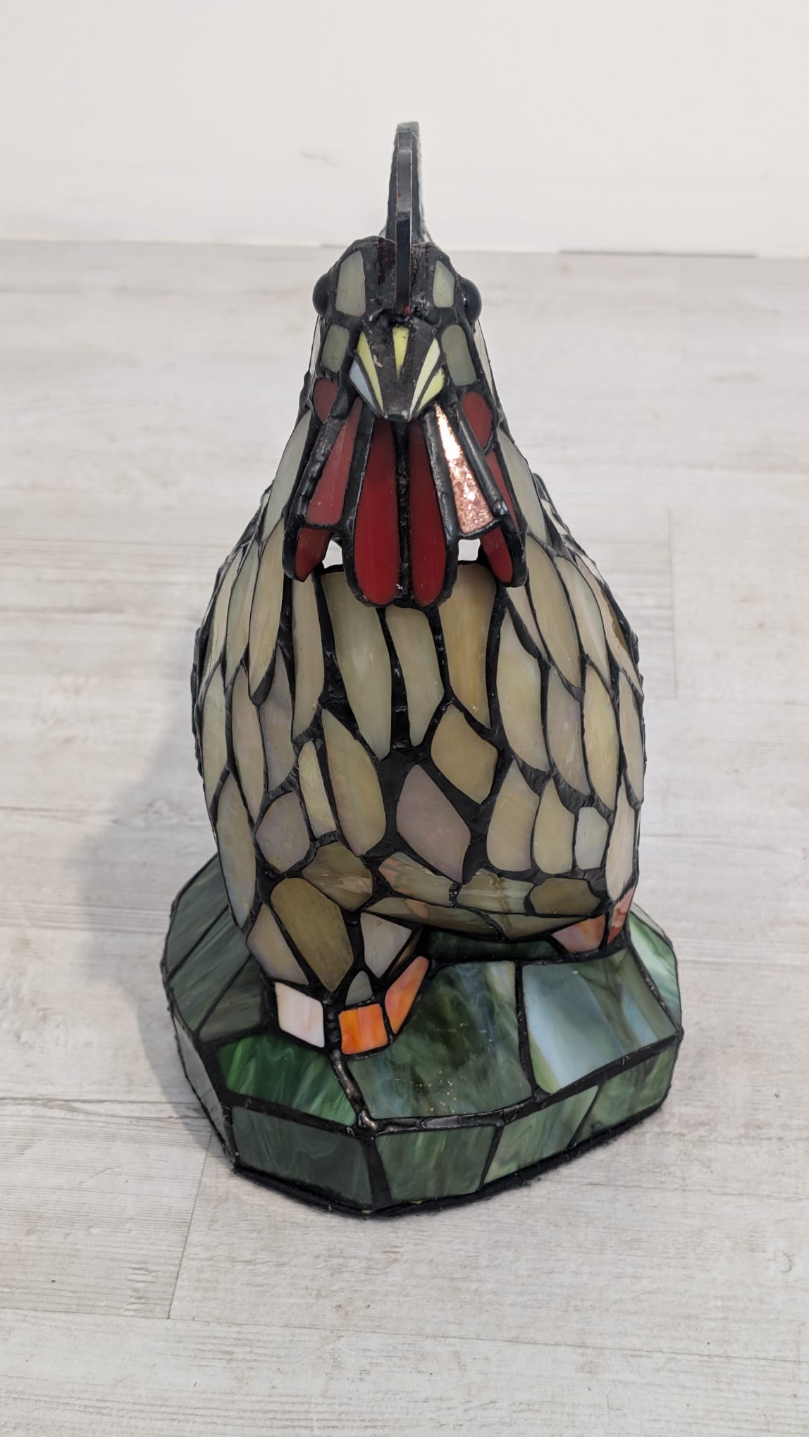 Oryginalna, ręcznie wykonana lampa stołowa w kształcie kolorowego koguta. Wykonana z barwionego szkła w stylu Tiffany’ego, nadaje niepowtarzalny klimat każdemu wnętrzu. Produkt używany, ale w dobrym stanie. Doskonała dekoracja do domu lub biura.