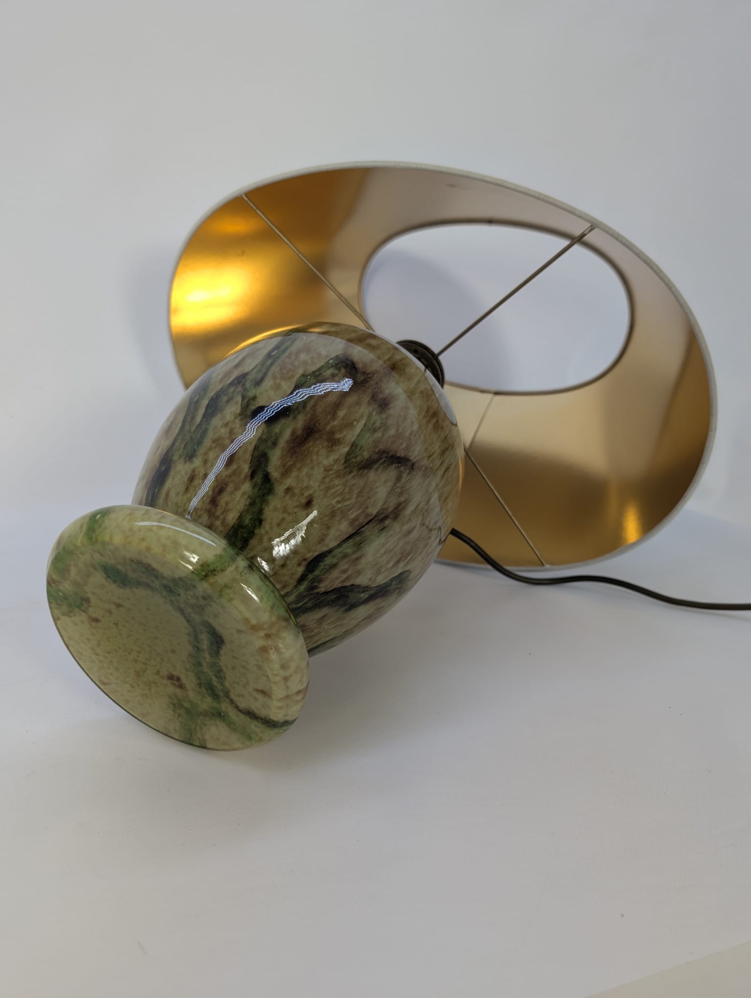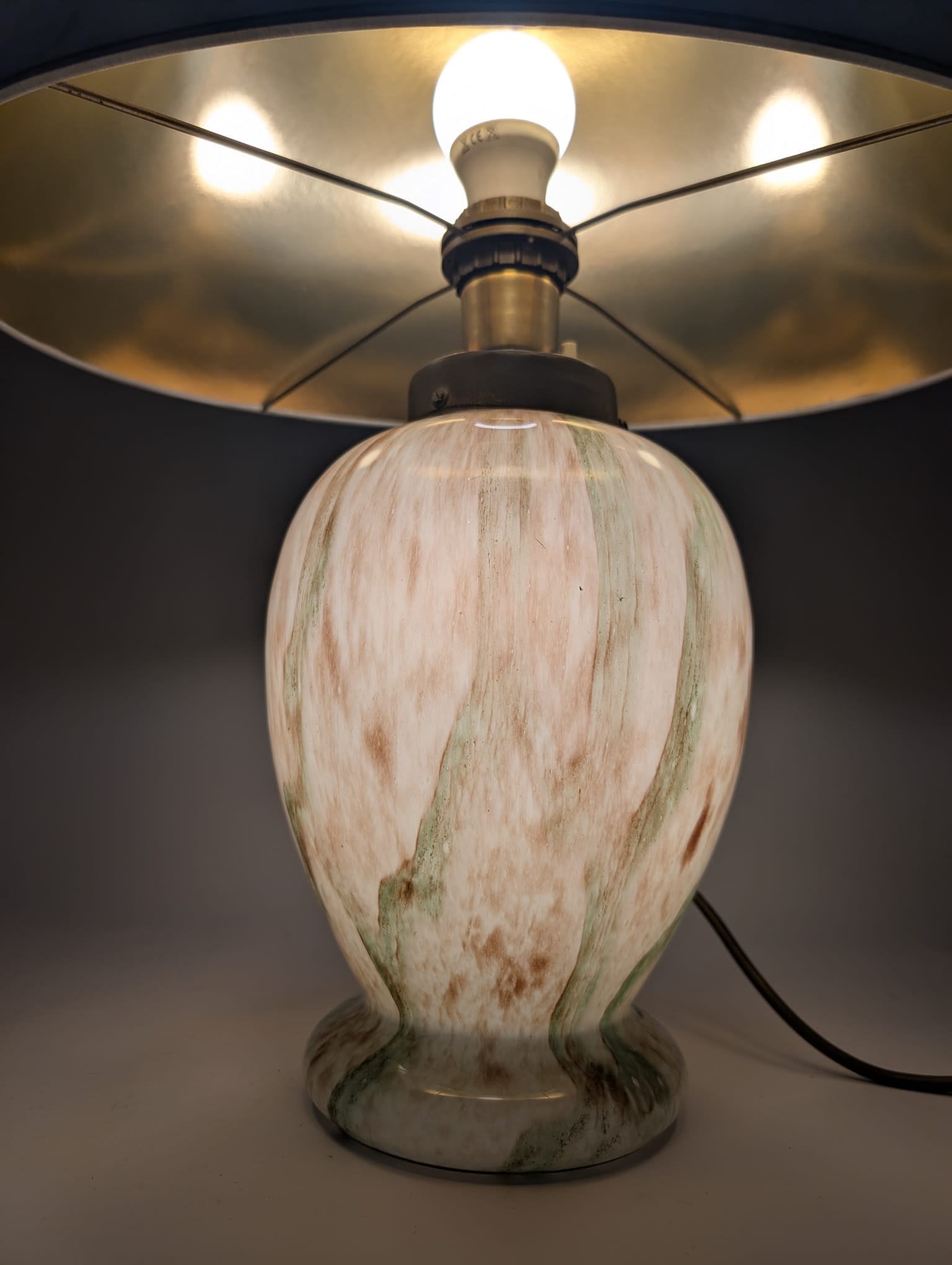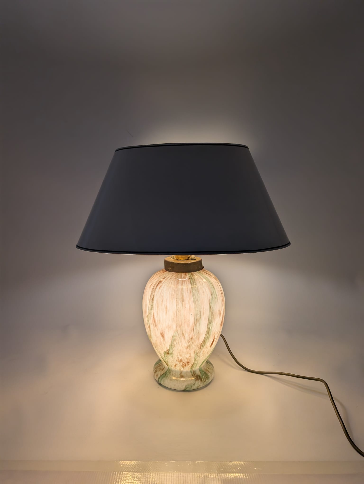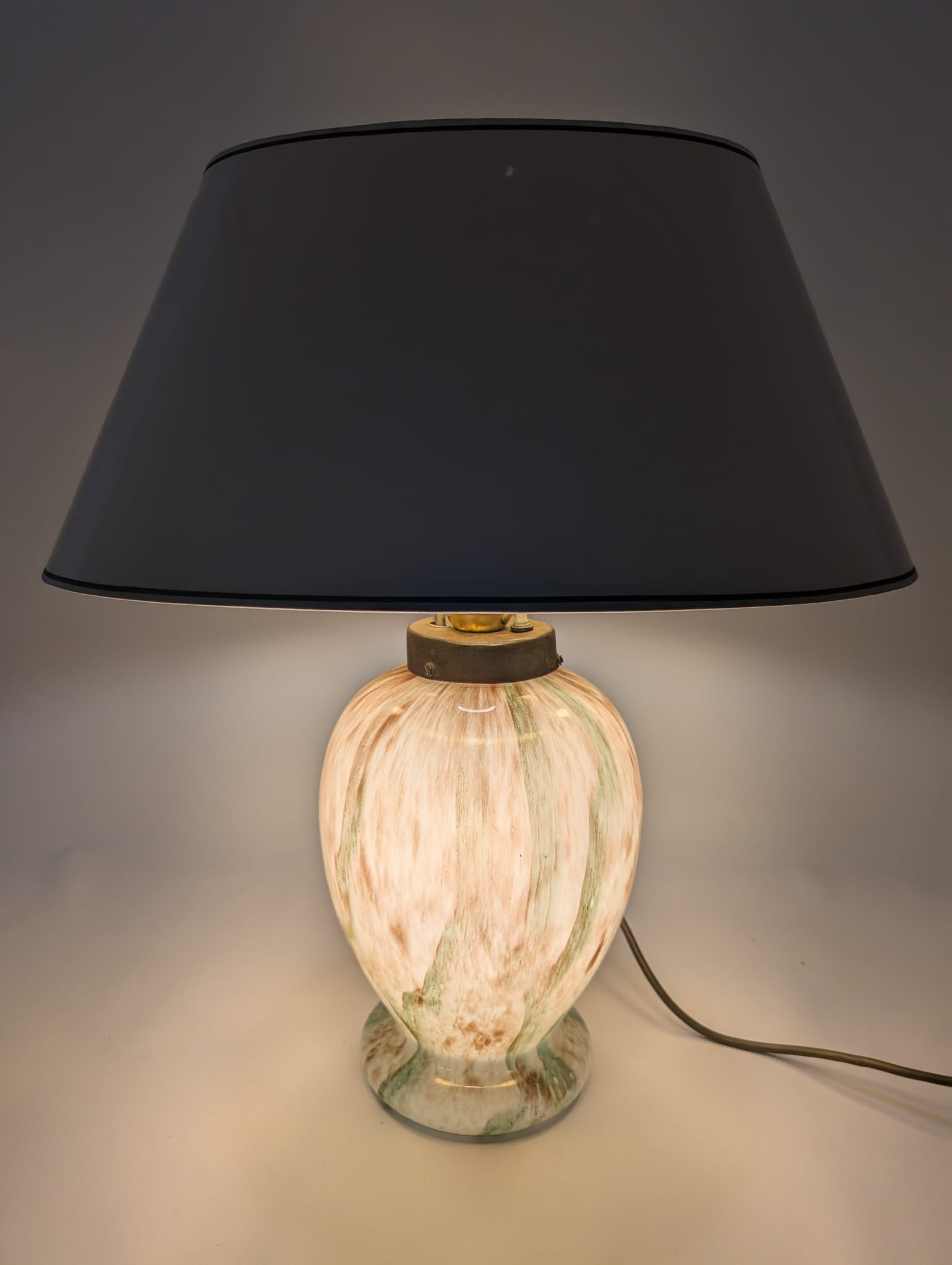Lampka włoska murano z piękną szklaną zieloną opływową podstawa.