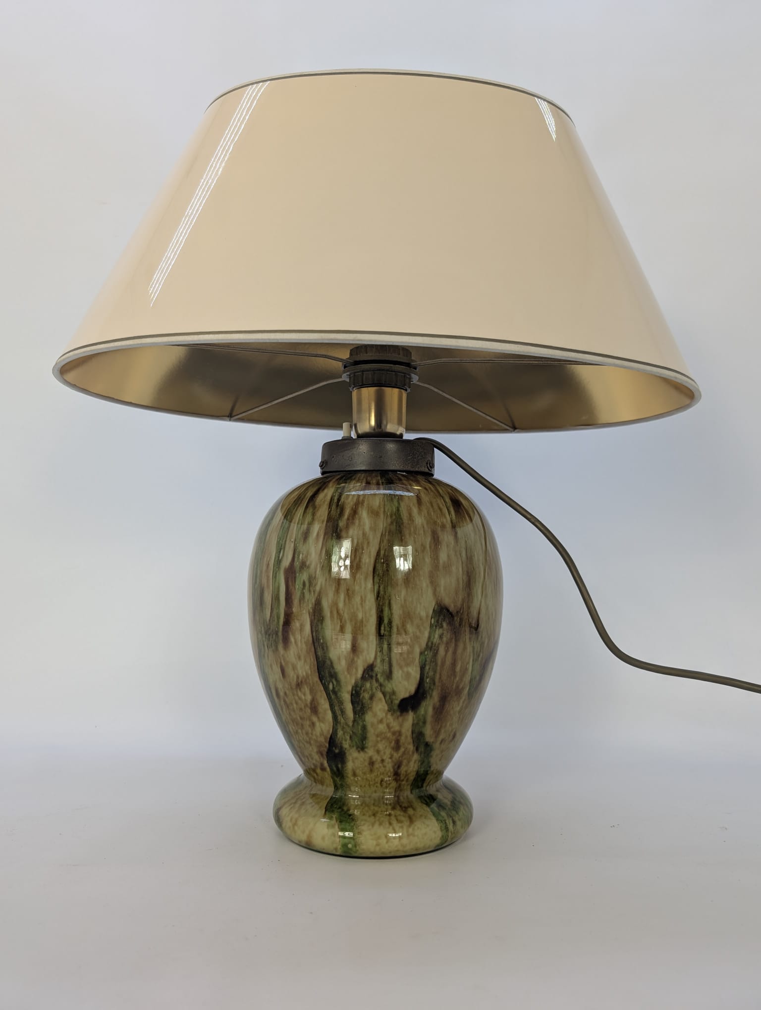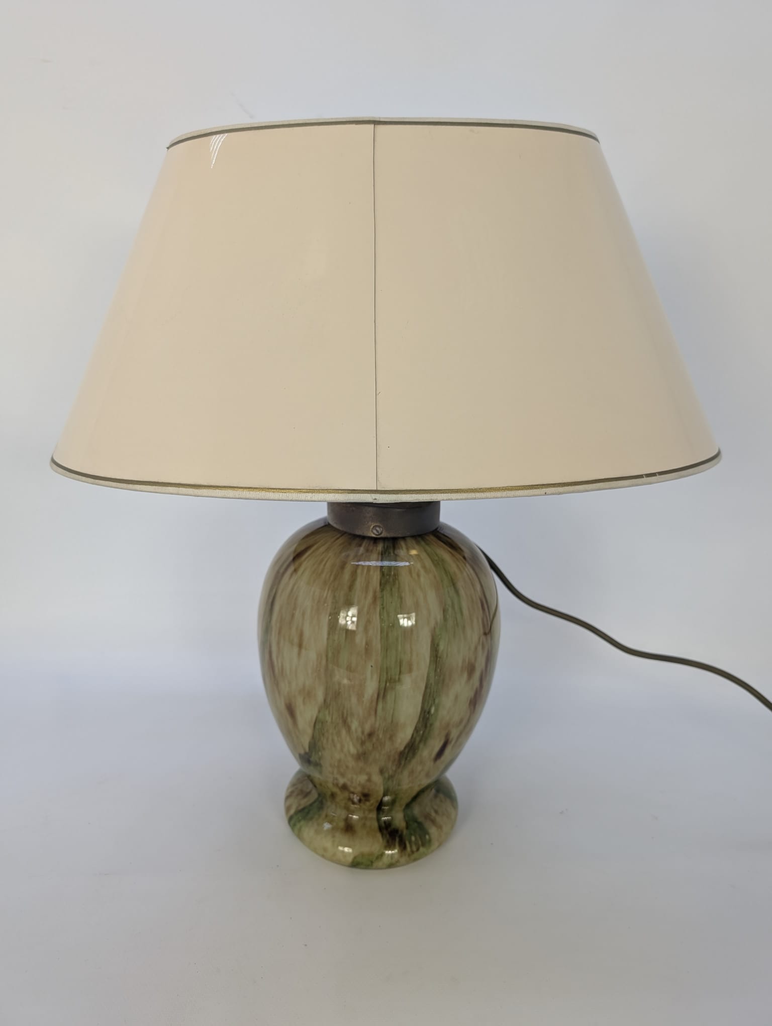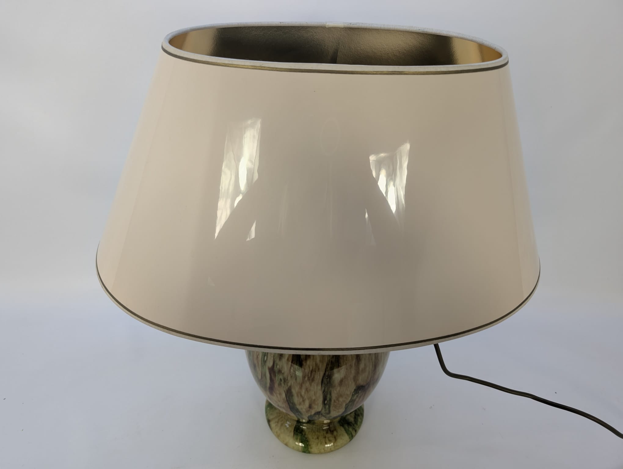 Lampka włoska murano z piękną szklaną zieloną opływową podstawa.