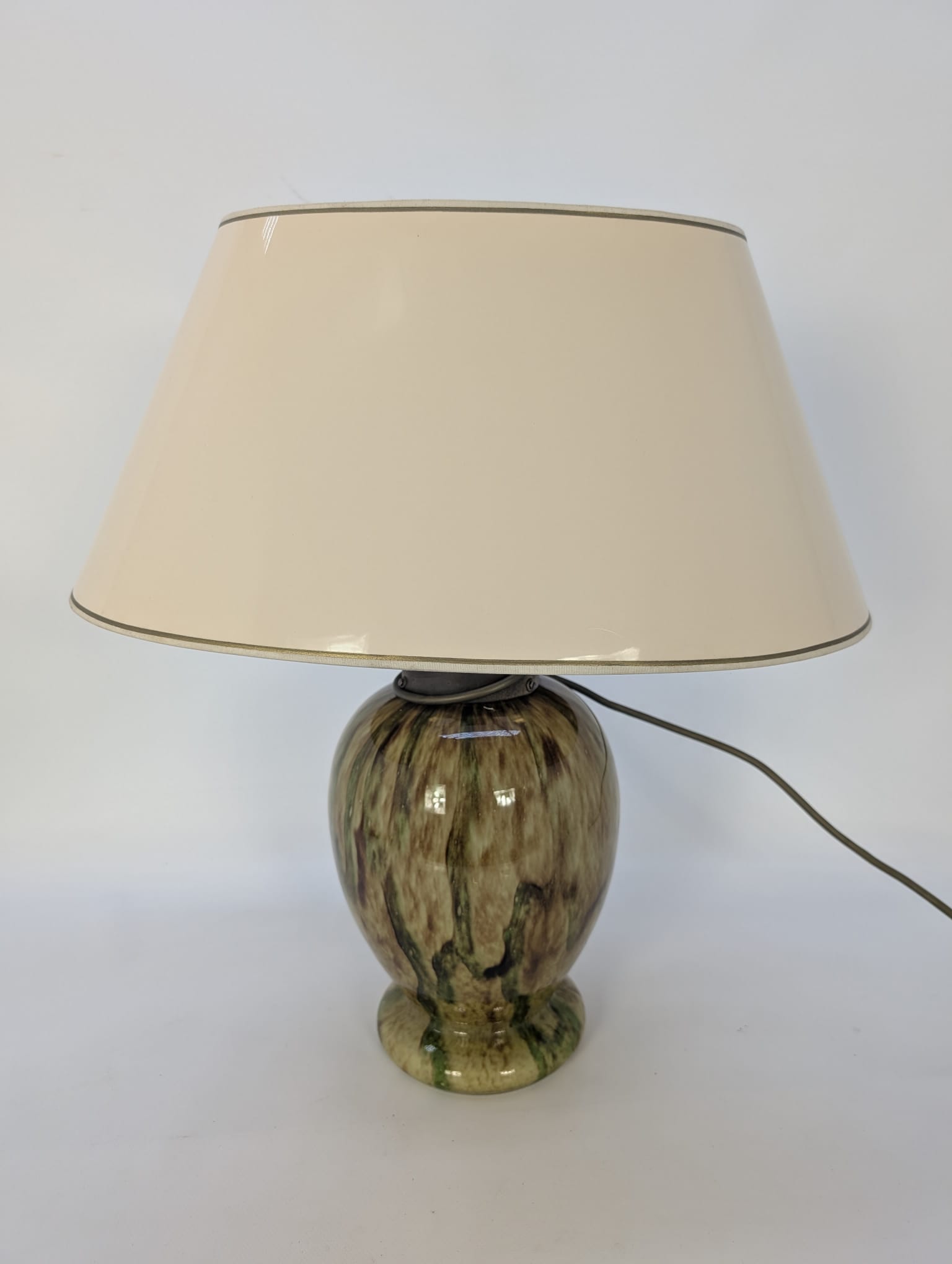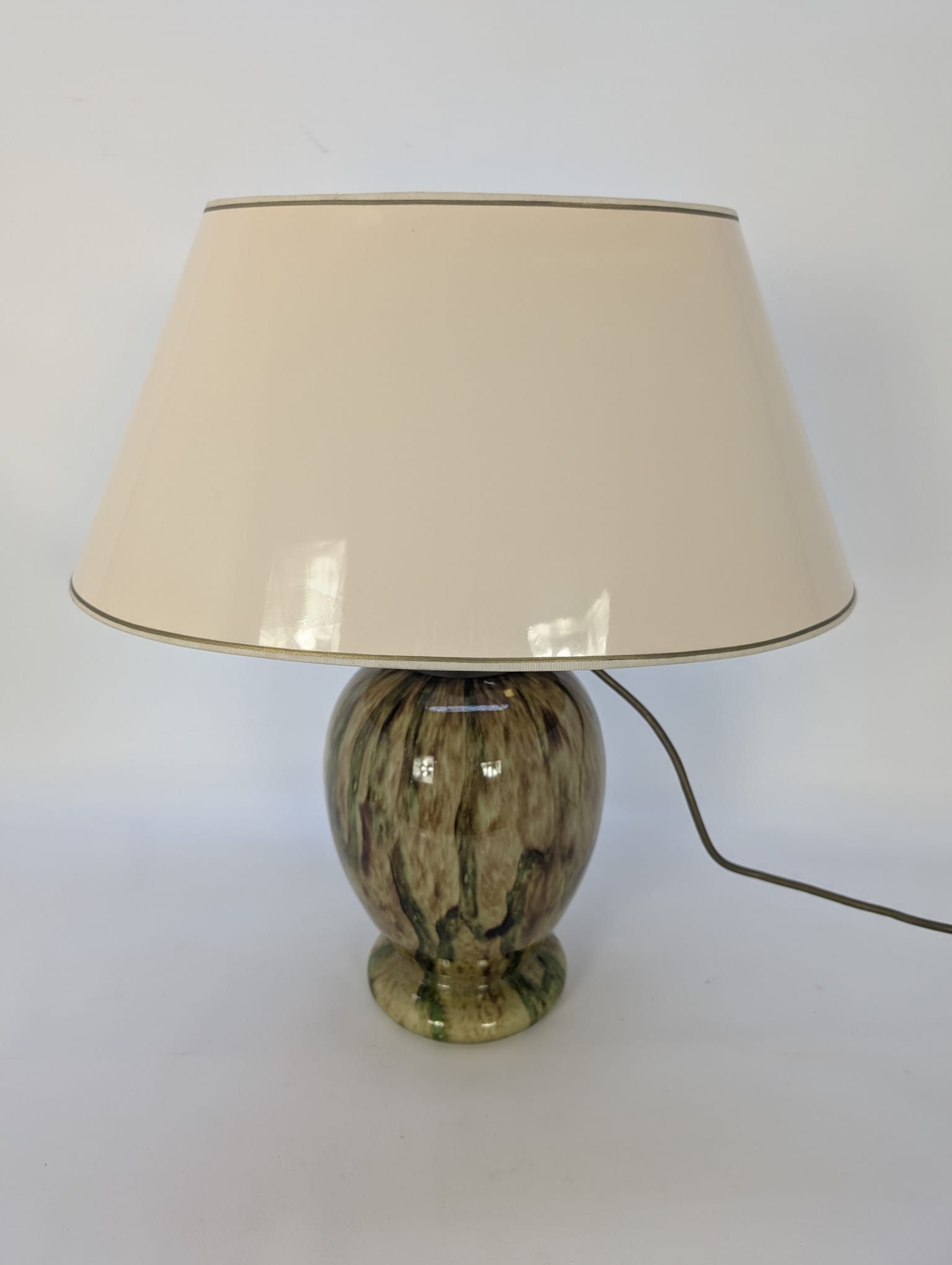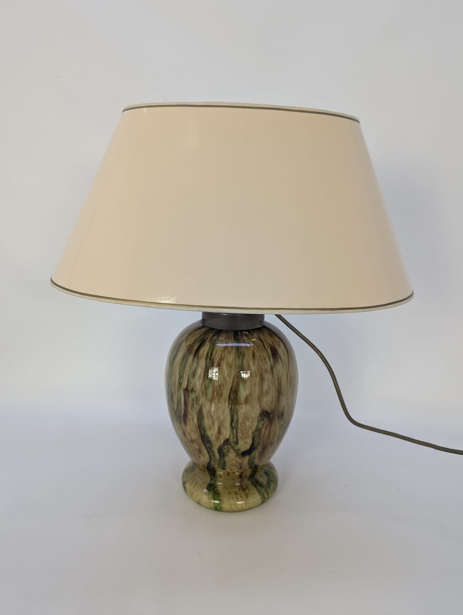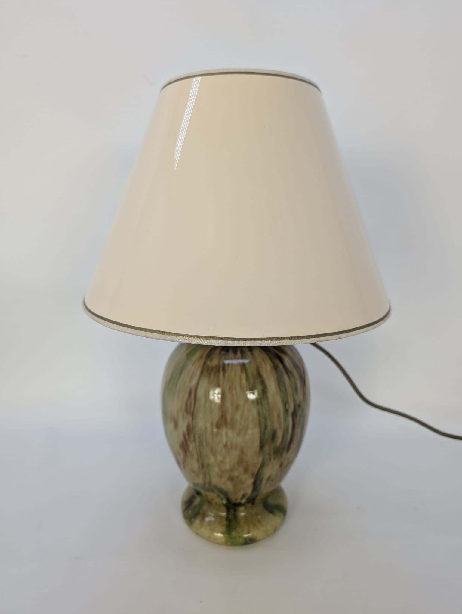 Lampka włoska murano z piękną szklaną zieloną opływową podstawa.