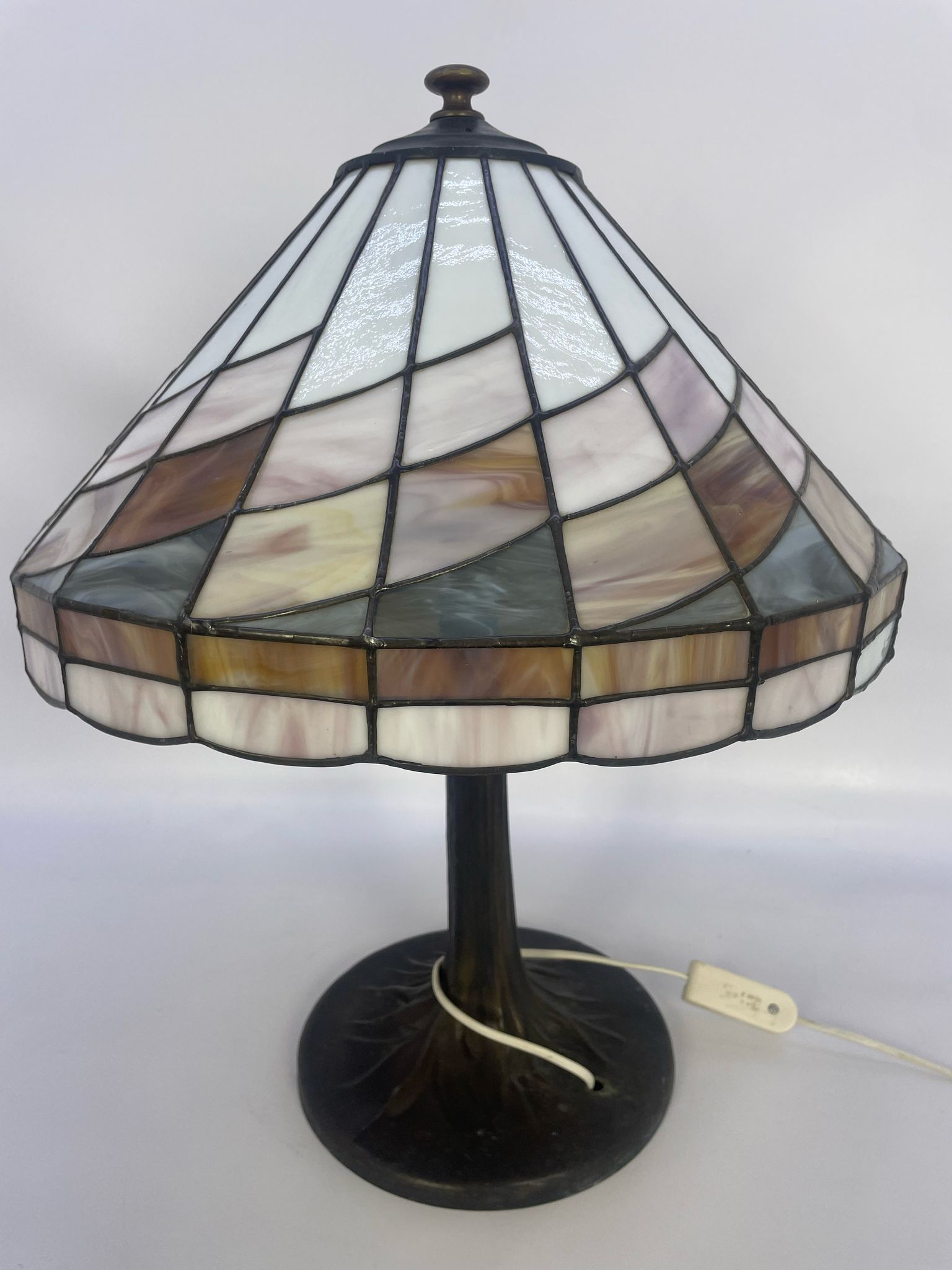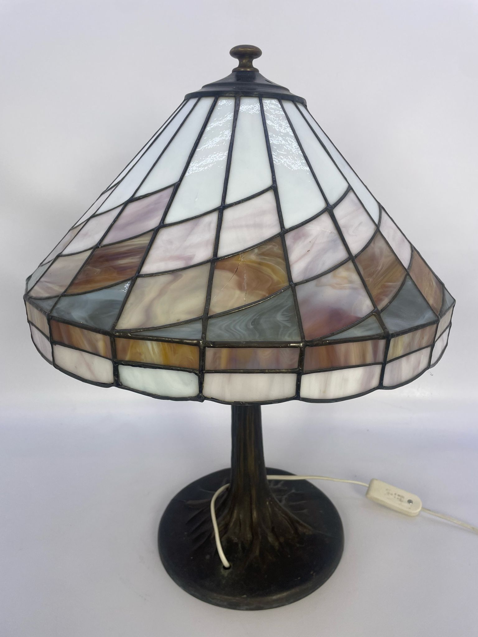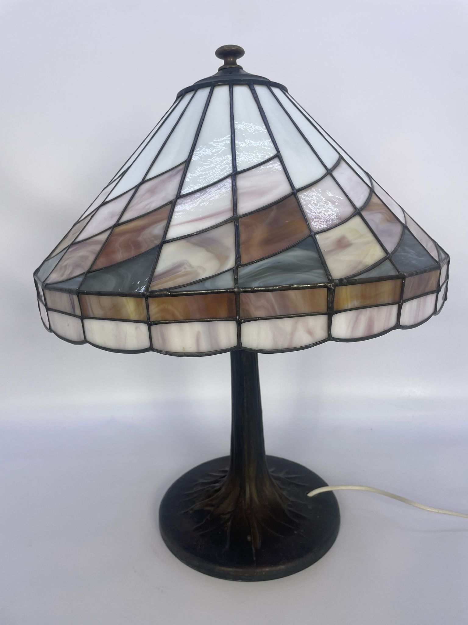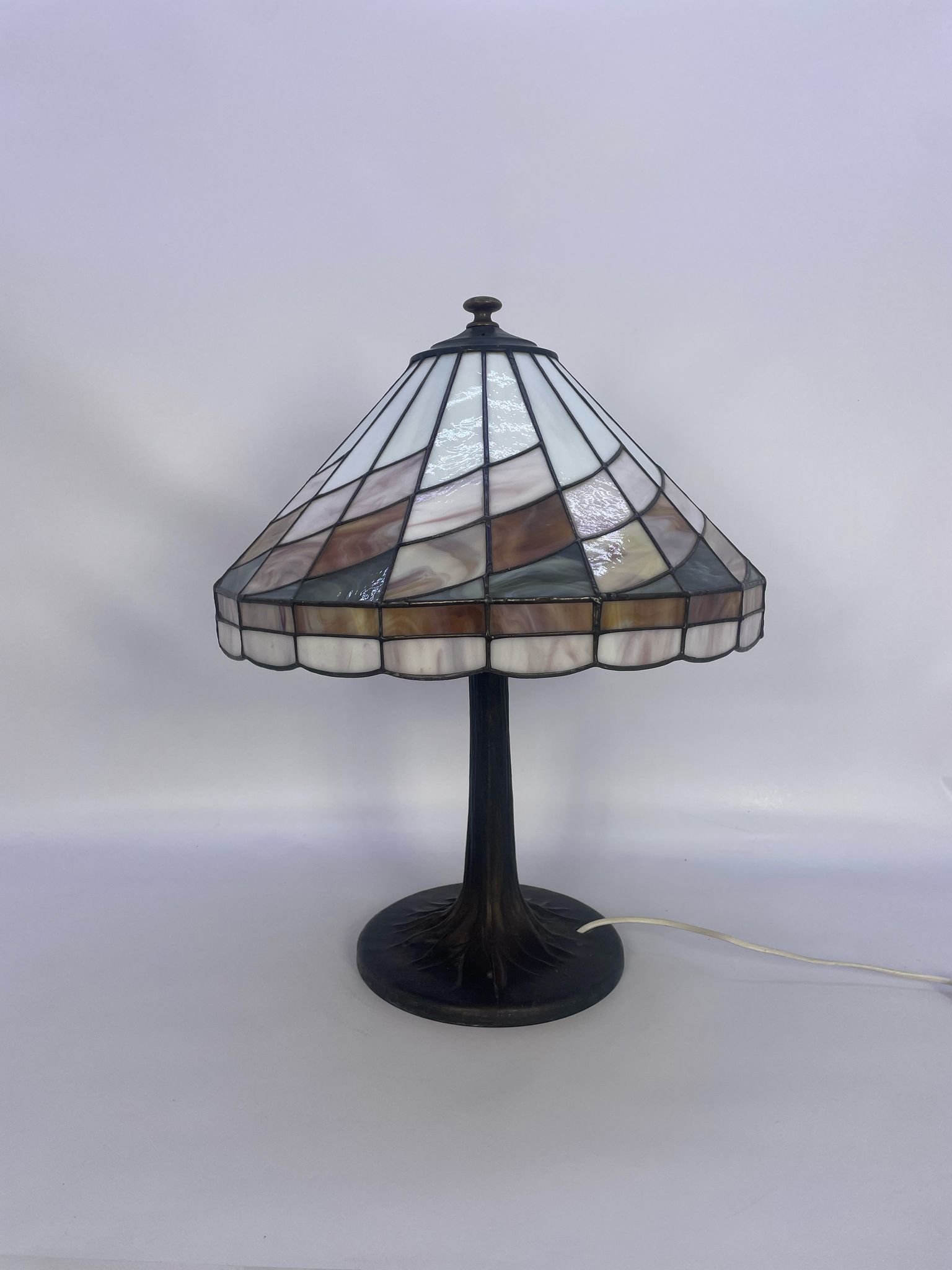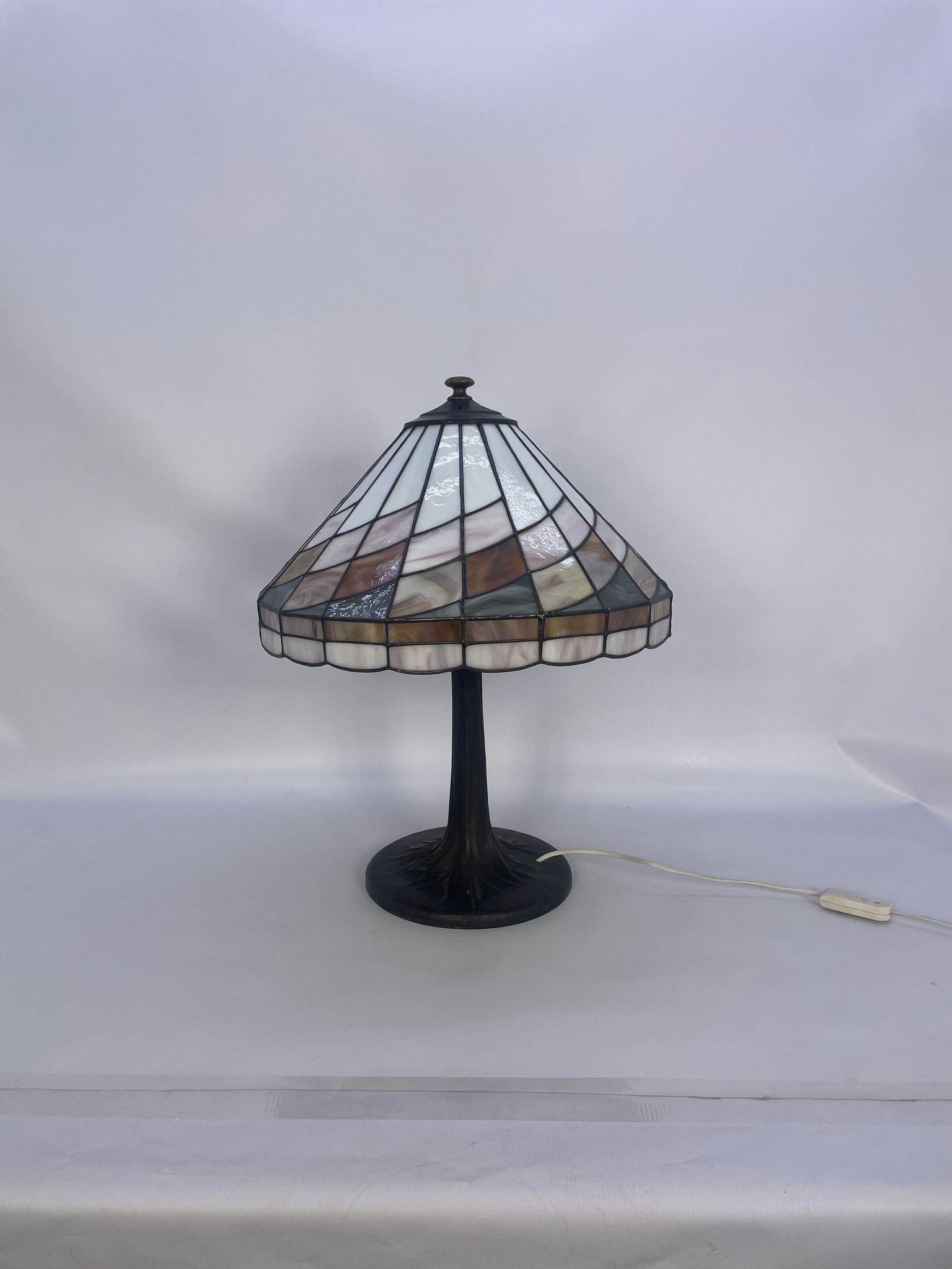 Lampka stołowa w stylu Tiffany z brązu