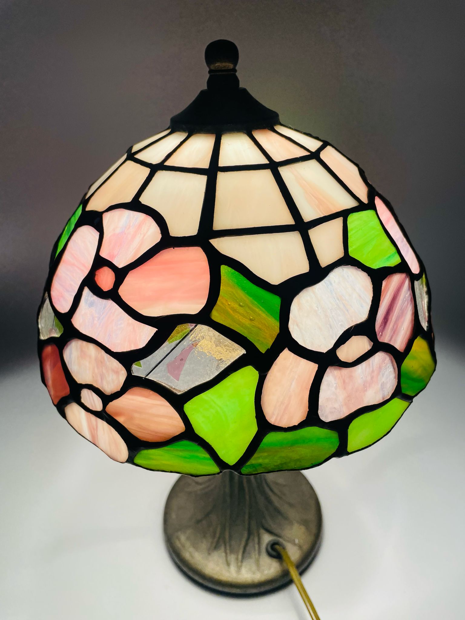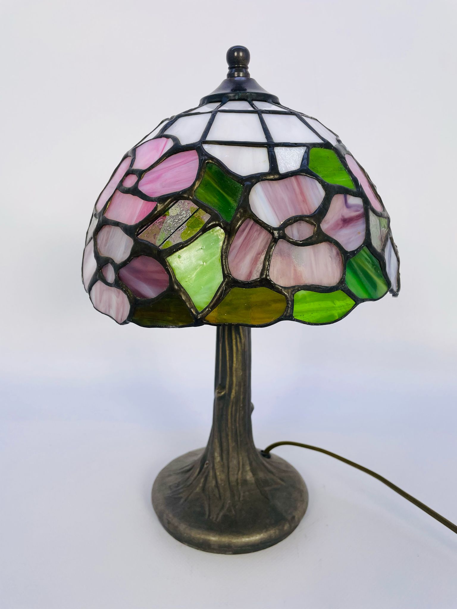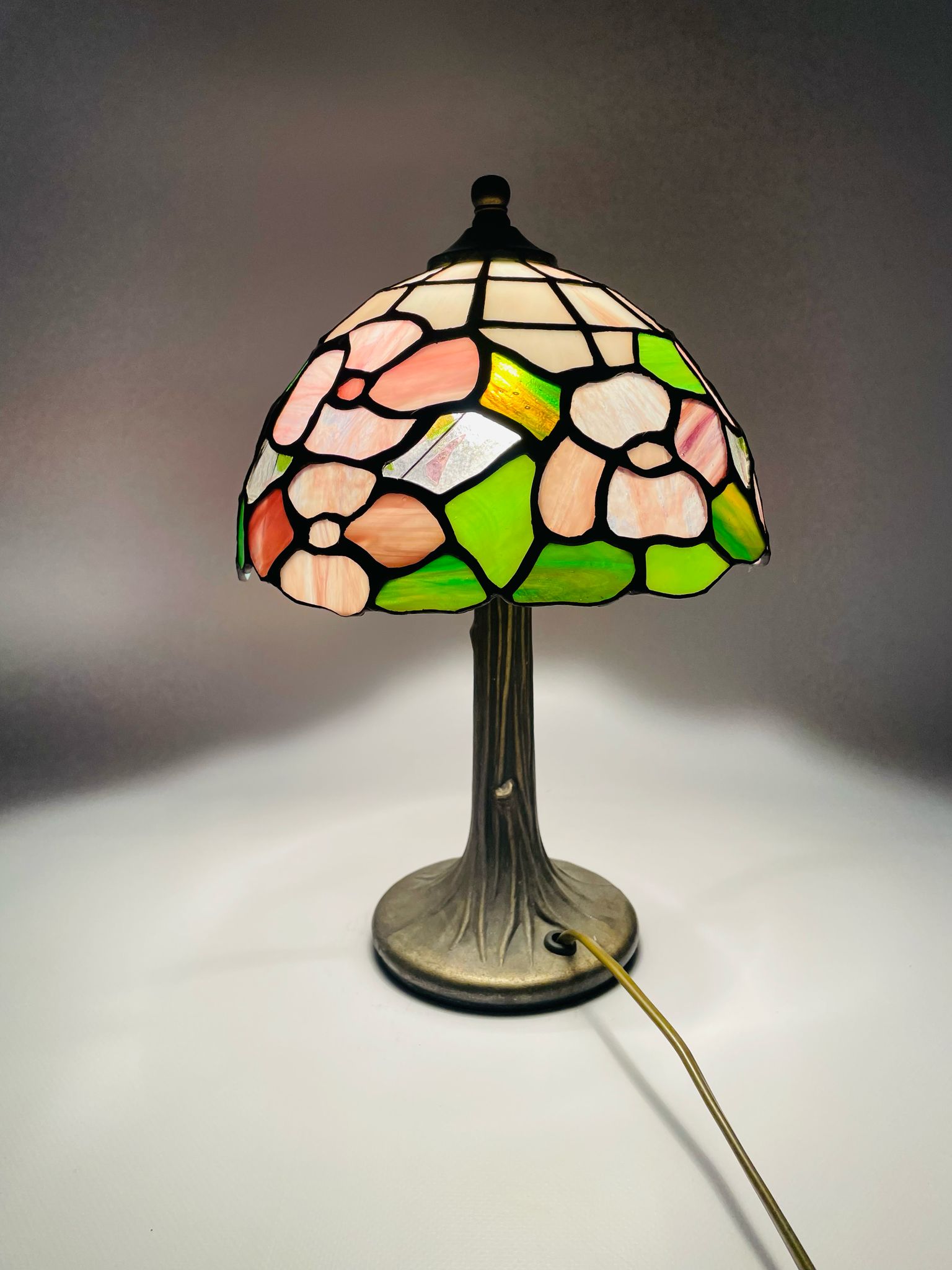 Lampka stołowa w stylu Tiffany z mosiądzu