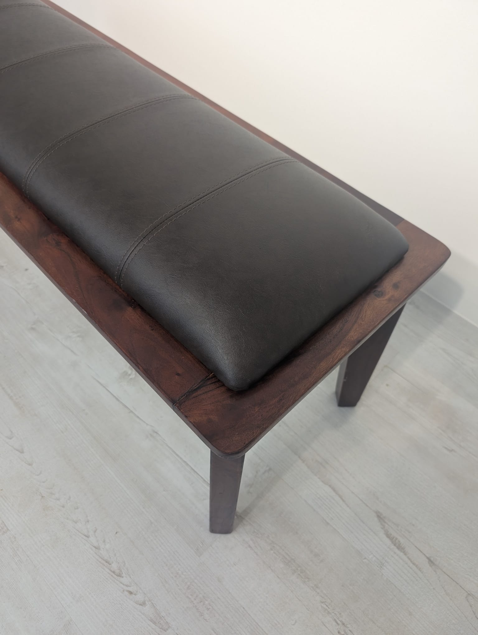 Ławka palisandrowa ze skórą naturalną