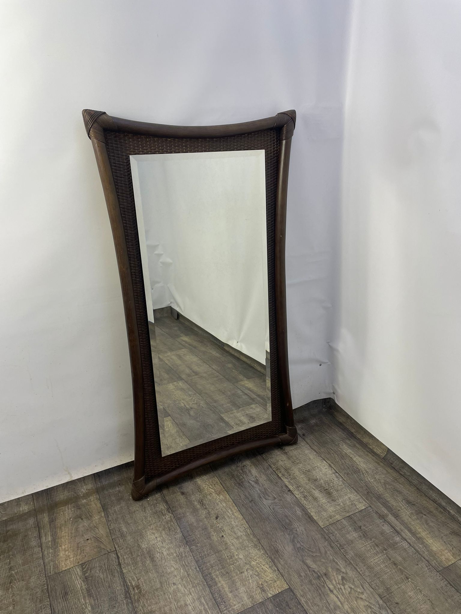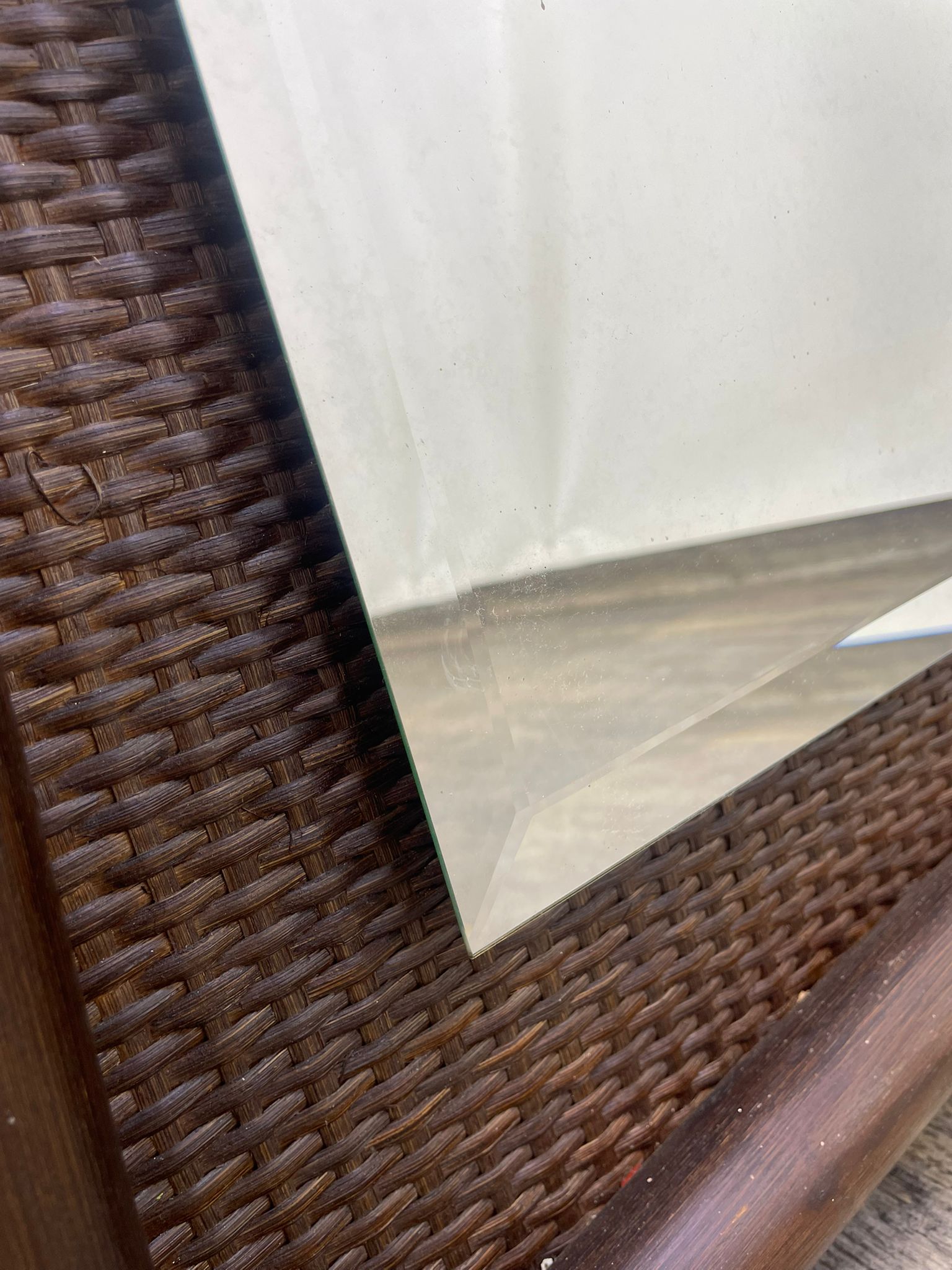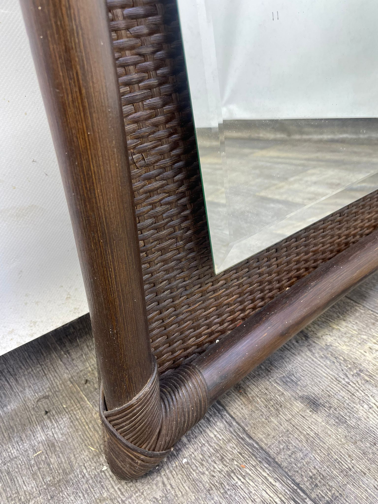 Lustro kryształowe w bambusowej ramie.