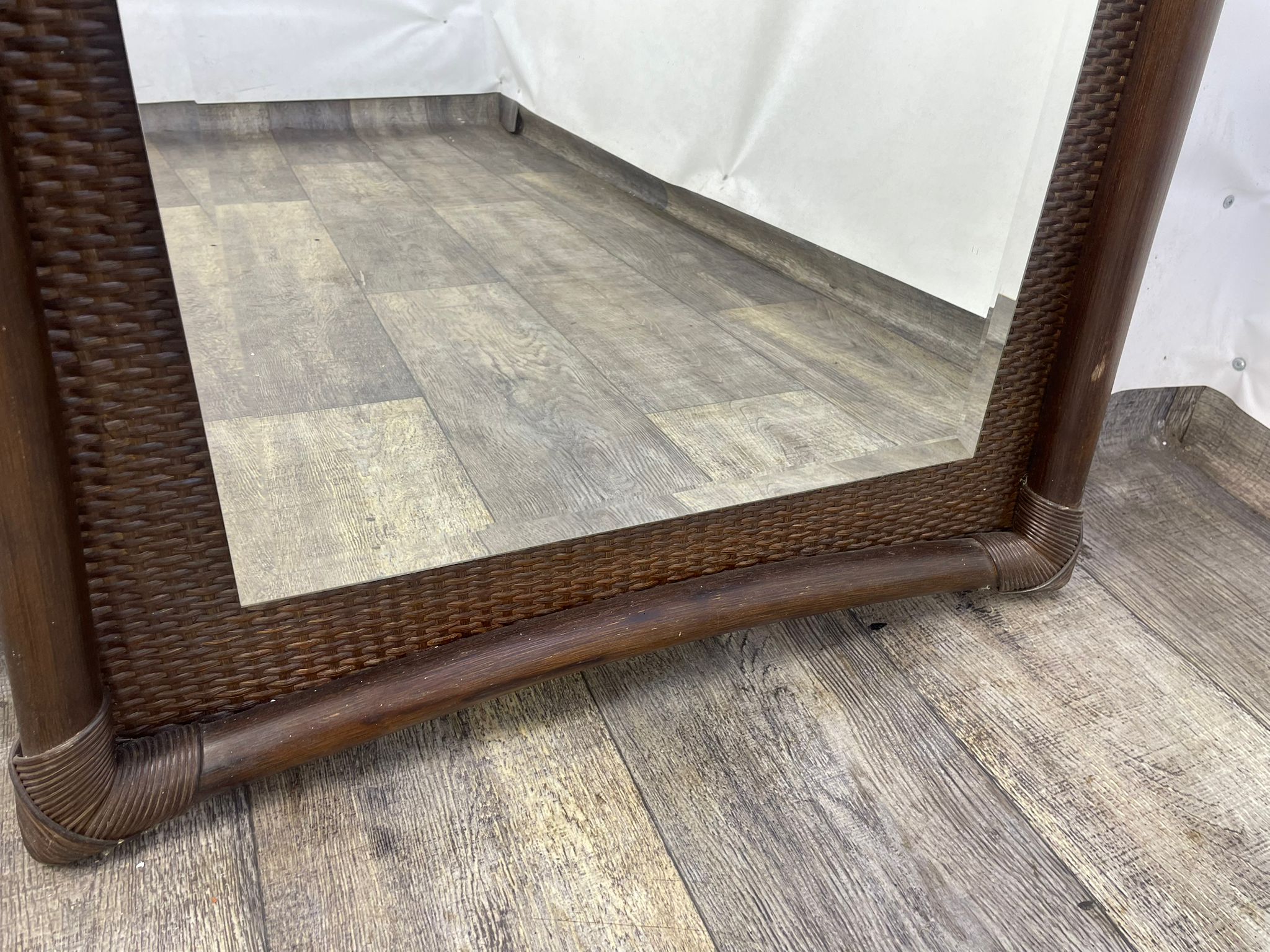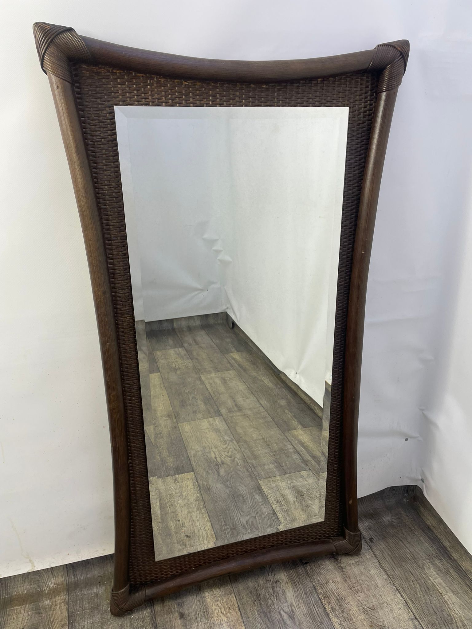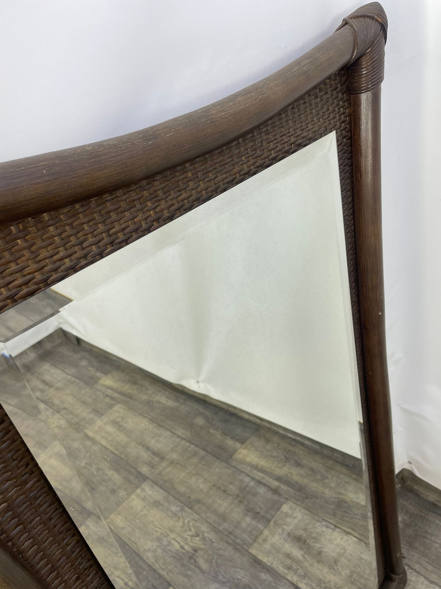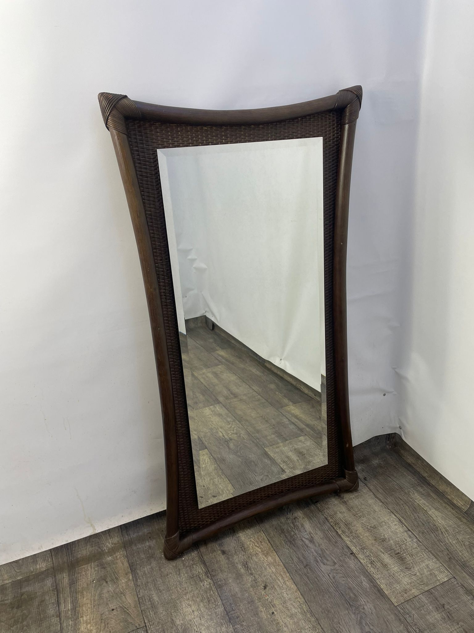 Lustro kryształowe w bambusowej ramie.