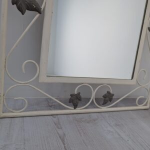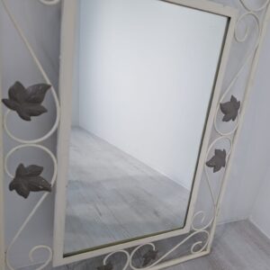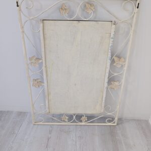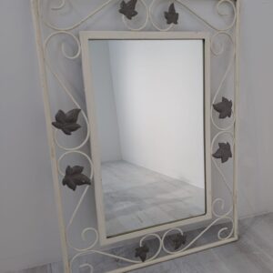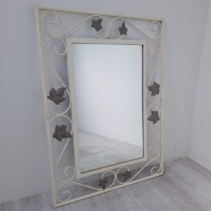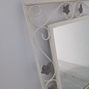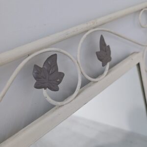 Rama w stylu rustykalnym wykonana z kutego żelaza w kolorze białym z elementami dekoracyjnymi w postaci liści i esów-floresów.