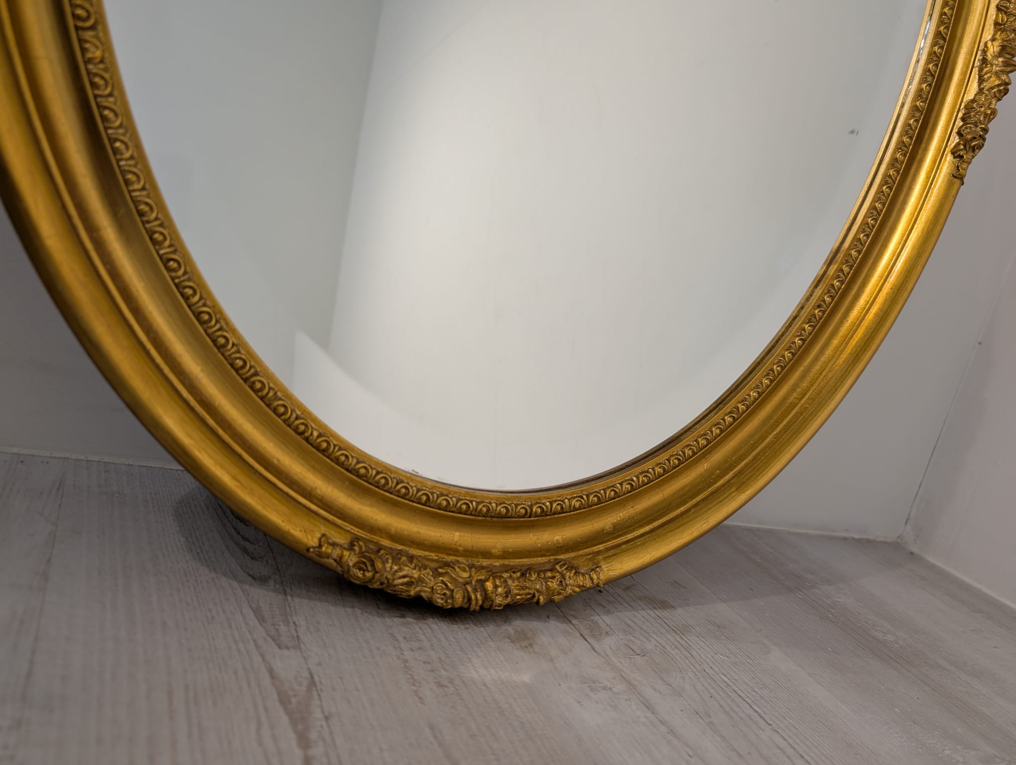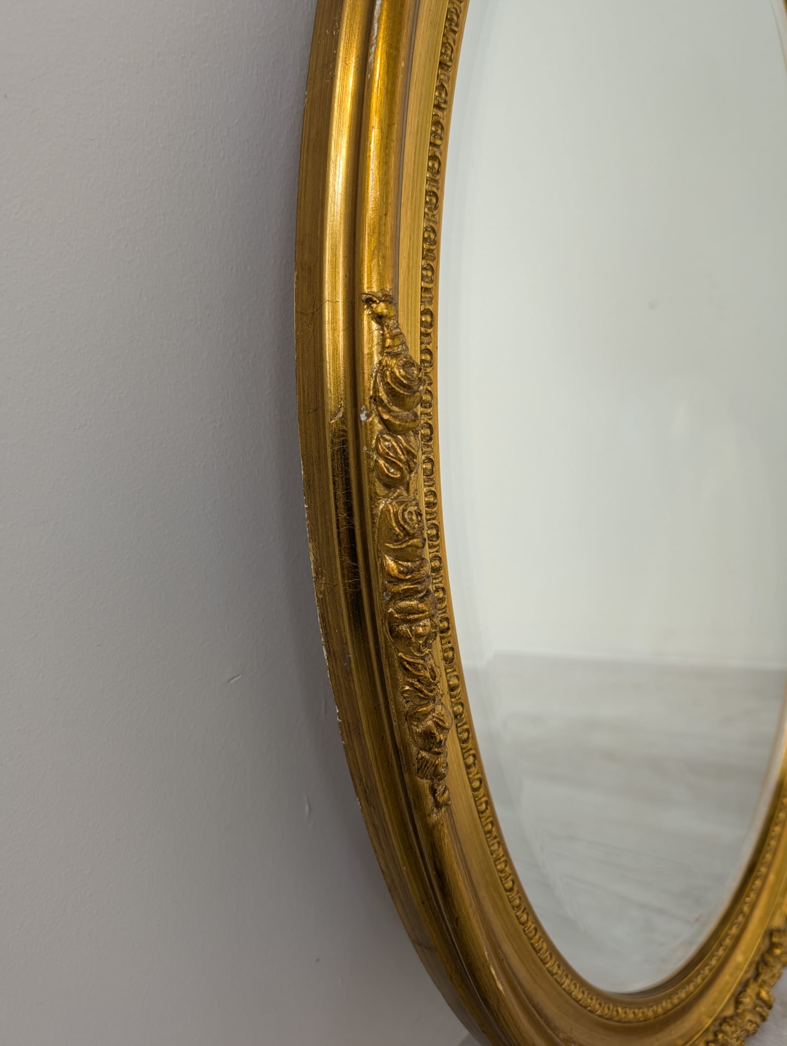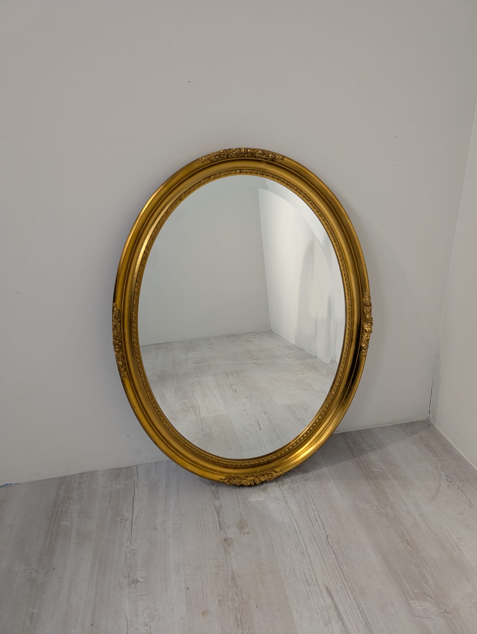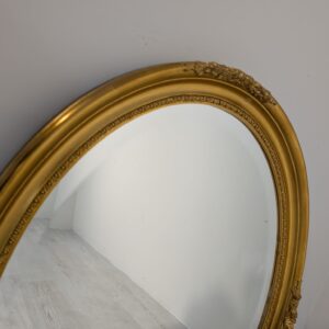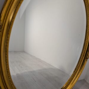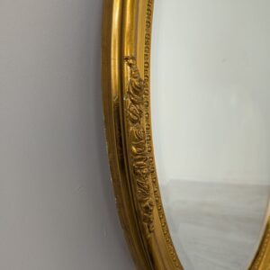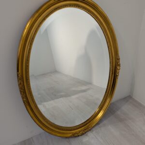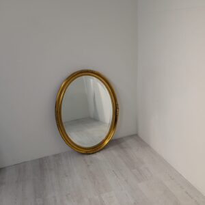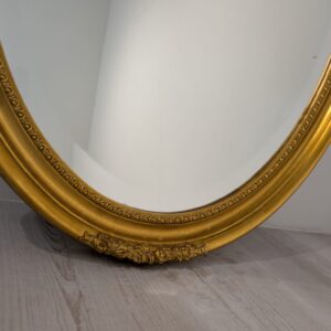 Lustro owalne w drewnianej złotej ramie fazowane