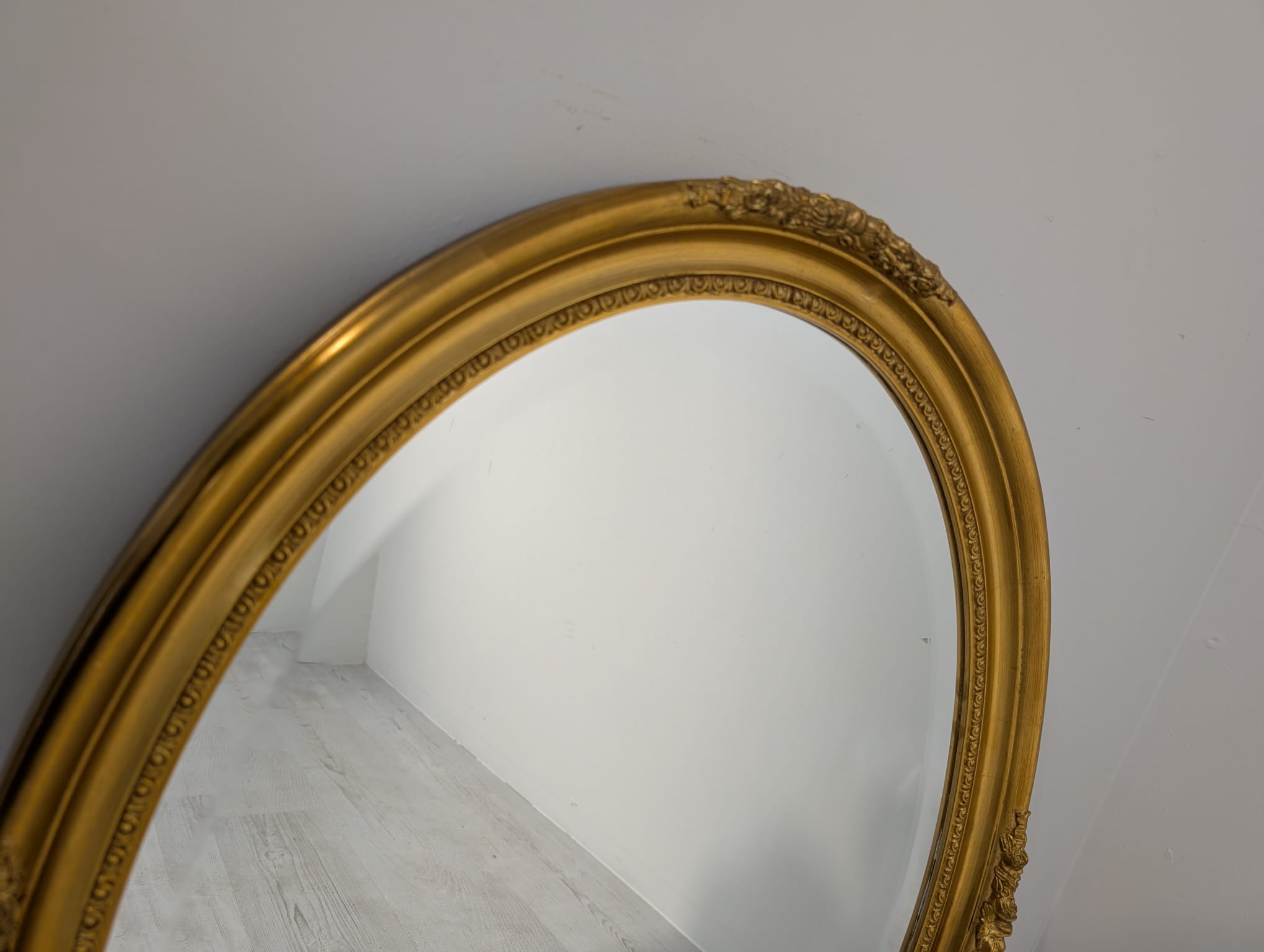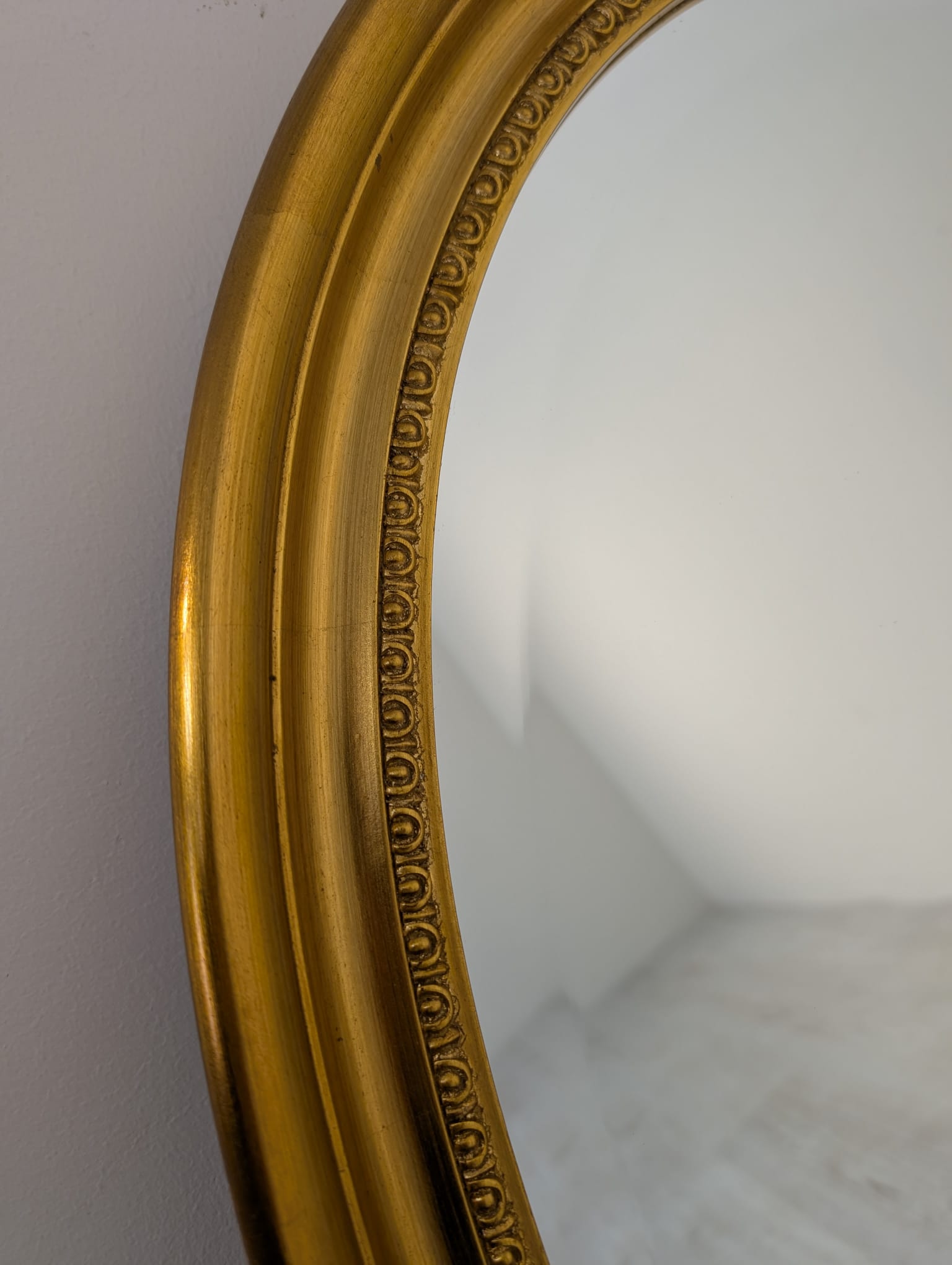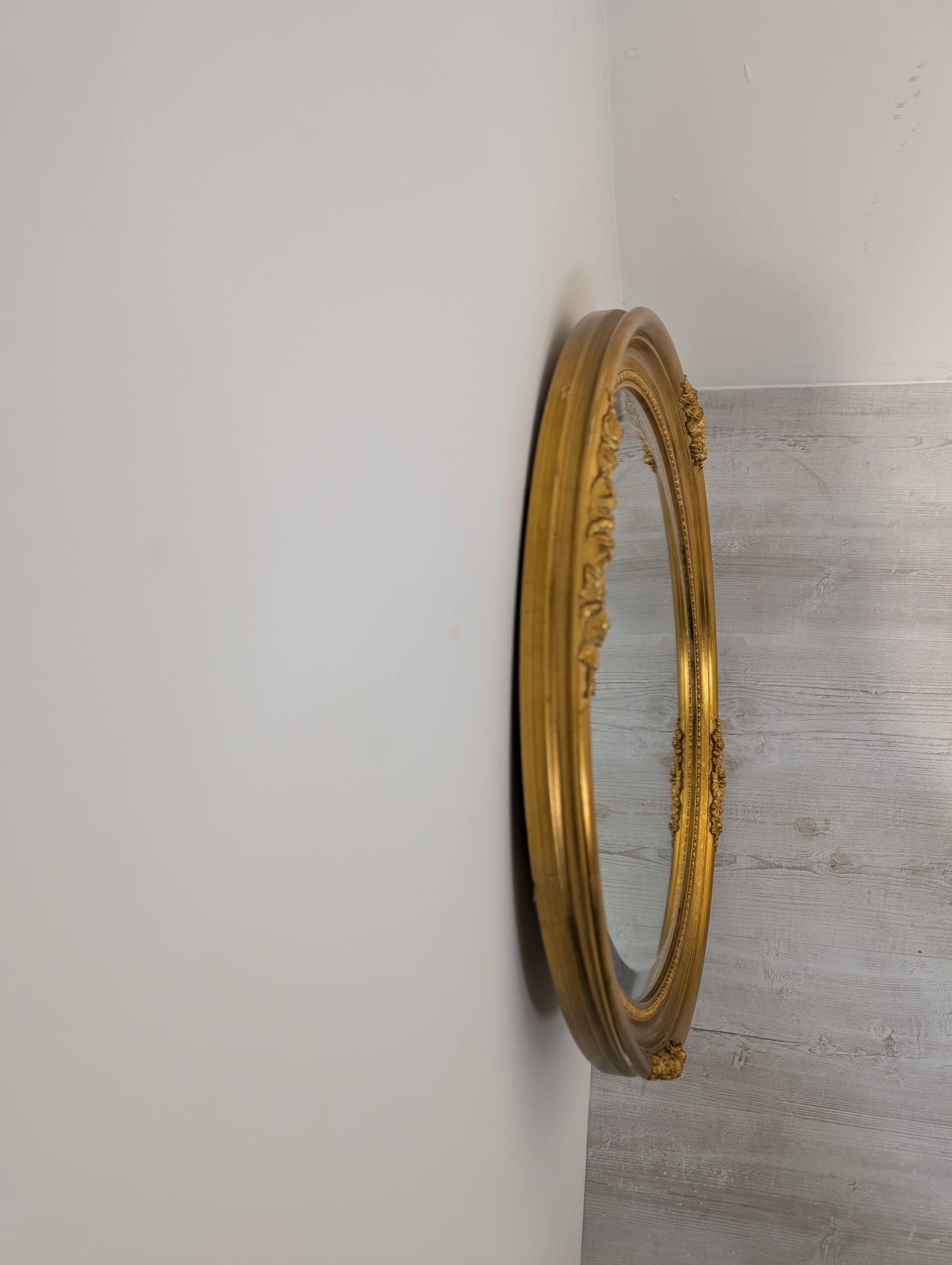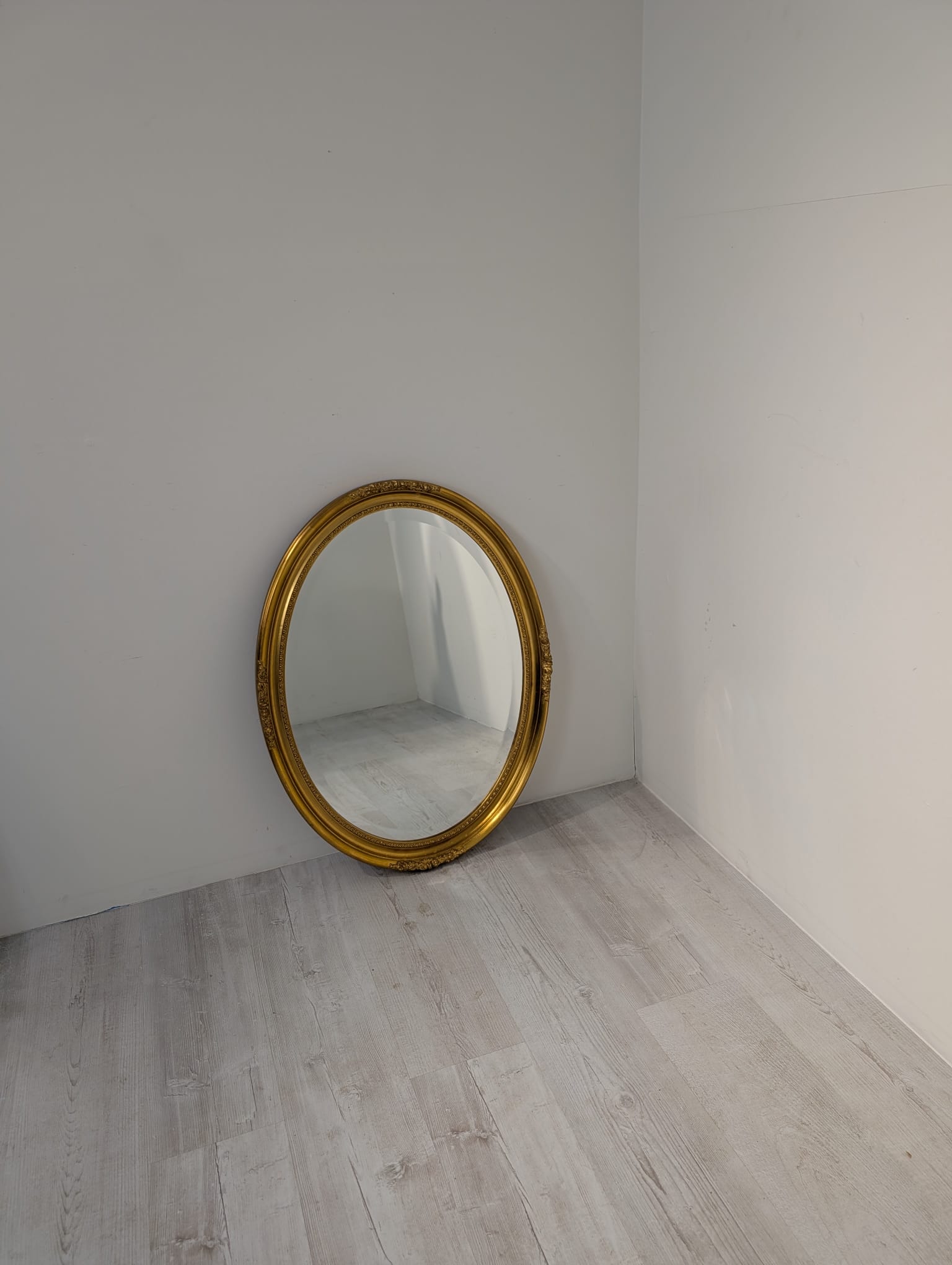 Lustro owalne w drewnianej złotej ramie fazowane