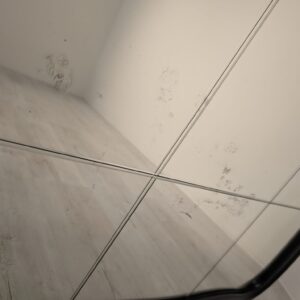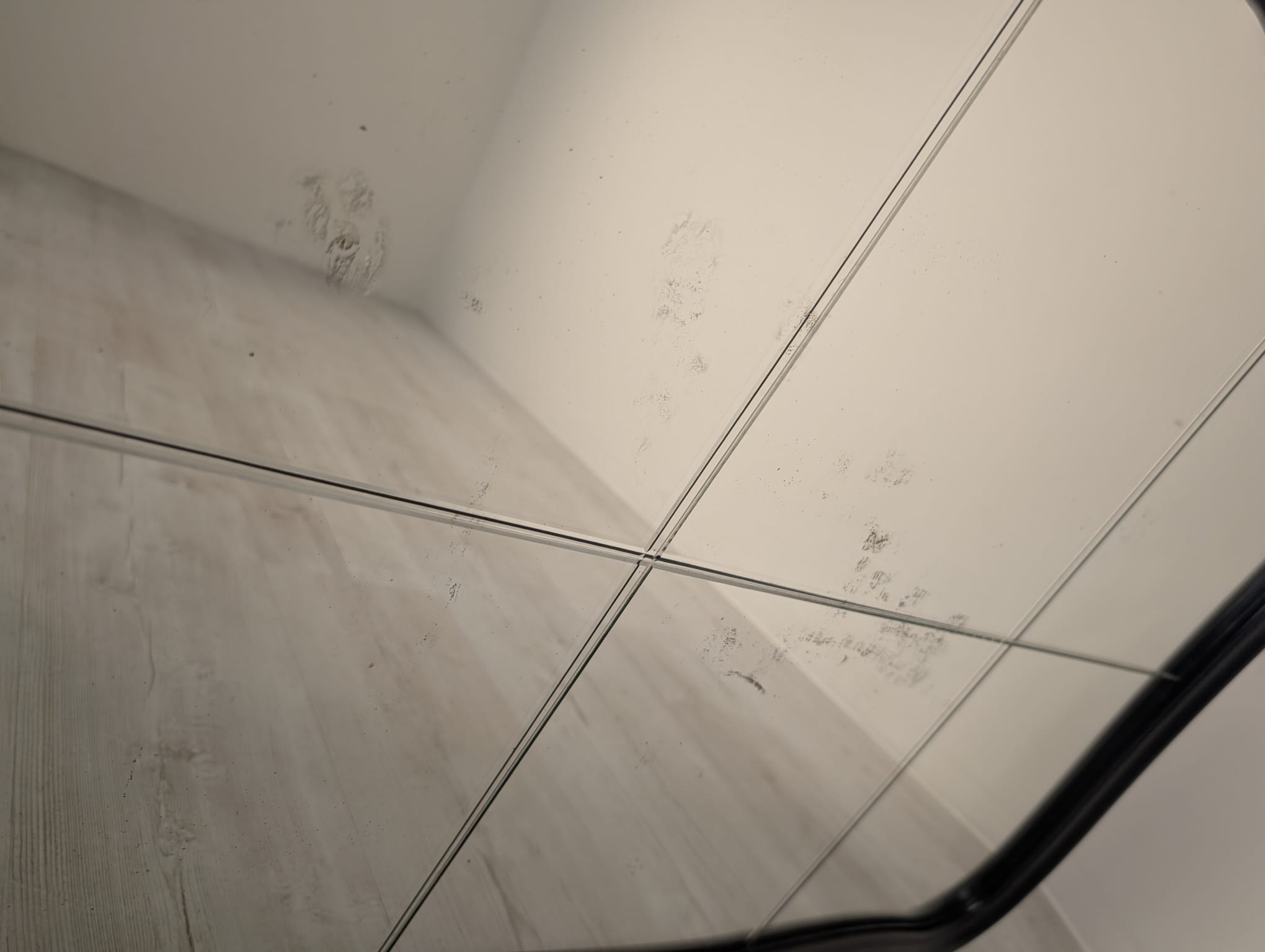 W niektórych miejscach na tafli powstały z biegiem czasu postarzenie tafli lustra.