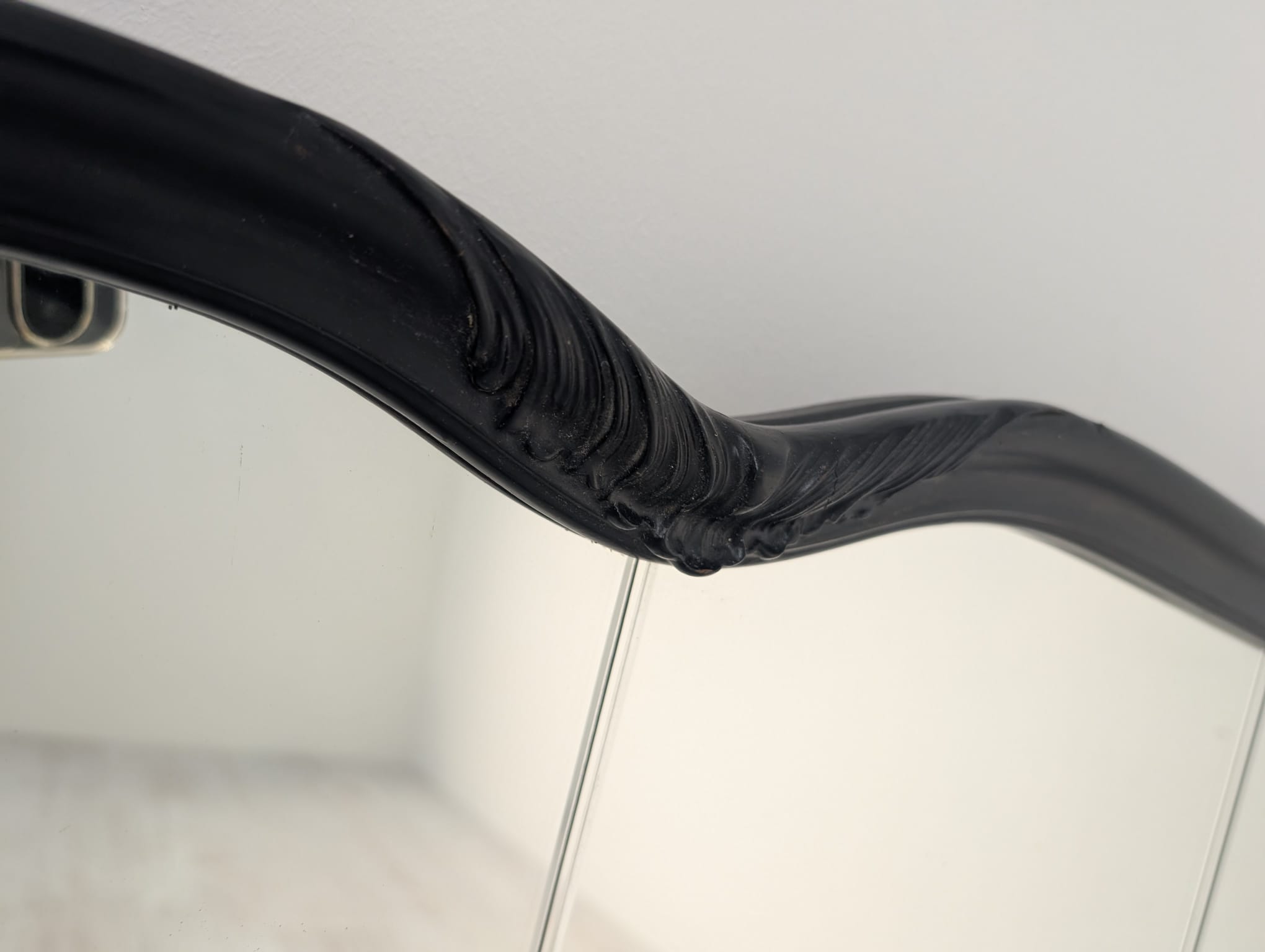 Lustro w drewnianej, ozdobnej ramie o falistym kształcie który nadaje szyku i elegancji raz klasycznego wyglądu.