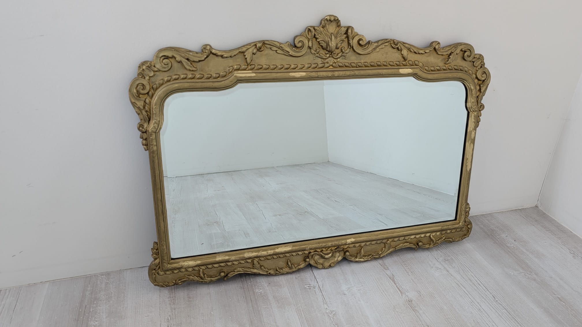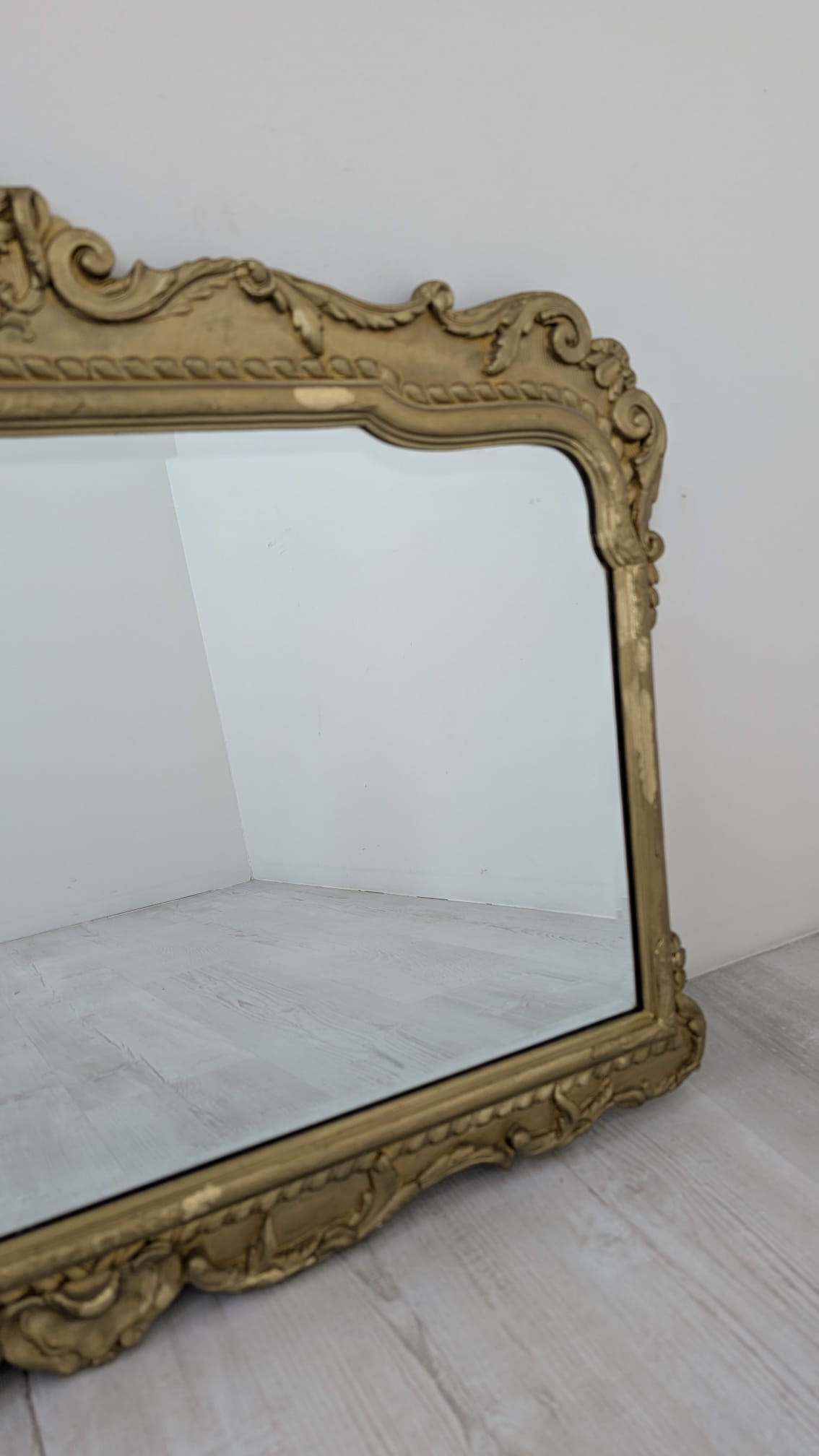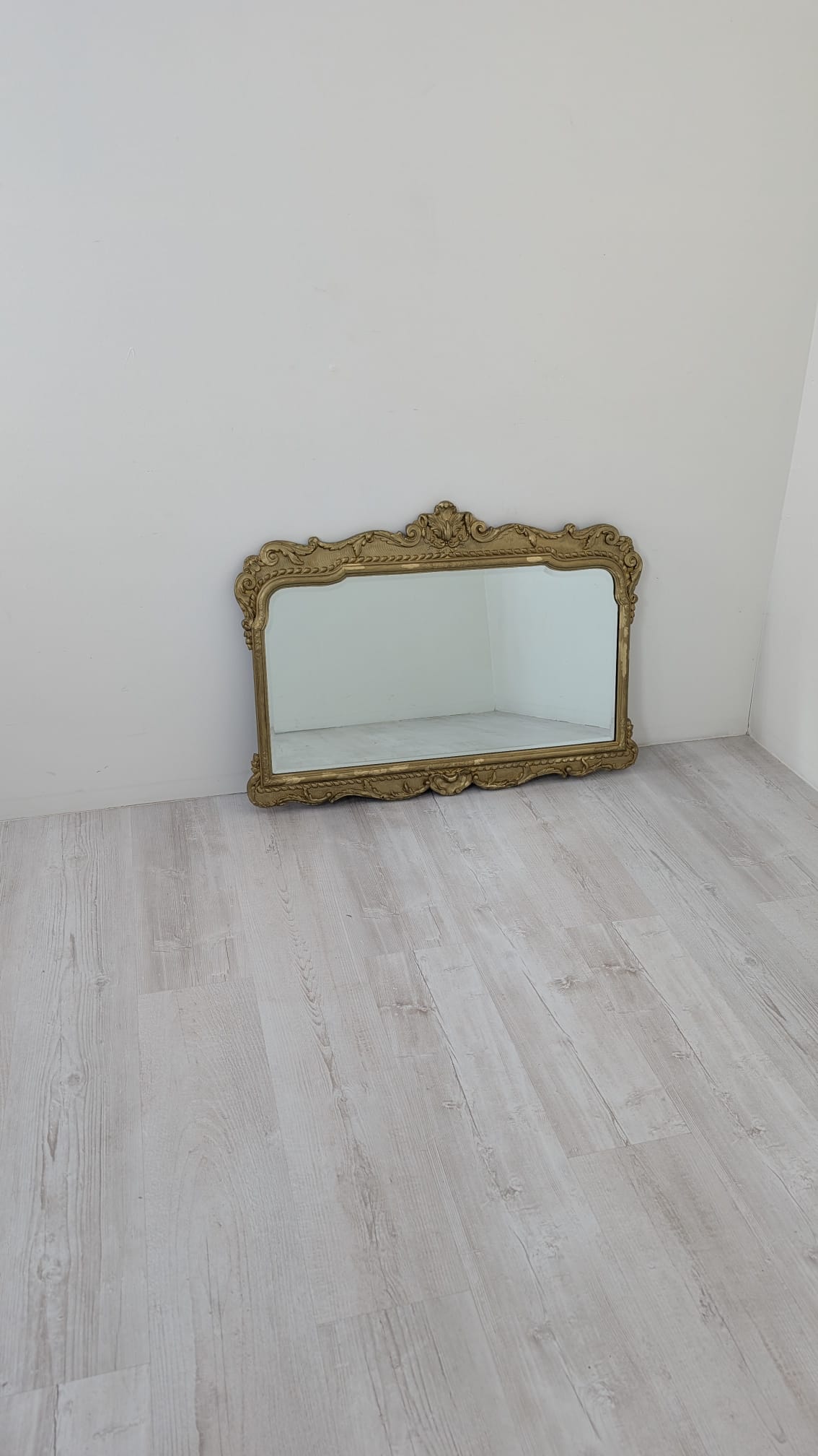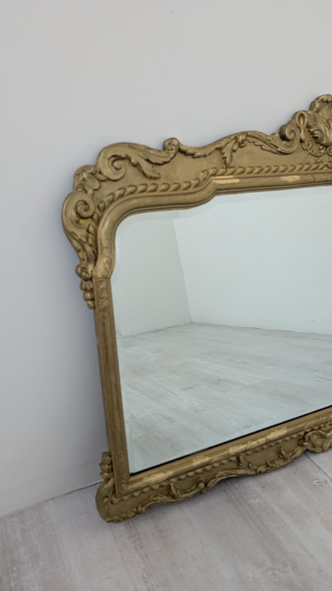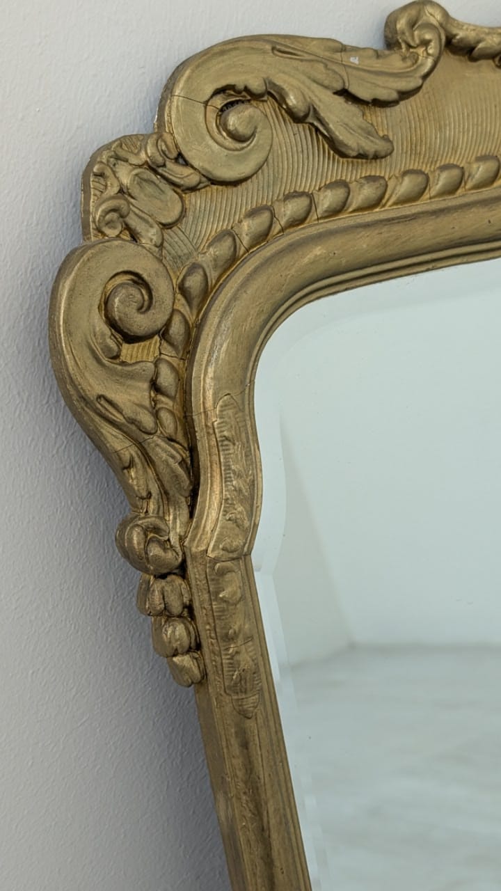 Lustro w drewnianej złoconej ramie w stylu barokowym