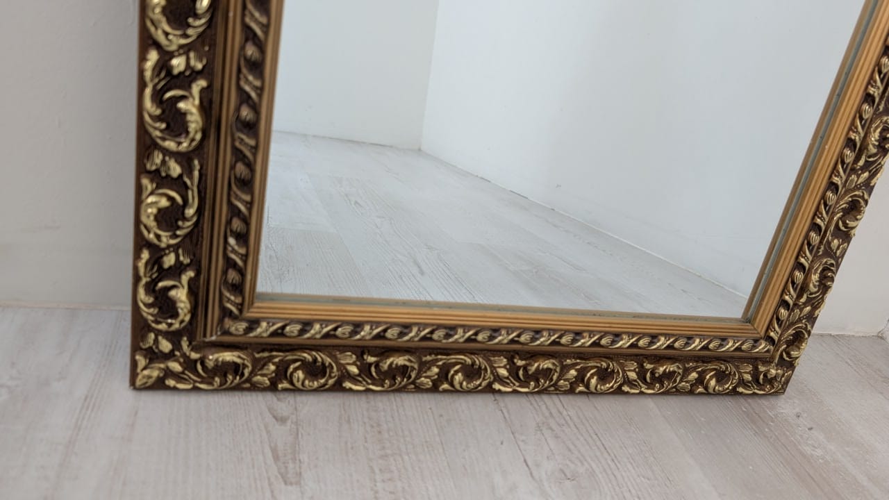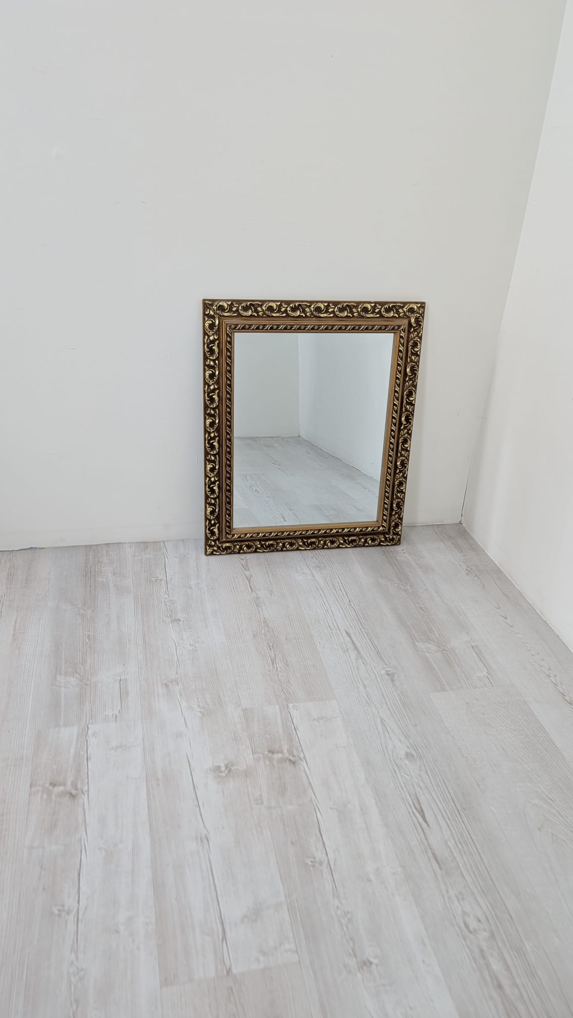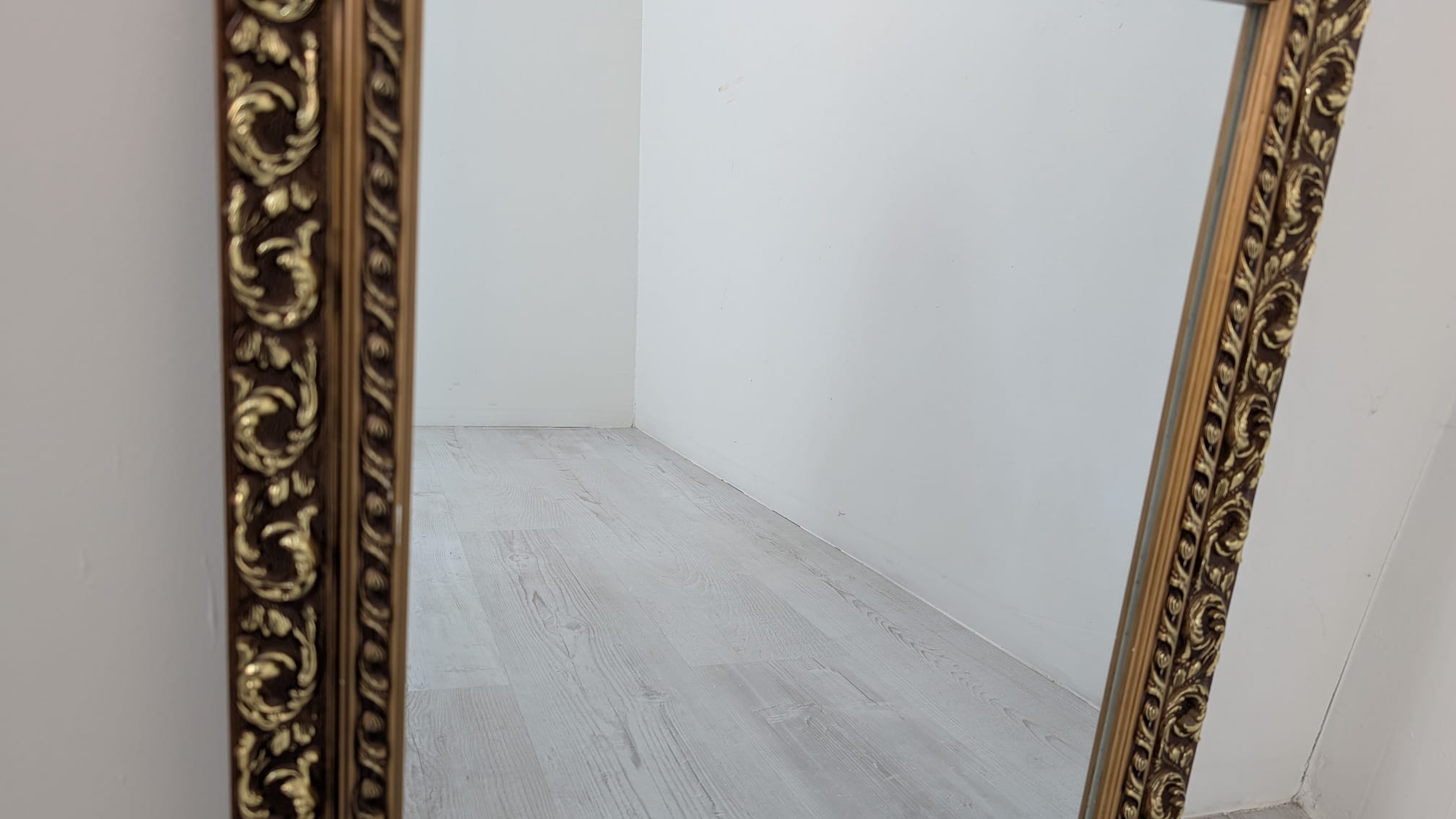 Lustro w ozdobnej, złoconej ramie, idealnie pasujące do nowoczesnego lub klasycznego wnętrza. Produkt używany, ale w dobrym stanie. Piękny dodatek, który doda elegancji każdemu pomieszczeniu.