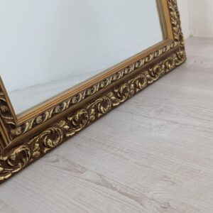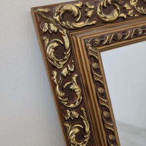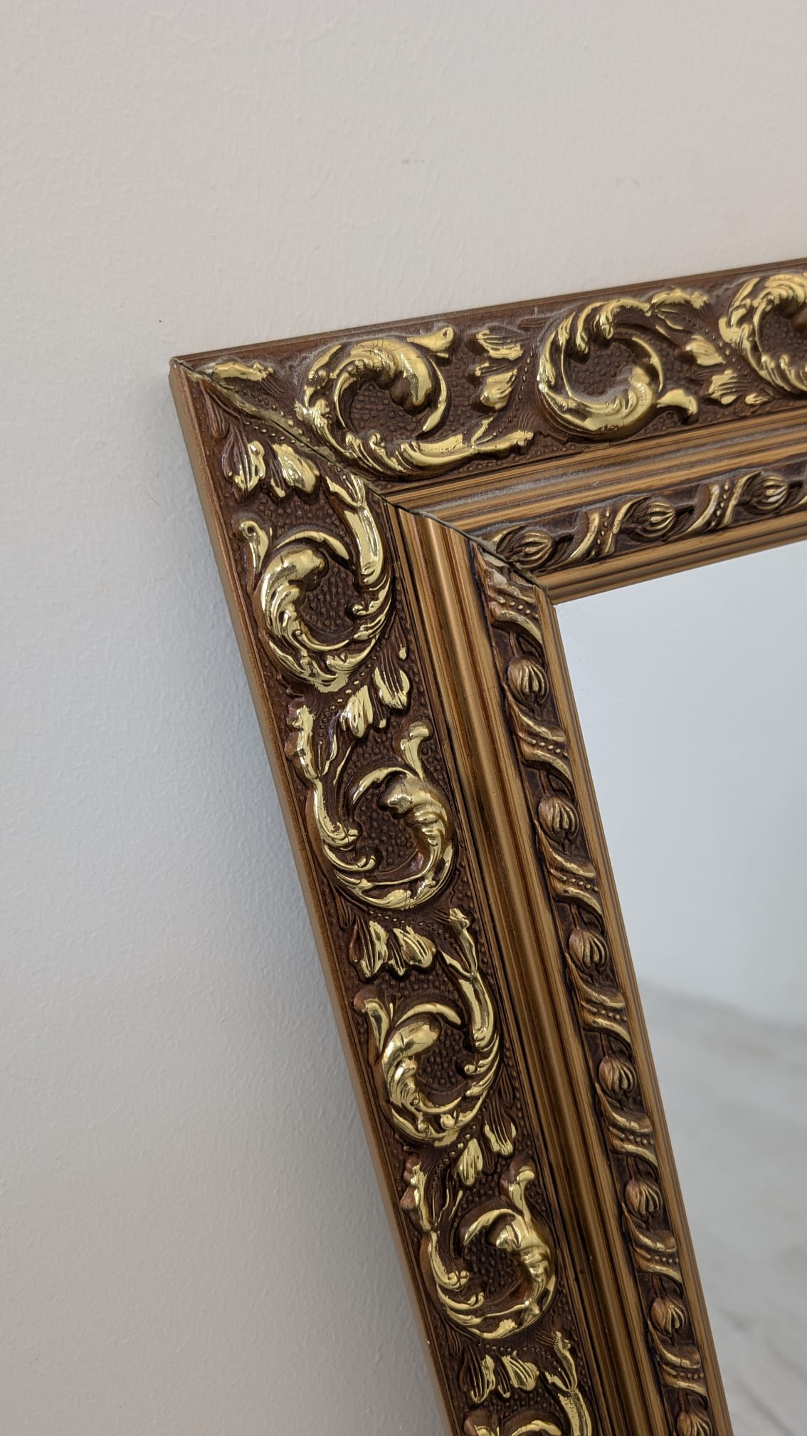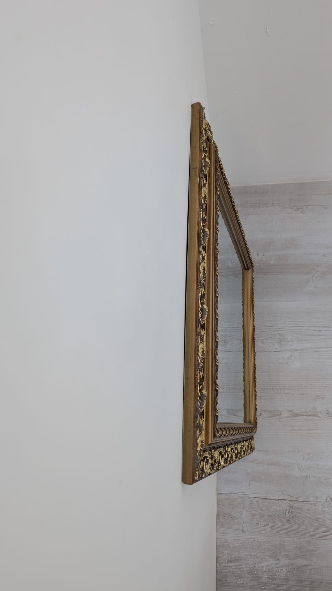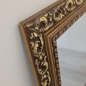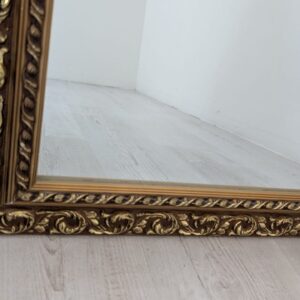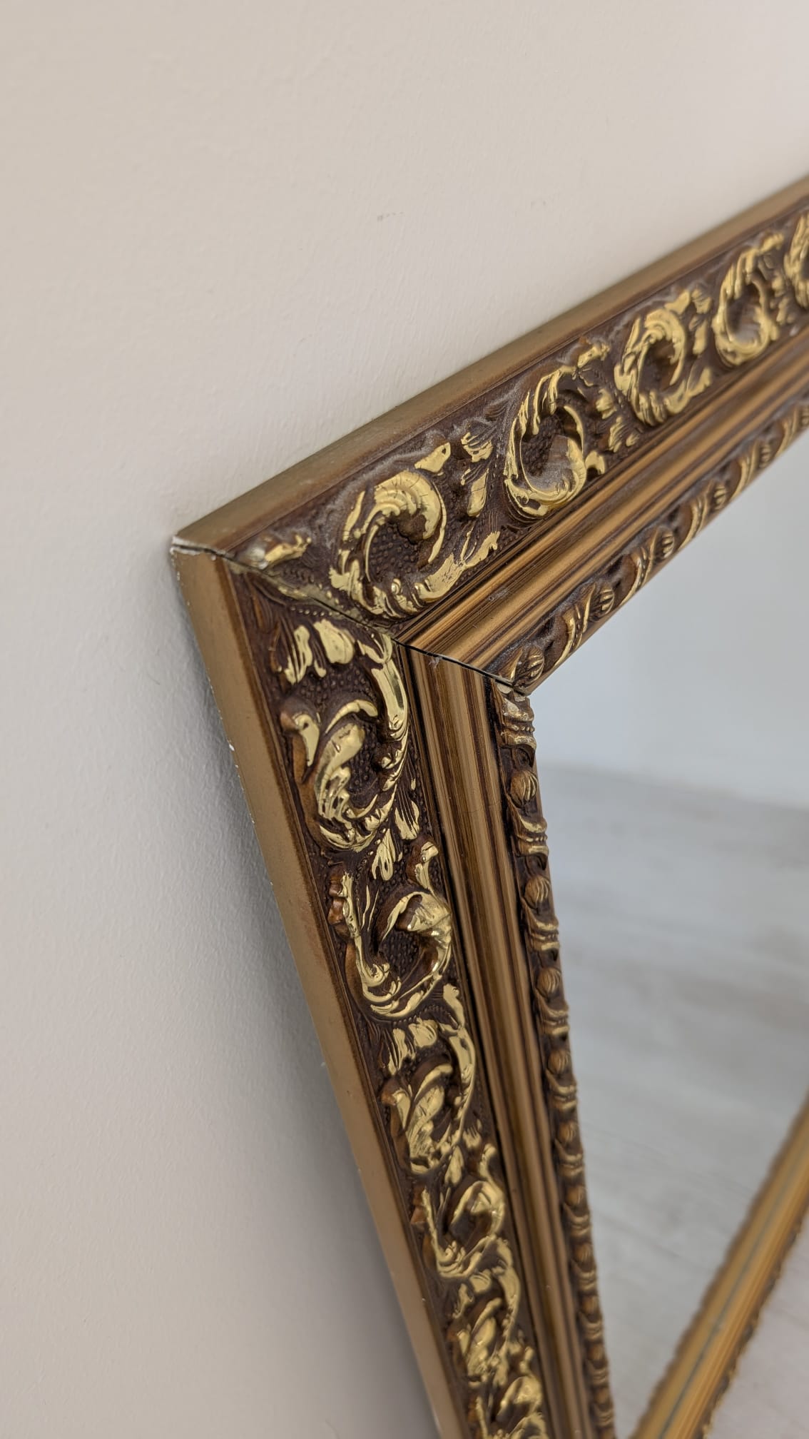 Lustro w ozdobnej, złoconej ramie, idealnie pasujące do nowoczesnego lub klasycznego wnętrza. Produkt używany, ale w dobrym stanie. Piękny dodatek, który doda elegancji każdemu pomieszczeniu.