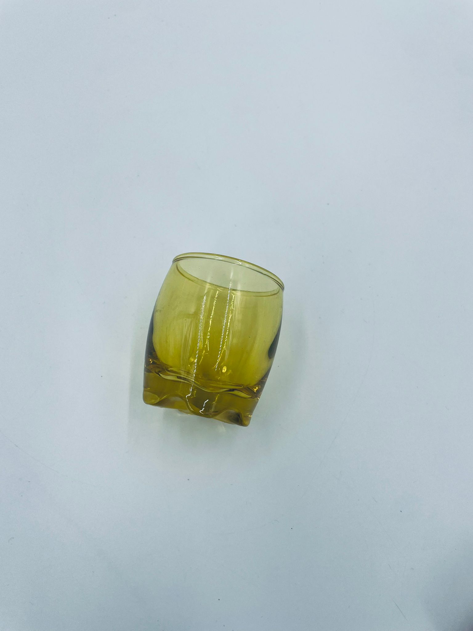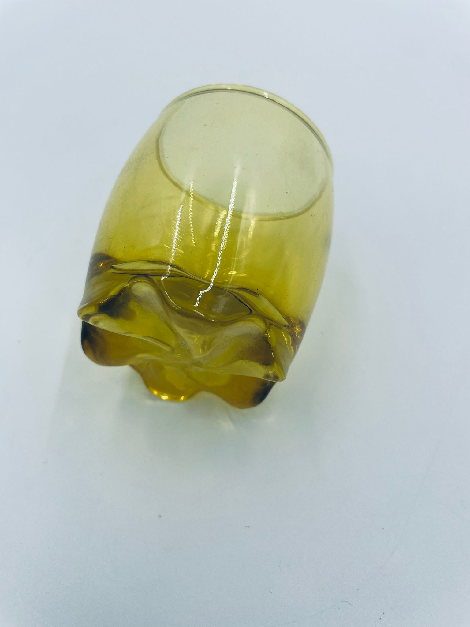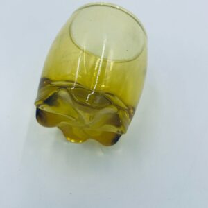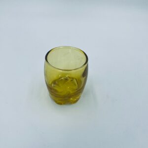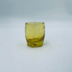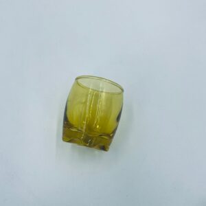 Mała szklaneczka, kieliszek w stylu Vintage, wykonana z wysokiej jakości hartowanego. Szklaneczka z falistą ozdobną podstawa, barwiona na żółty kolor.