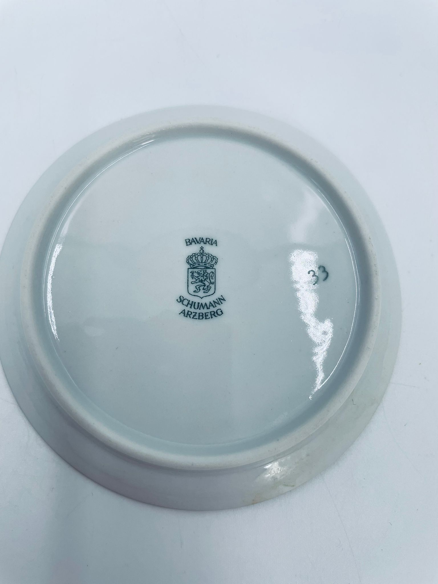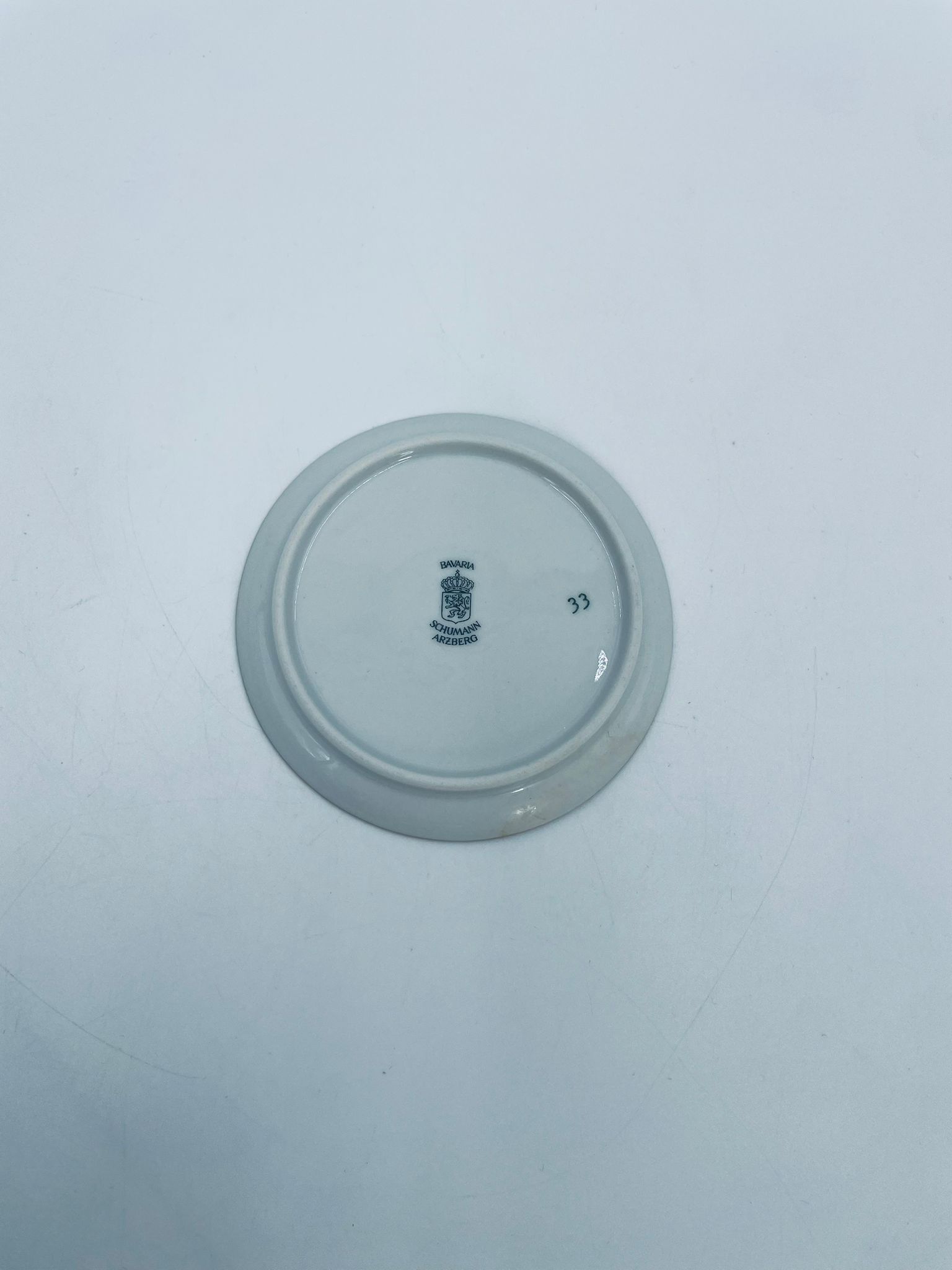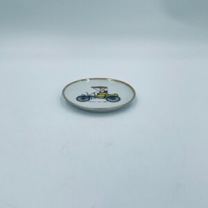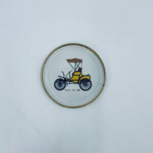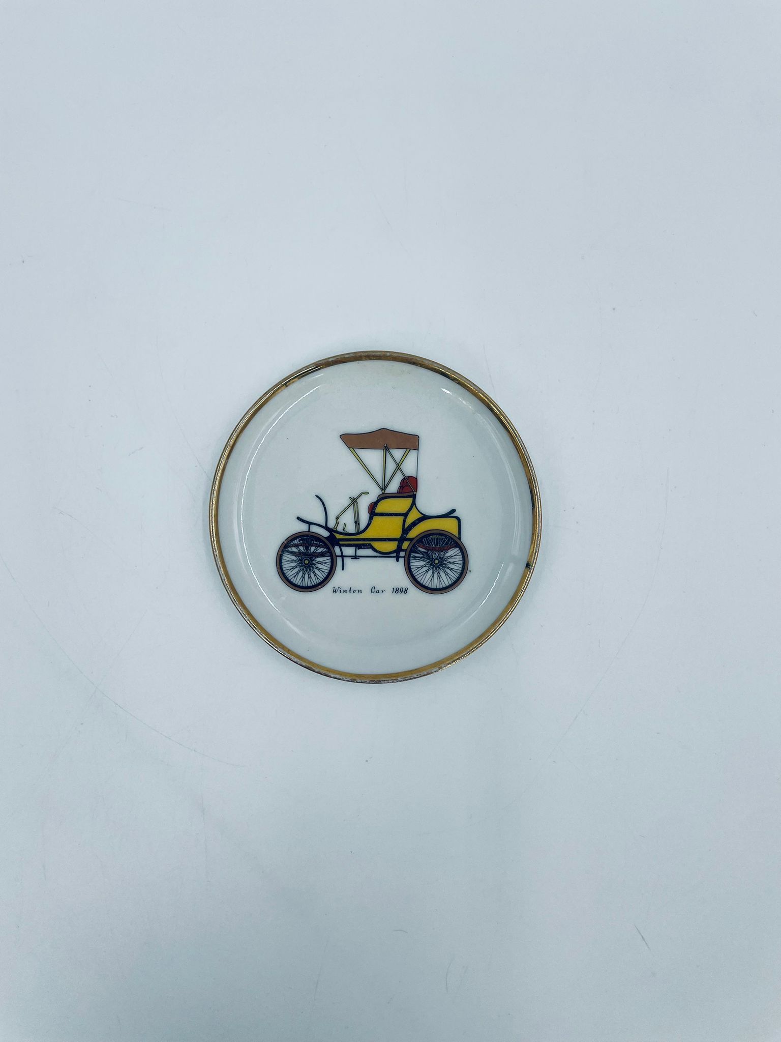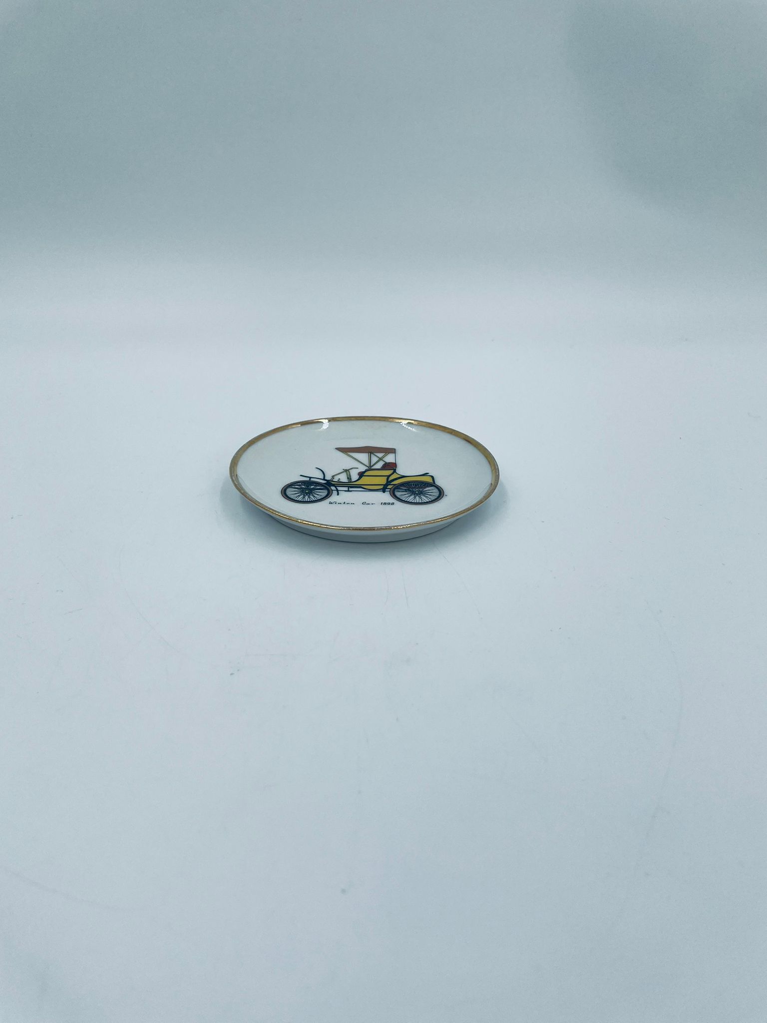 Mały talerzyk kolekcjonerski wytwórni Schumann Arzberg Bavaria, wykonany z wysokiej jakości białej porcelany. Talerzyk z motywem zabytkowego samochodu Winton Car z 1898r, ozdobiony złoceniem na rancie. Posiada przetarcie na złoceniu.