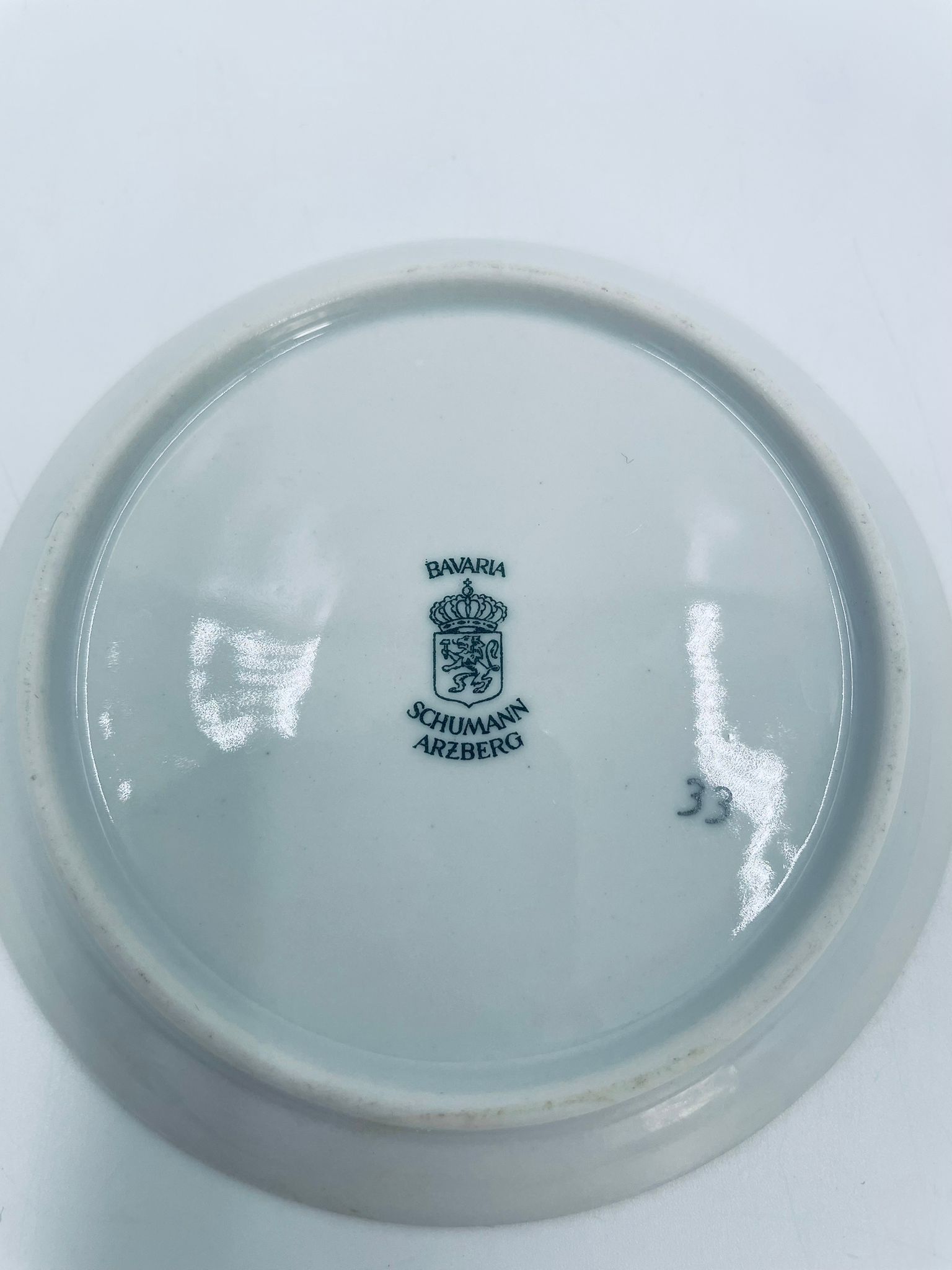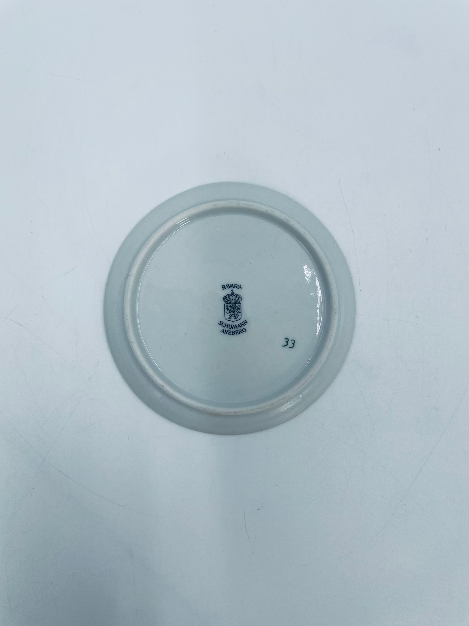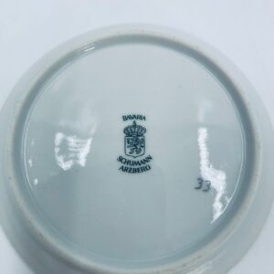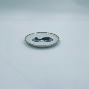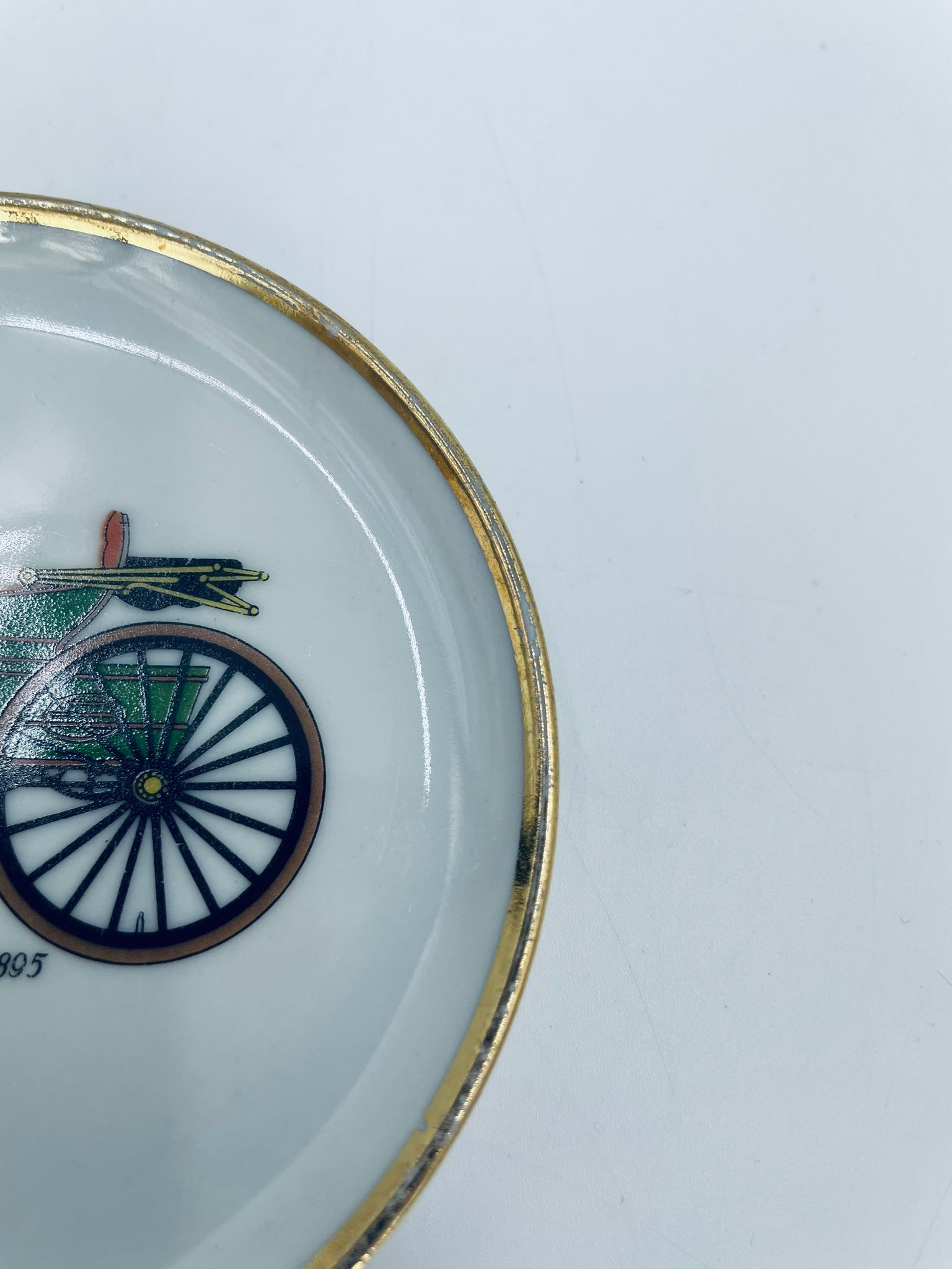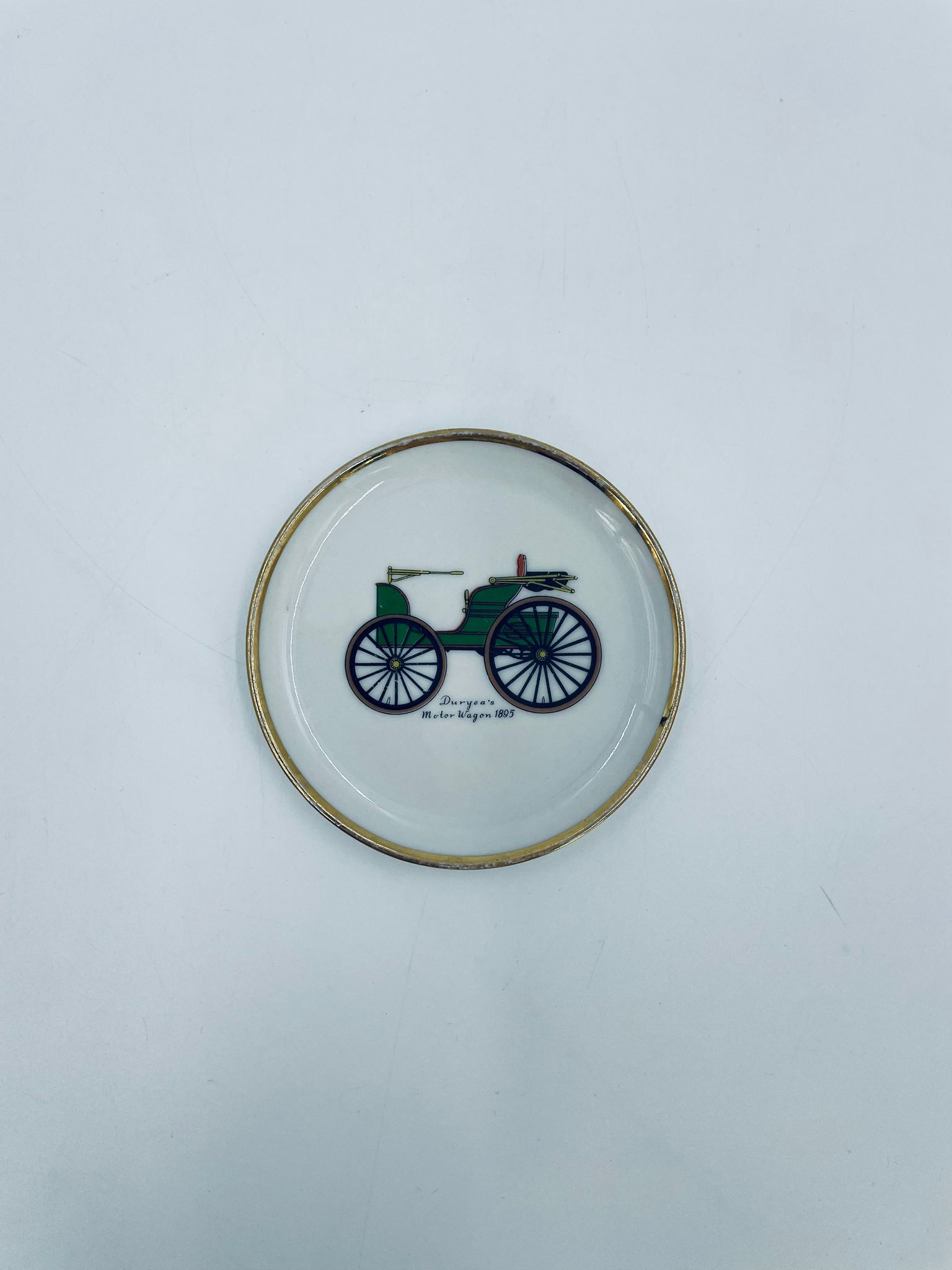 Mały talerzyk kolekcjonerski wytwórni Schumann Arzberg Bavaria, wykonany z wysokiej jakości białej porcelany. Talerzyk z motywem zabytkowego samochodu Duryea Motor Wagon z 1895r, ozdobiony złoceniem na rancie. Posiada przetarcie na złoceniu.