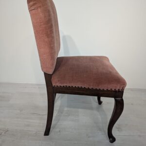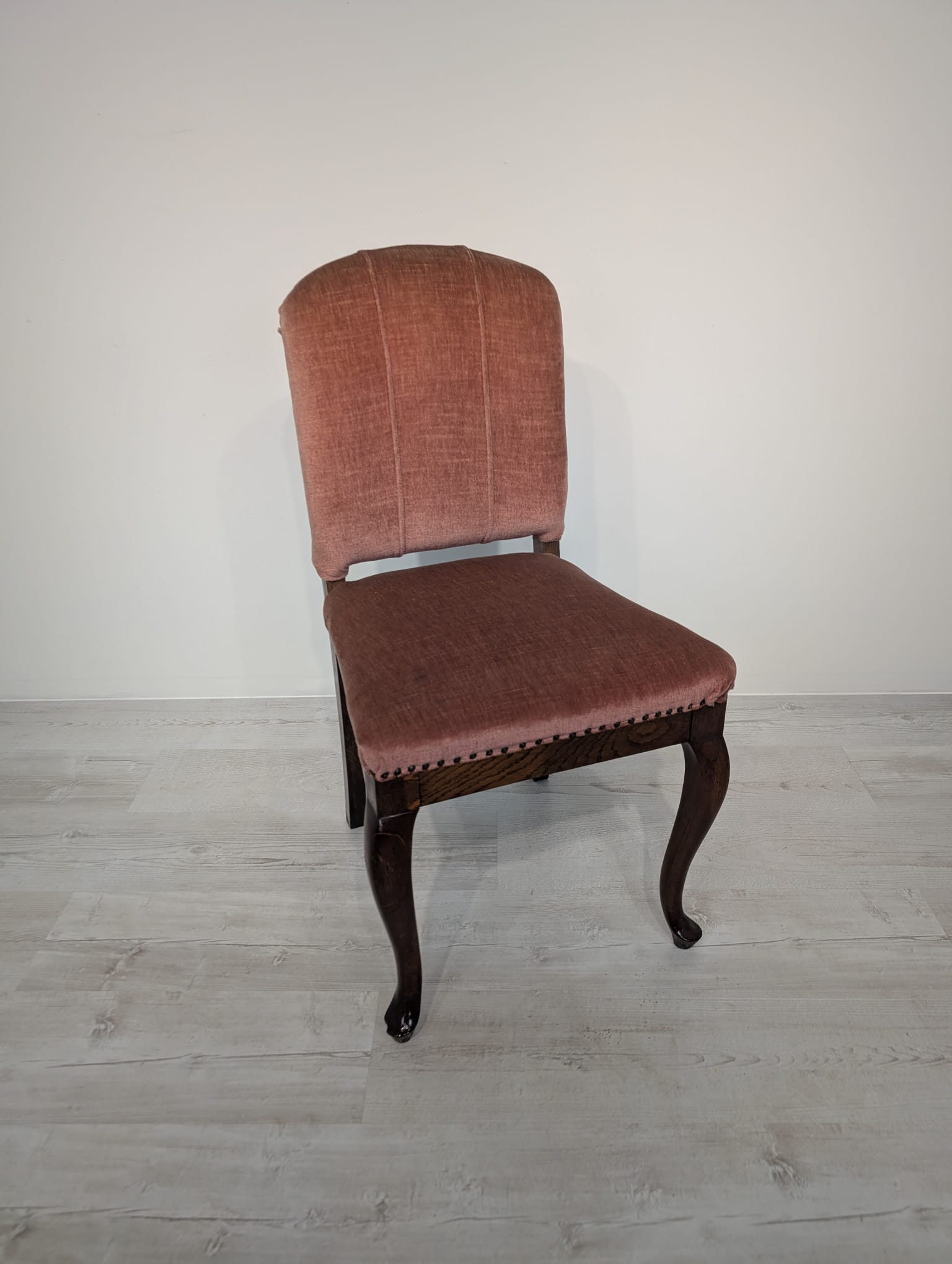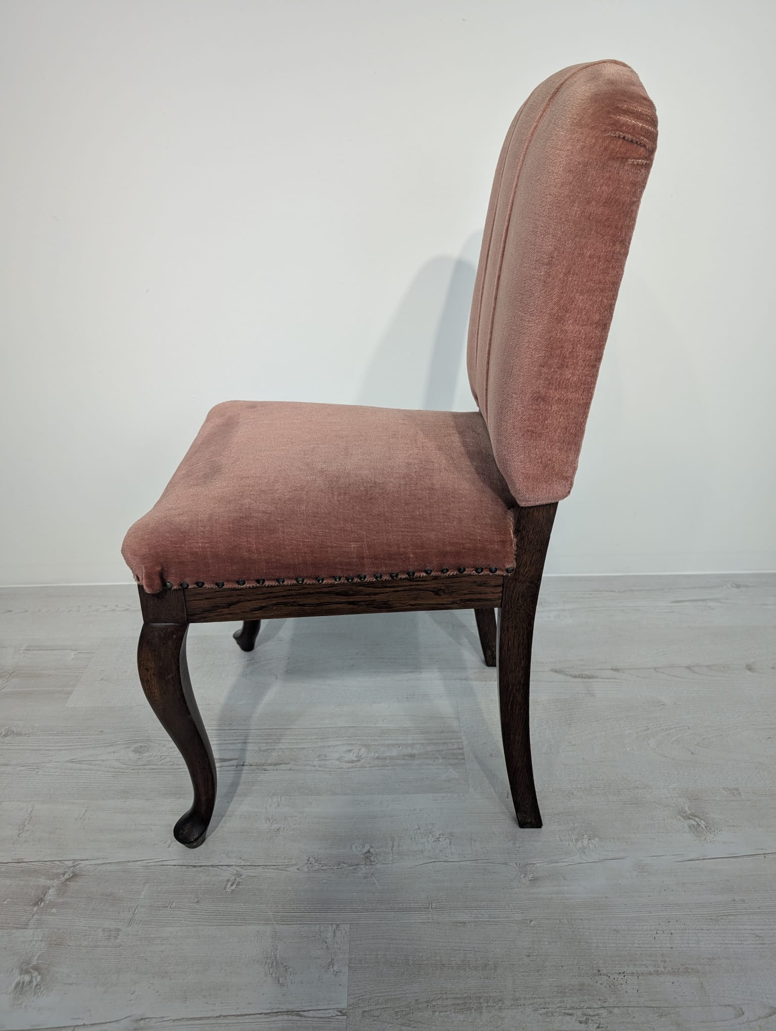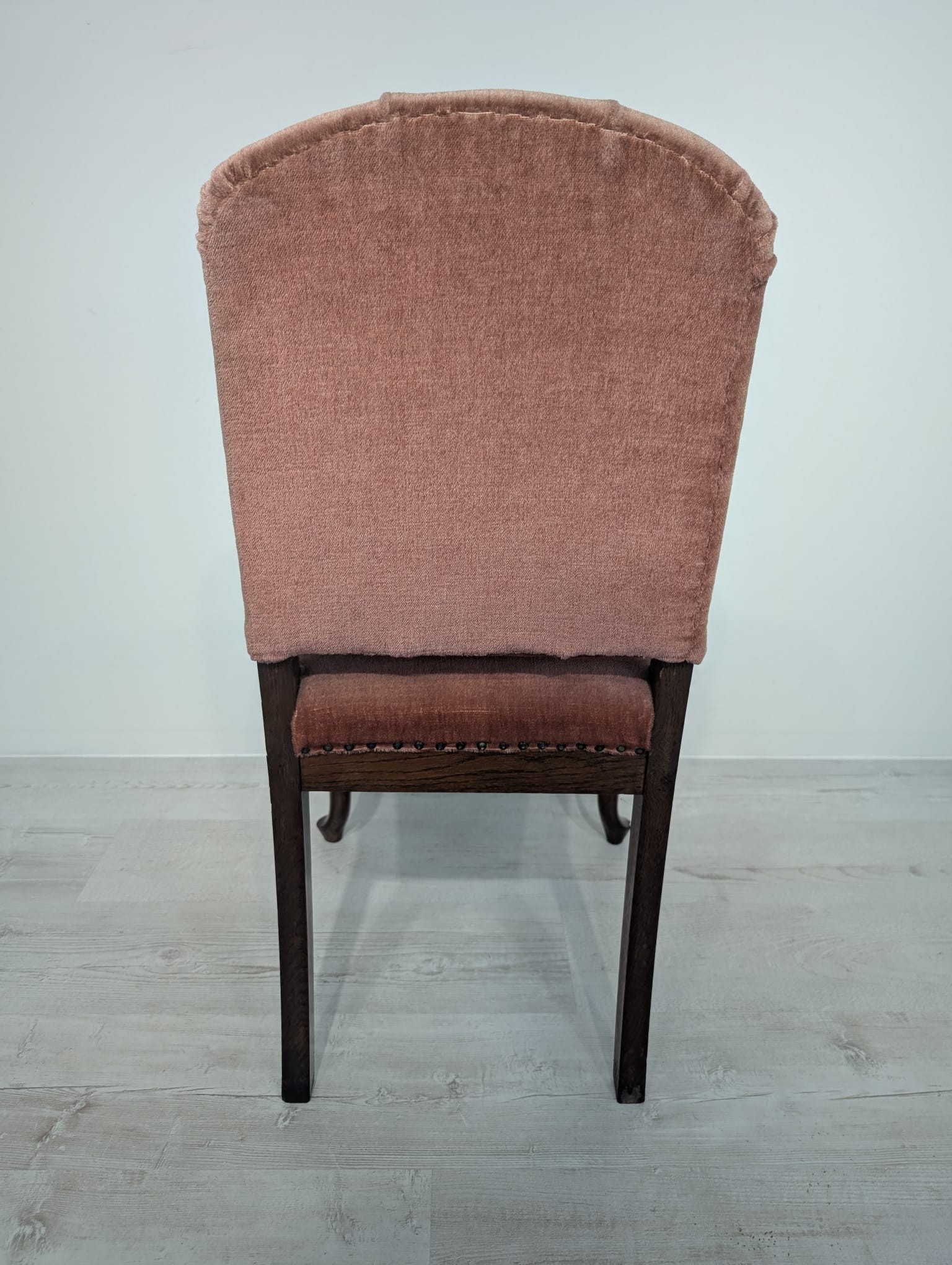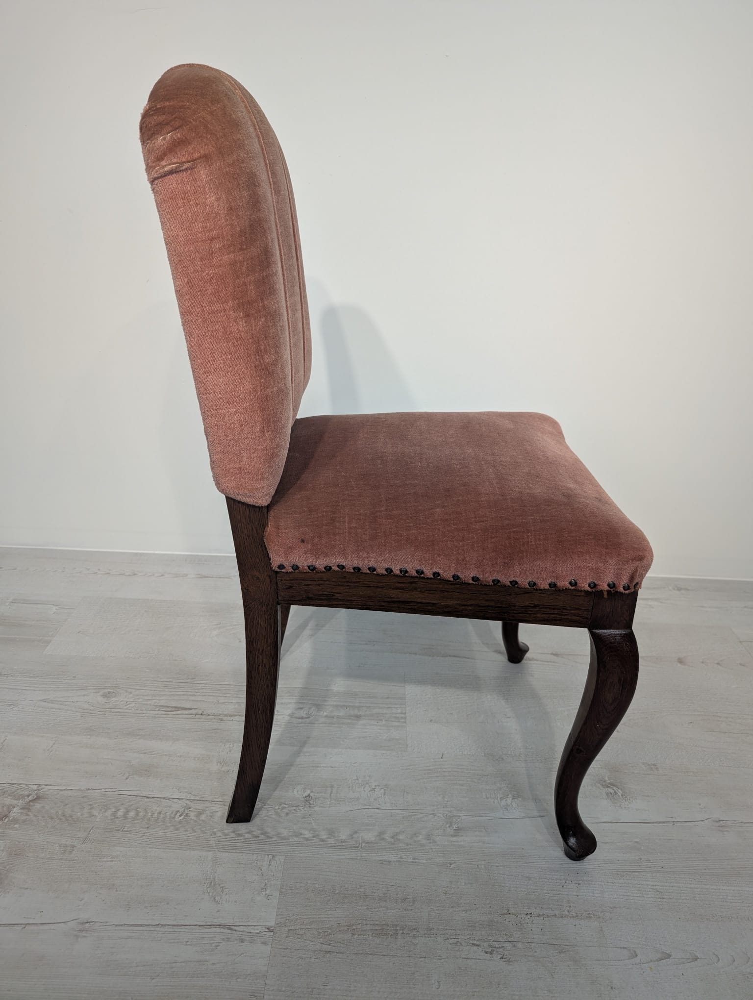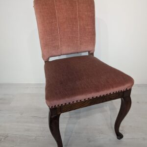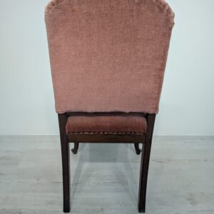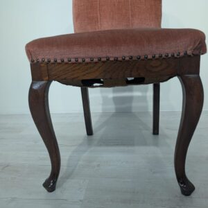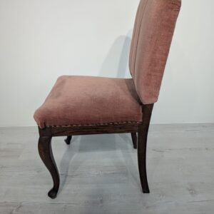 Krzesło w stylu ludwikowskim w różowej, pudrowej tapicerce.