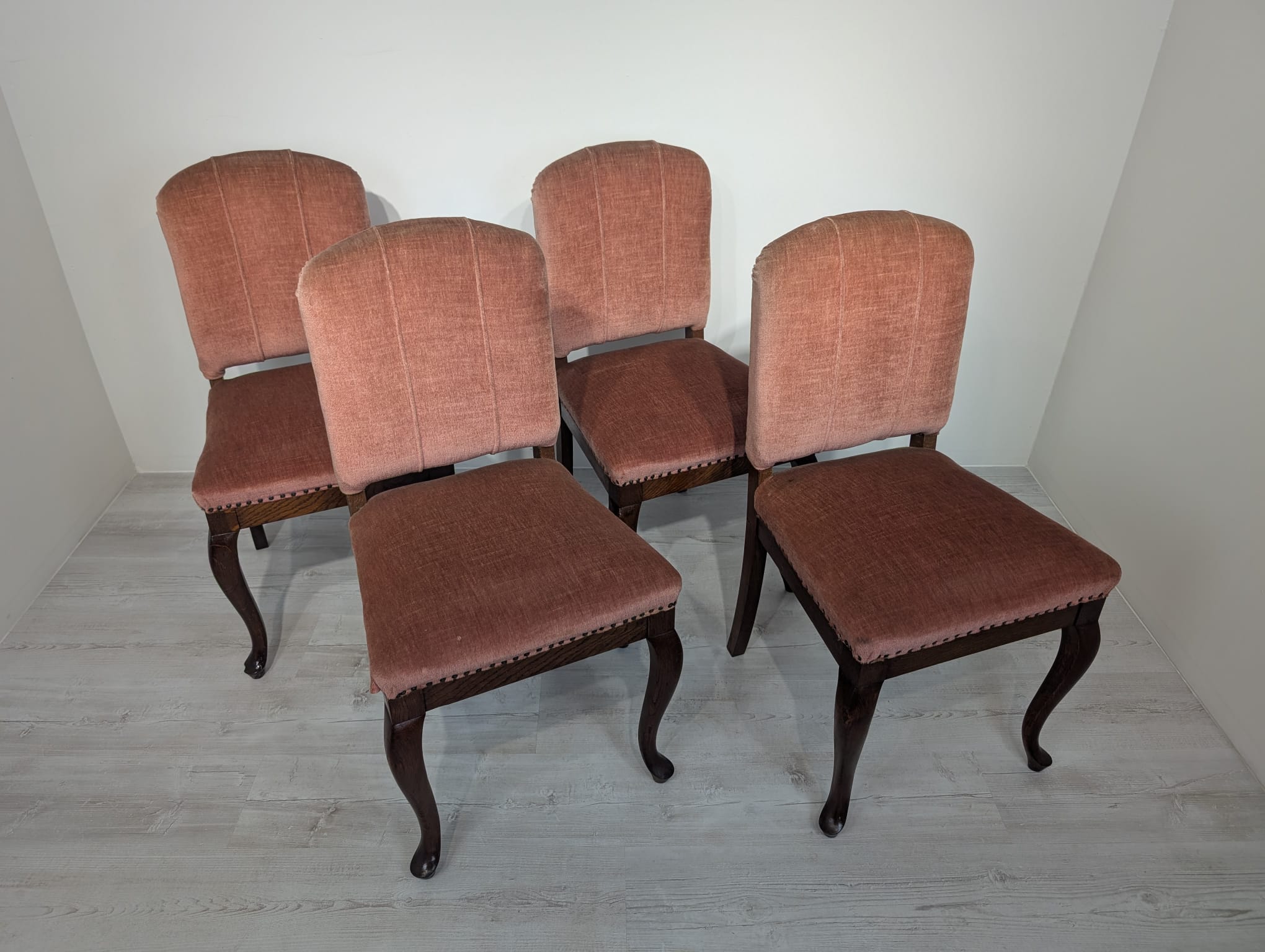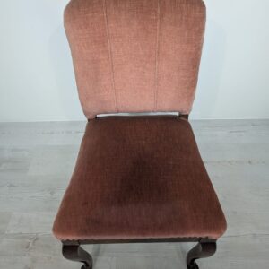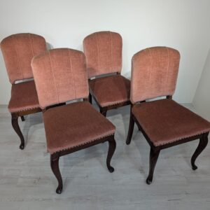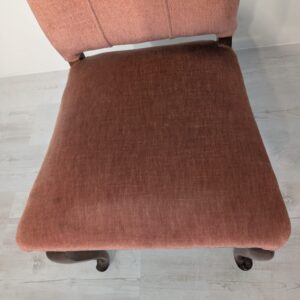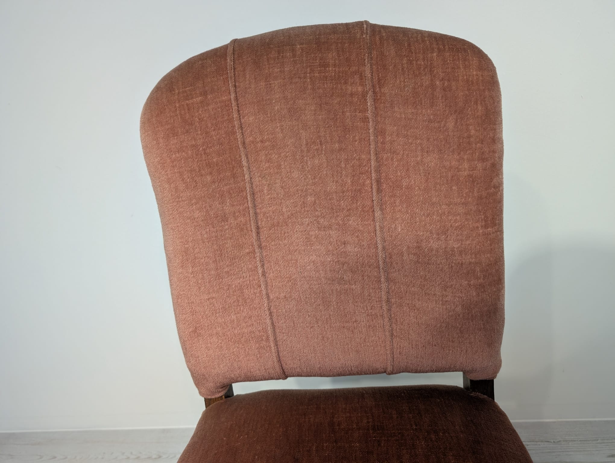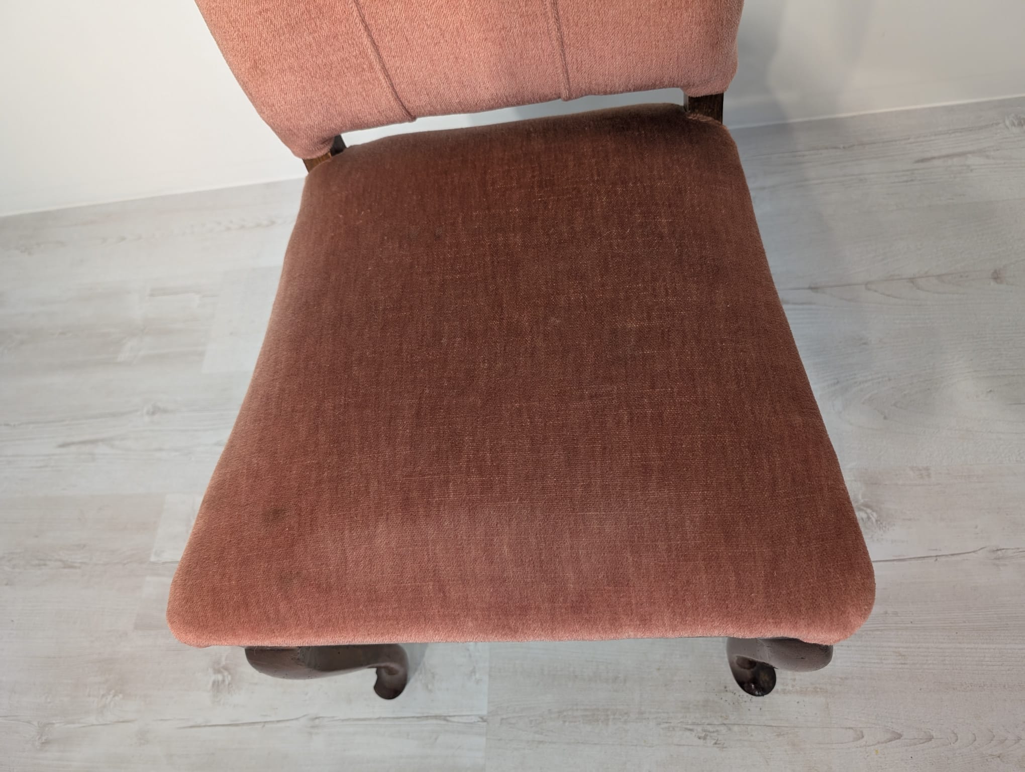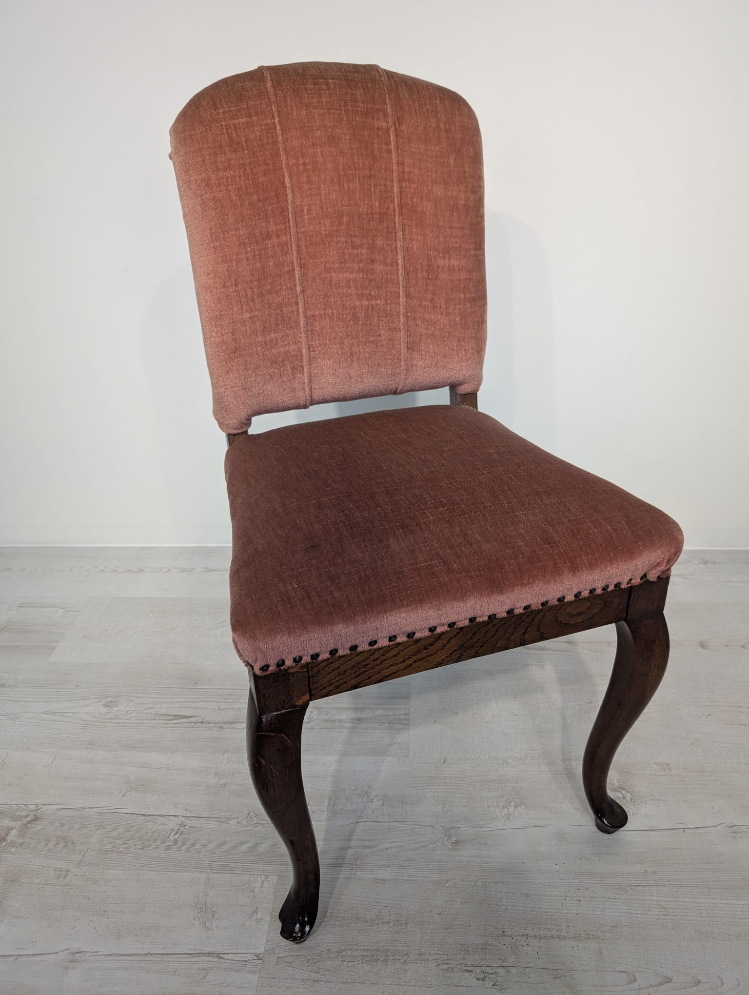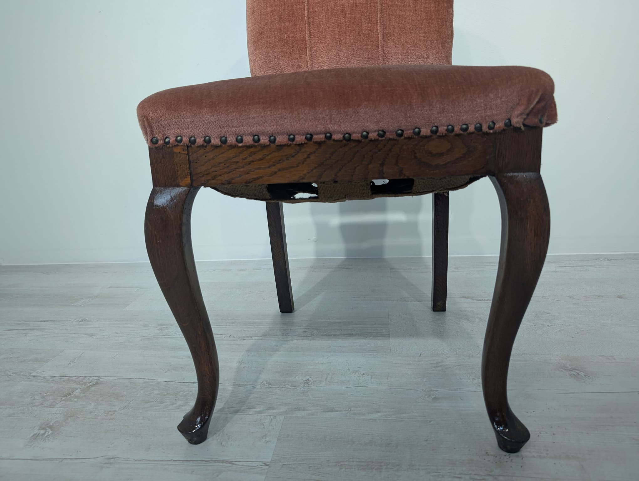 Krzesło w stylu ludwikowskim w różowej, pudrowej tapicerce.