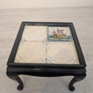 Stolik posiada pięknie ludwikowskie nogi a blat wykonany z płytki.