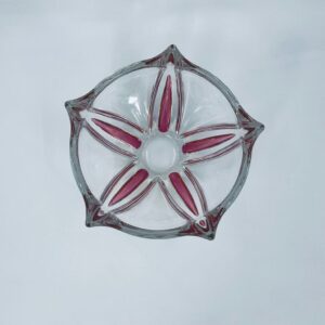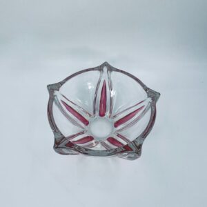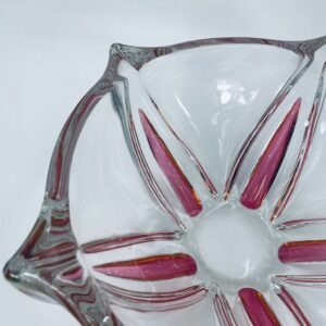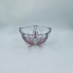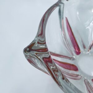Misa w stylu Vintage z lat 50tych, wykona z wysokiej jakości ciężkiego, grubego, artystycznego szkła murano. Misa ręcznie robiona, charakteryzuje się nieregularnym górnym rantem oraz unikalnym wzorem z czerwoną barwą. Posiada delikatne przetarcia na barwie.