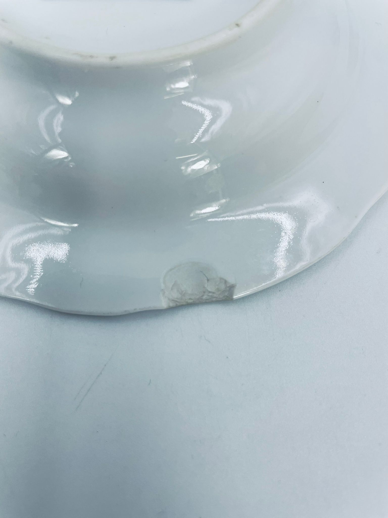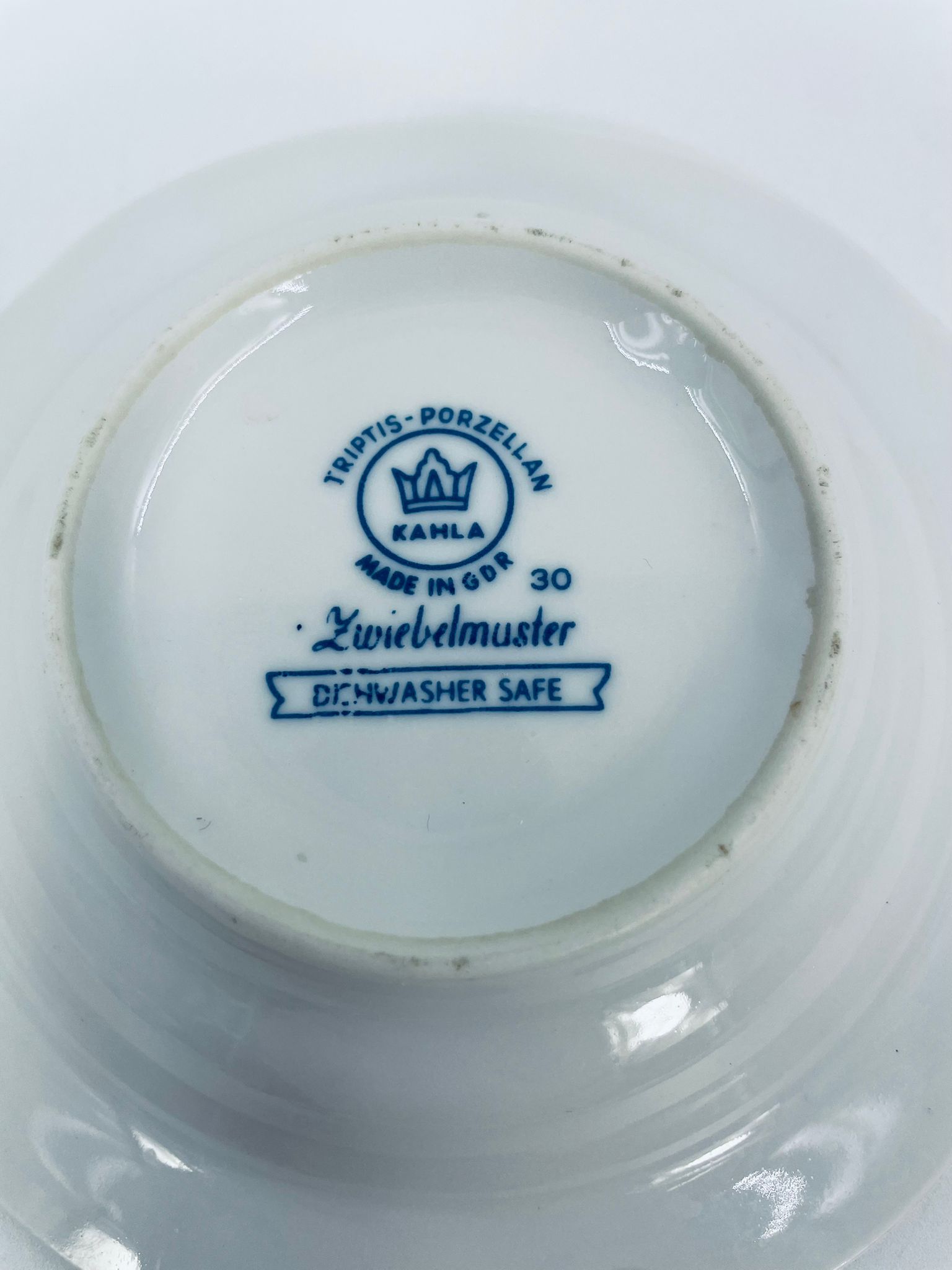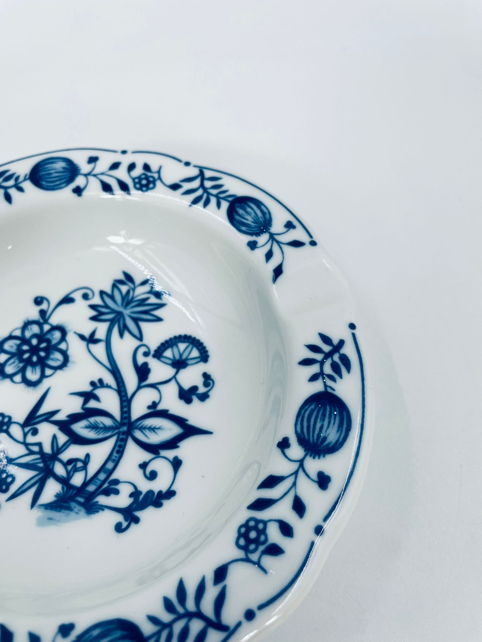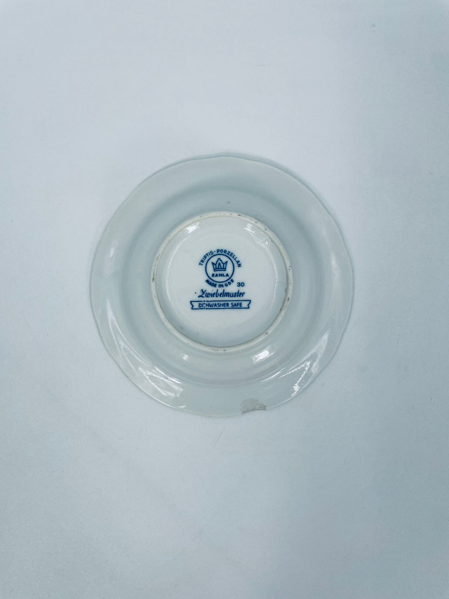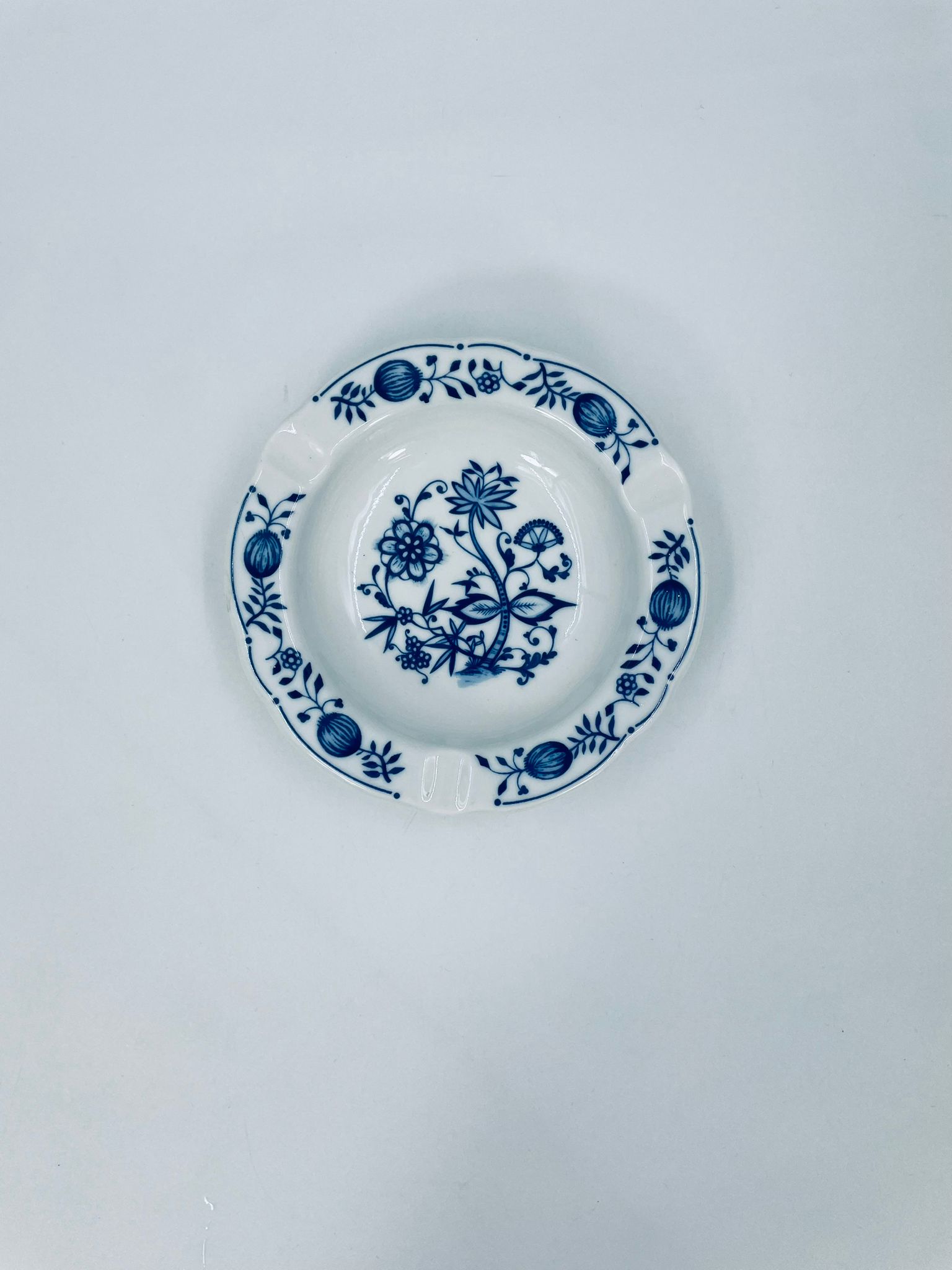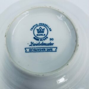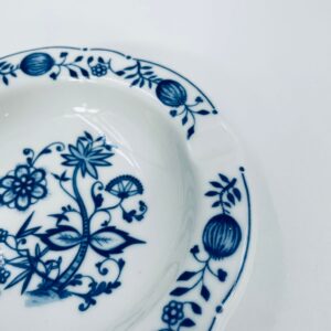 Misa wytwórni Kahla wykonana z wysokiej jakości białej porcelany. Misa w niebieskim wzorze cebulowym, posiada trzy wcięcia i może służyć jako popielnica. Mały uszczerbek.