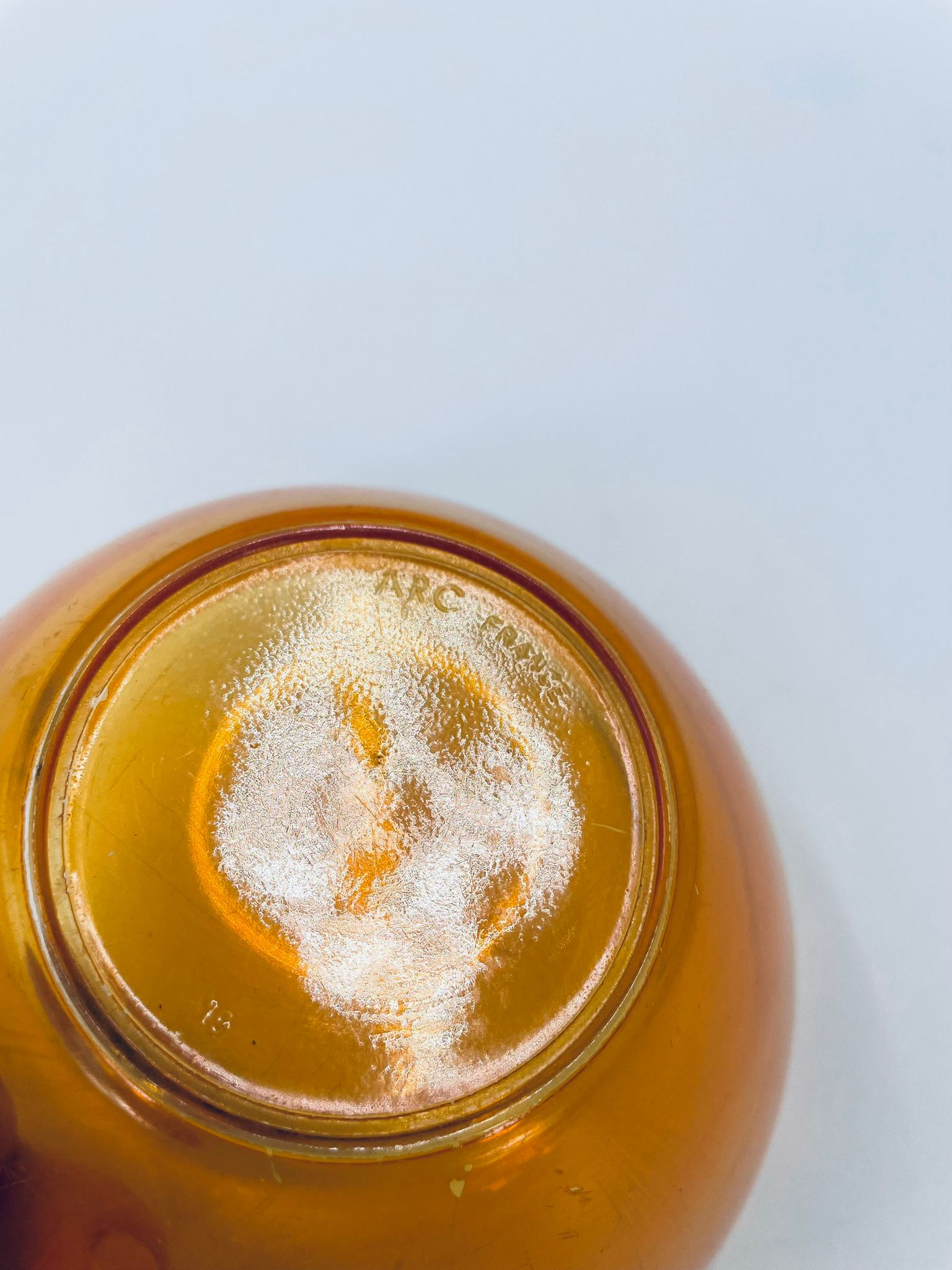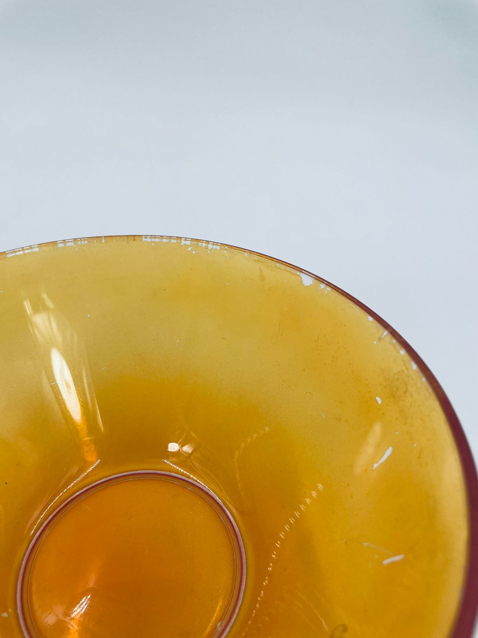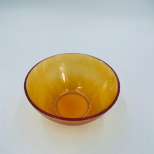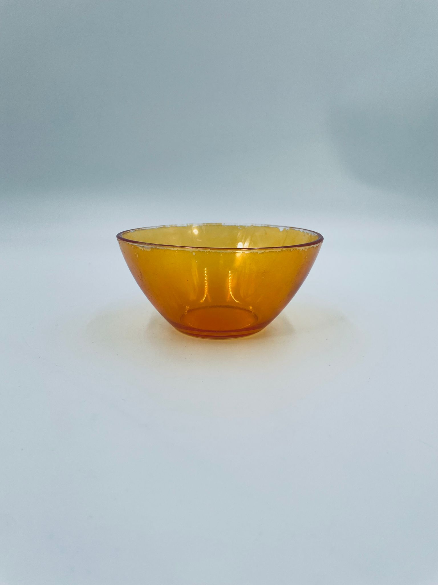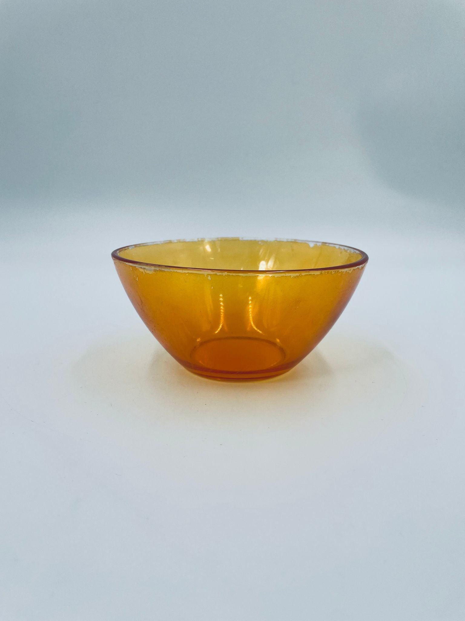 Misa, salaterka marki ARC France, wykonana z wysokiej jakości szkła. Misa barwiona na kolor pomarańczowy. Posiada przetarcie koloru.