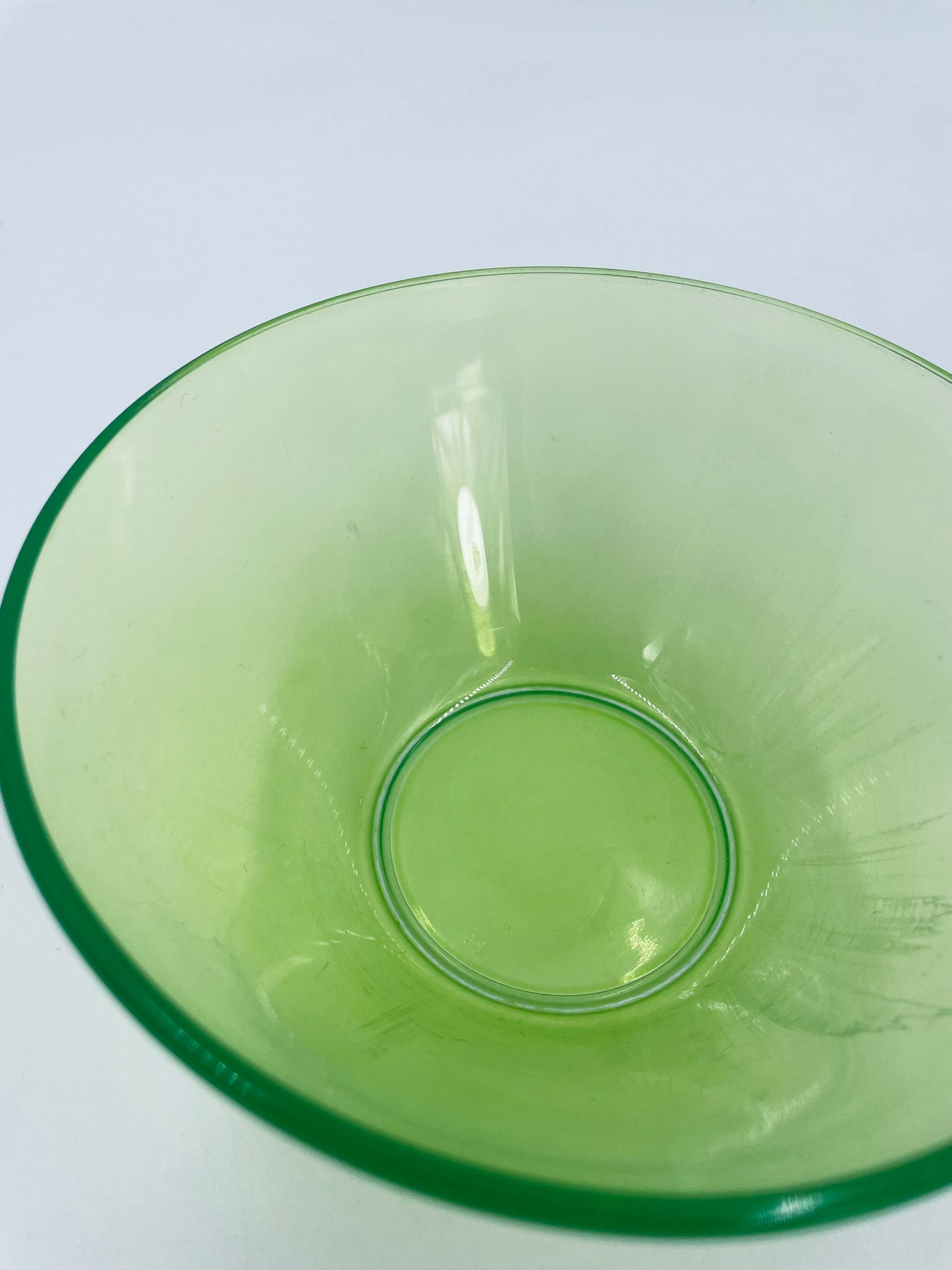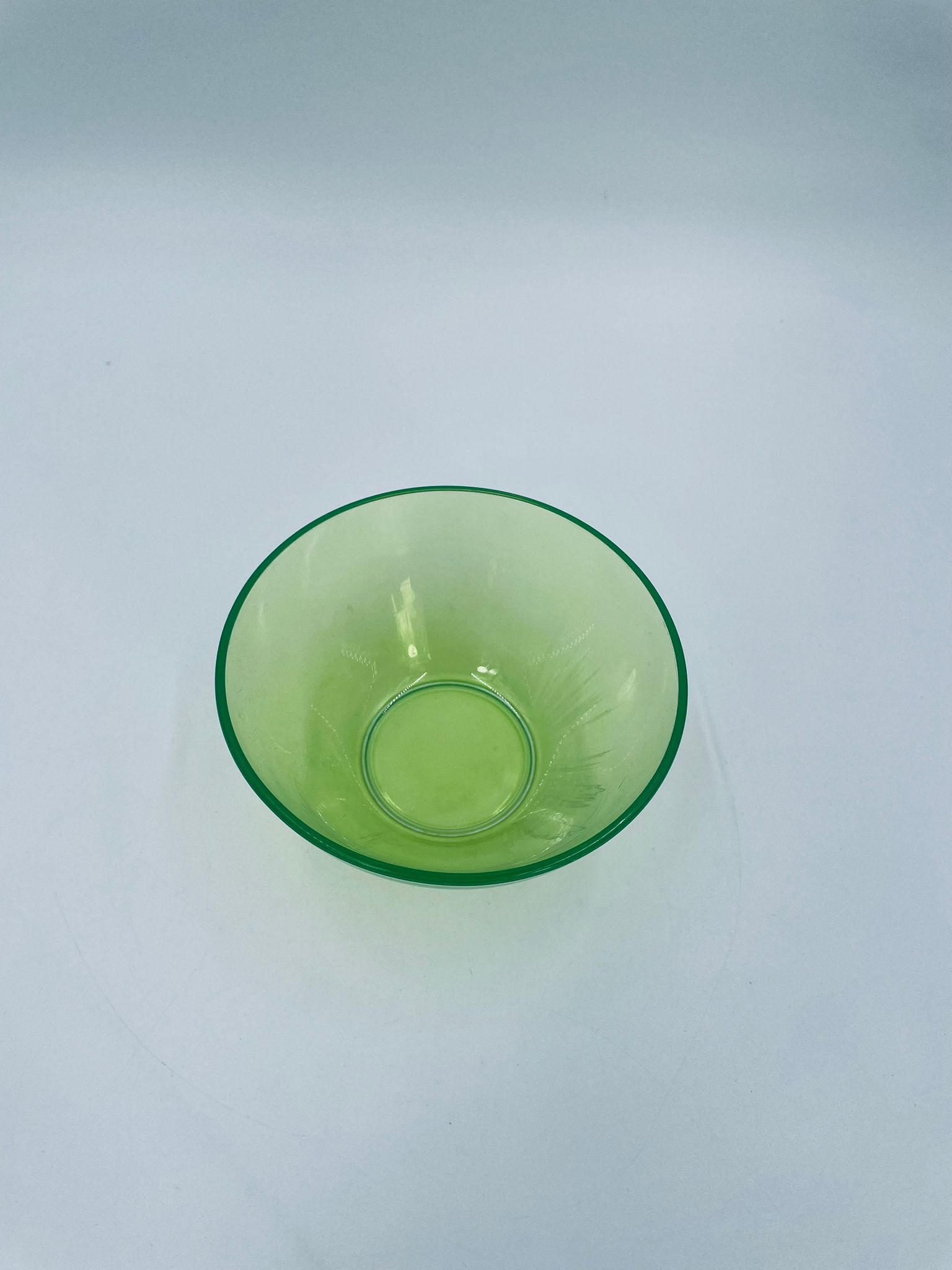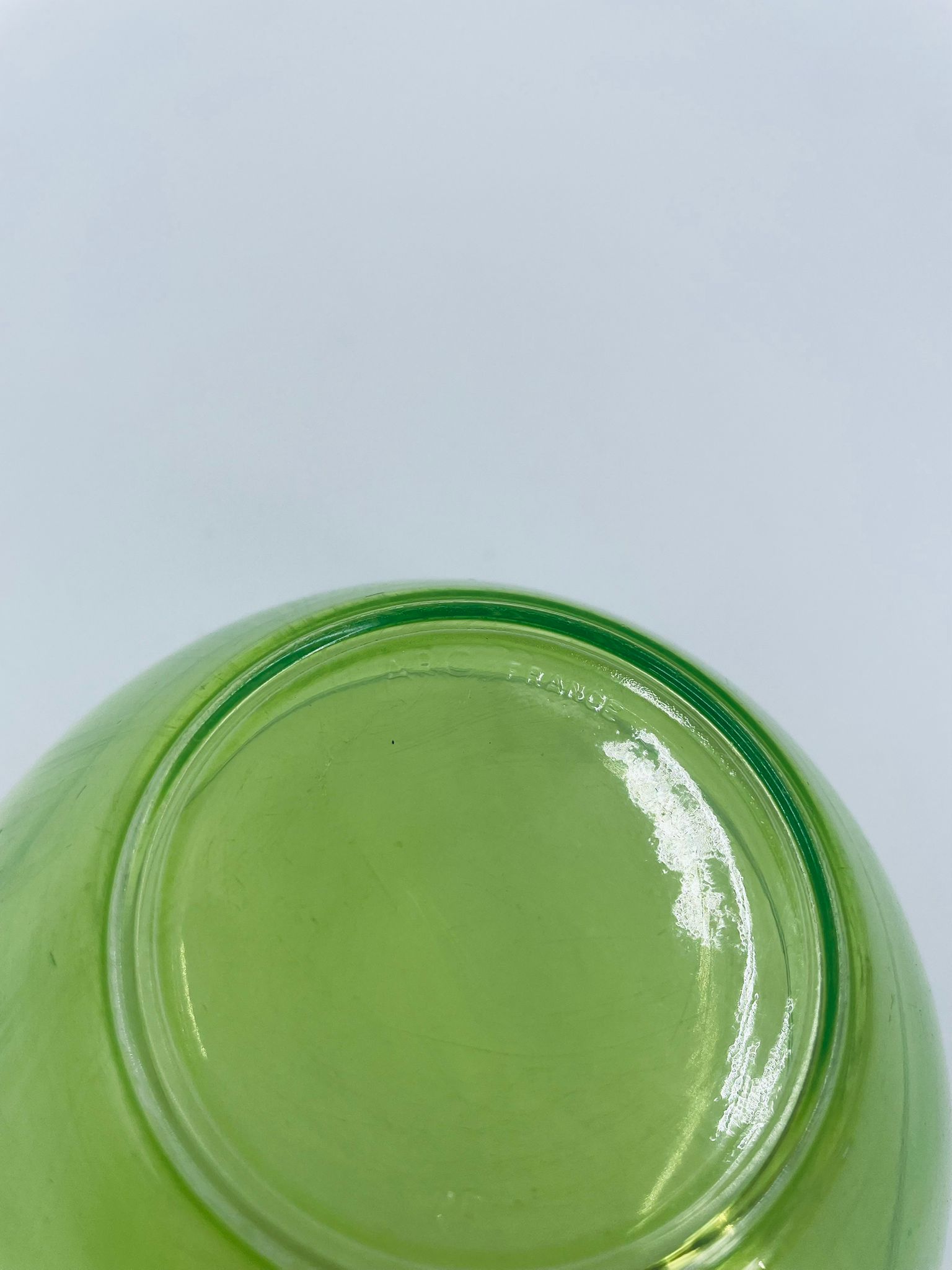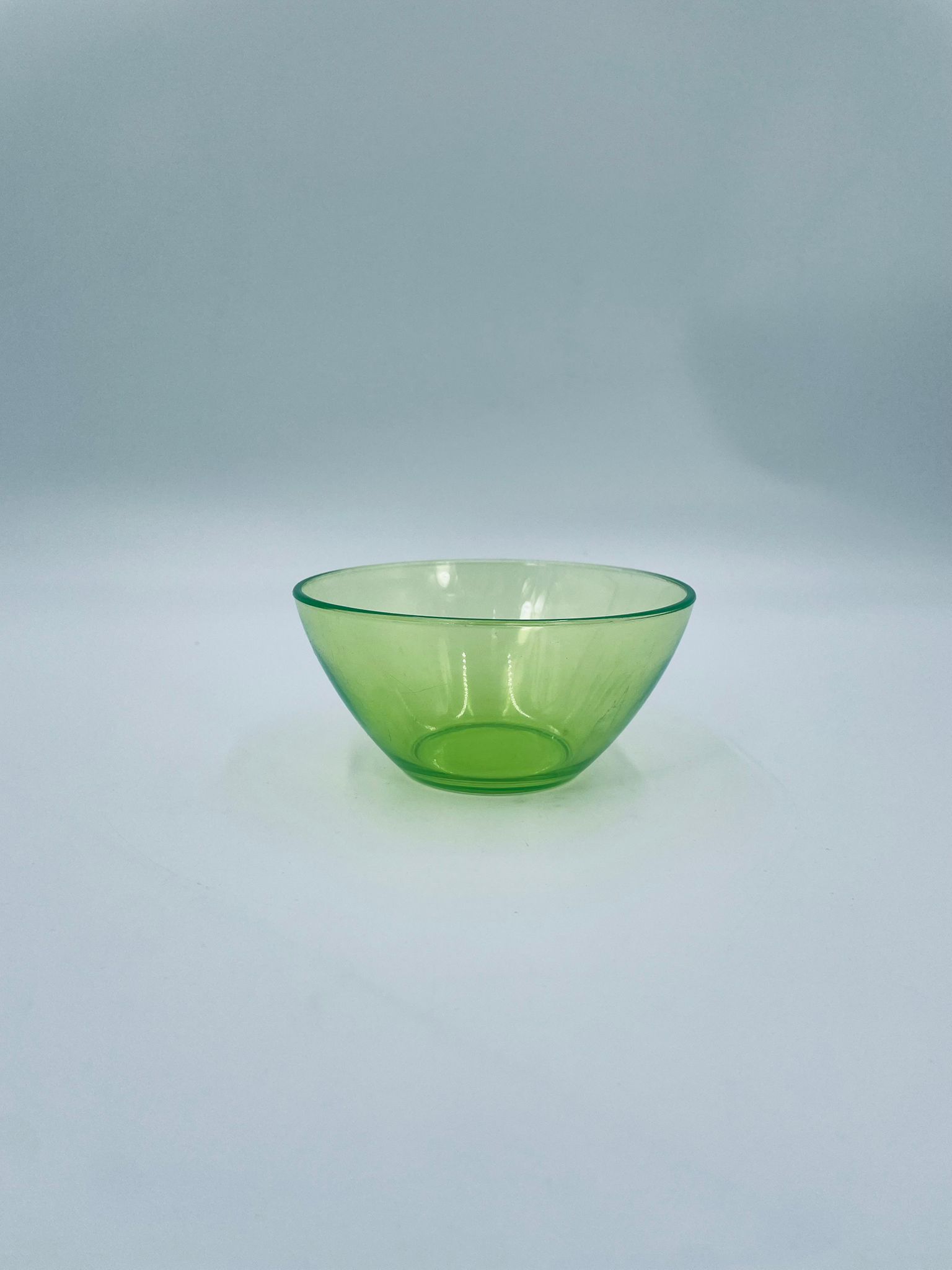Misa, salaterka marki ARC France, wykonana z wysokiej jakości szkła. Misa barwiona na kolor limonkowy. Posiada drobne zarysowanie.