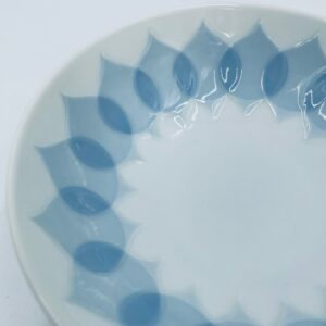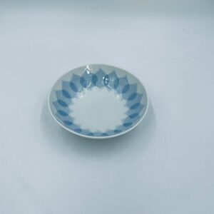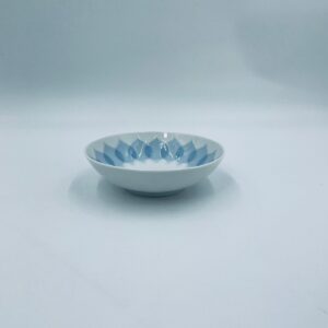 Miseczka renomowanej wytwórni Rosenthal Studio Line z serii Lotus Blau , zaprojektowana przez duńskiego artystę Bjorna Wiinblada w 1964r, wykonana z najwyższej jakości białej porcelany. Miseczka ozdobiona wzorem „Blau”, charakteryzuje się delikatnym, geometrycznym motywem przypominający liście lotosu w niebieskim odcieniu.