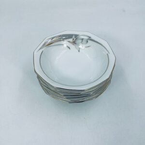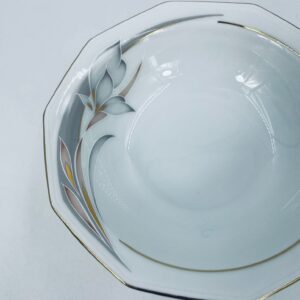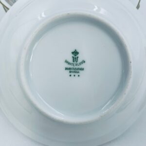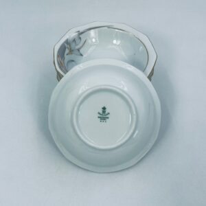 Miseczka wytwórni Winterling Marktleuthen, wykonana z białej porcelany z ozdobnym wzorem kwiata w odcieniu brązu i szarości oraz subtelnymi złotymi akcentami na dziesięciolatek krawędzi.