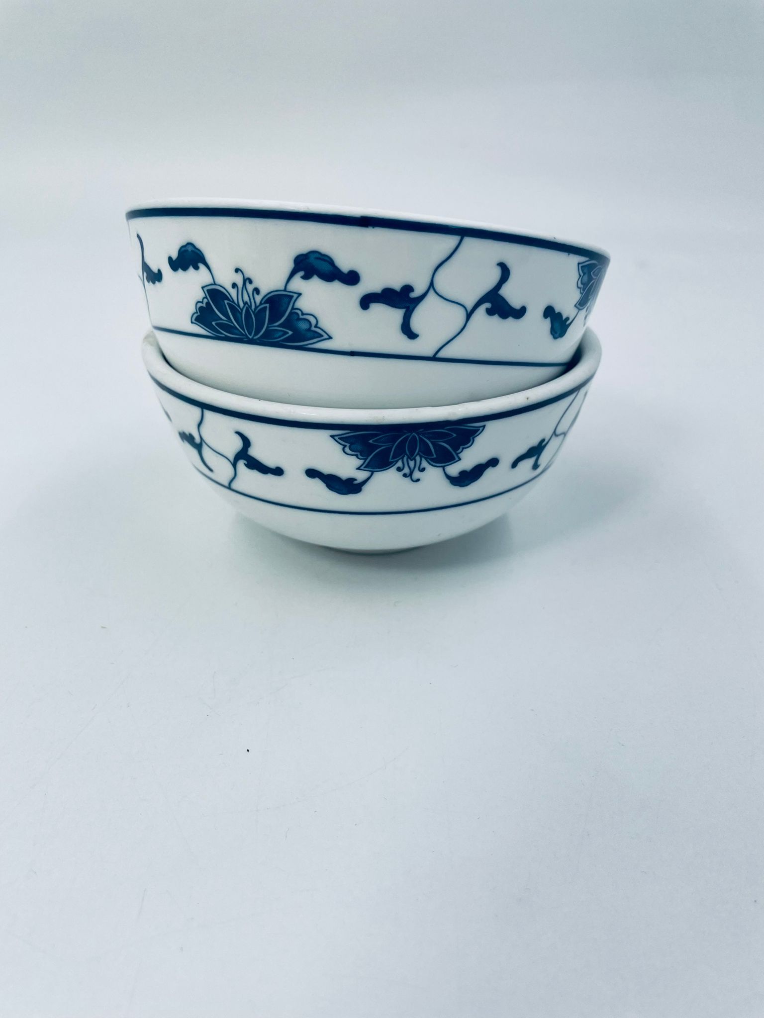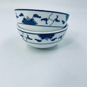 Porcelanowa okrągła miseczka w kolorze białym z motywem niebieskiego wzoru. Idealna do serwowania zup, sałatek, deserów.