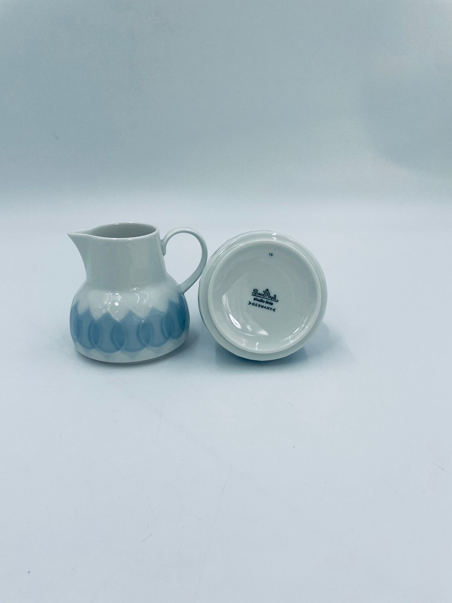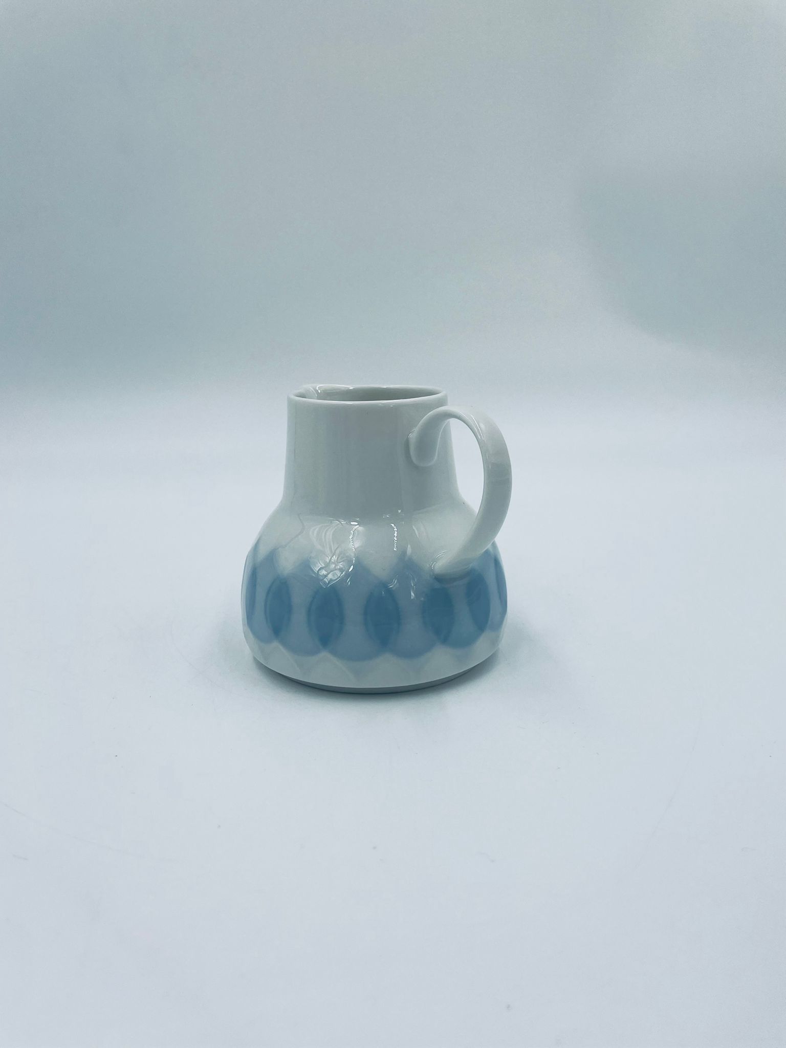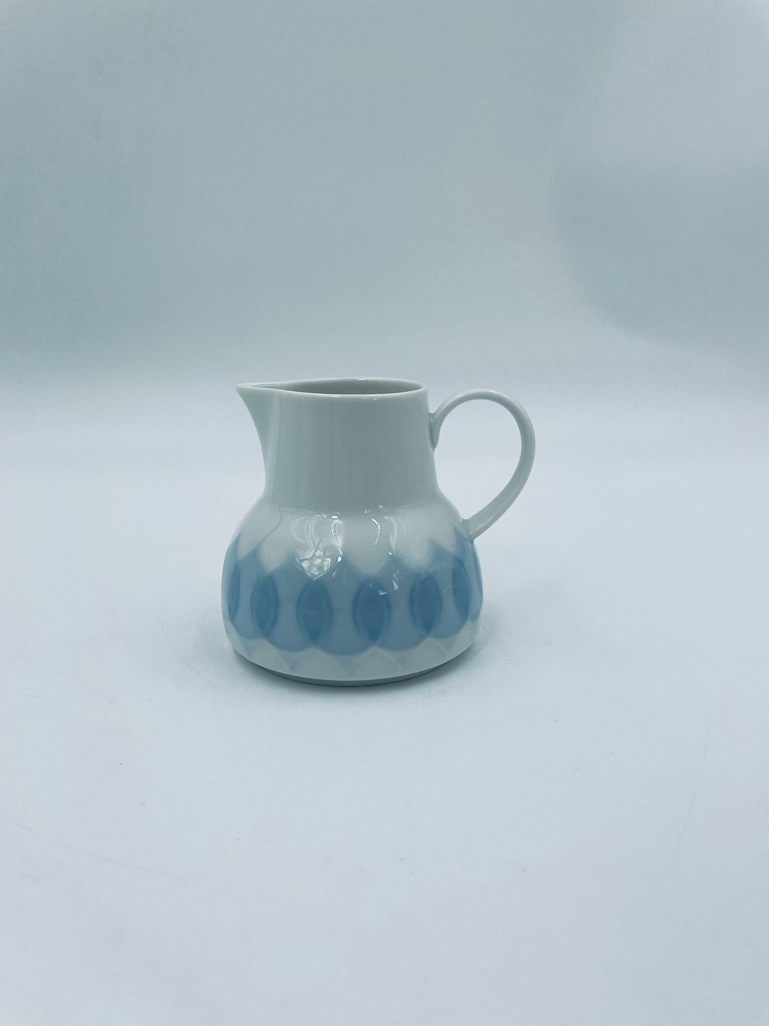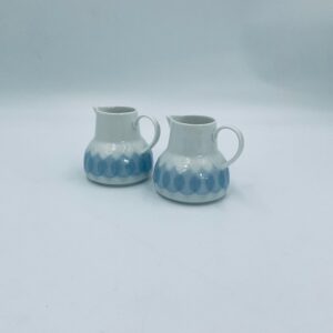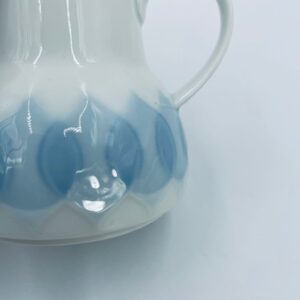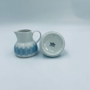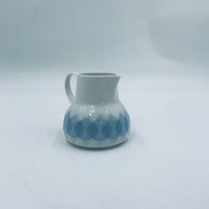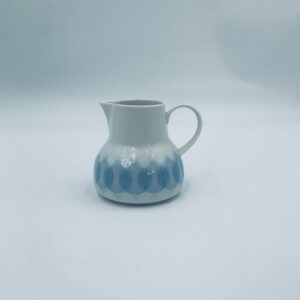 Dzbanuszek na mleko renomowanej wytwórni Rosenthal Studio Line z serii Lotus Blau , zaprojektowany przez duńskiego artystę Bjorna Wiinblada w 1964r, wykonany z najwyższej jakości białej porcelany. Dzbanuszek z uchwytem, ozdobiony wzorem „Blau” z delikatnym, geometrycznym motywem przypominający liście lotosu w niebieskim odcieniu.