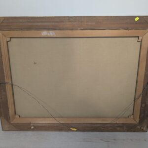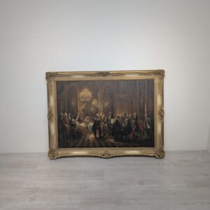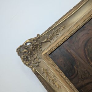 Obraz malowany na płótnie w ramie drewnianej bogato zdobionej.