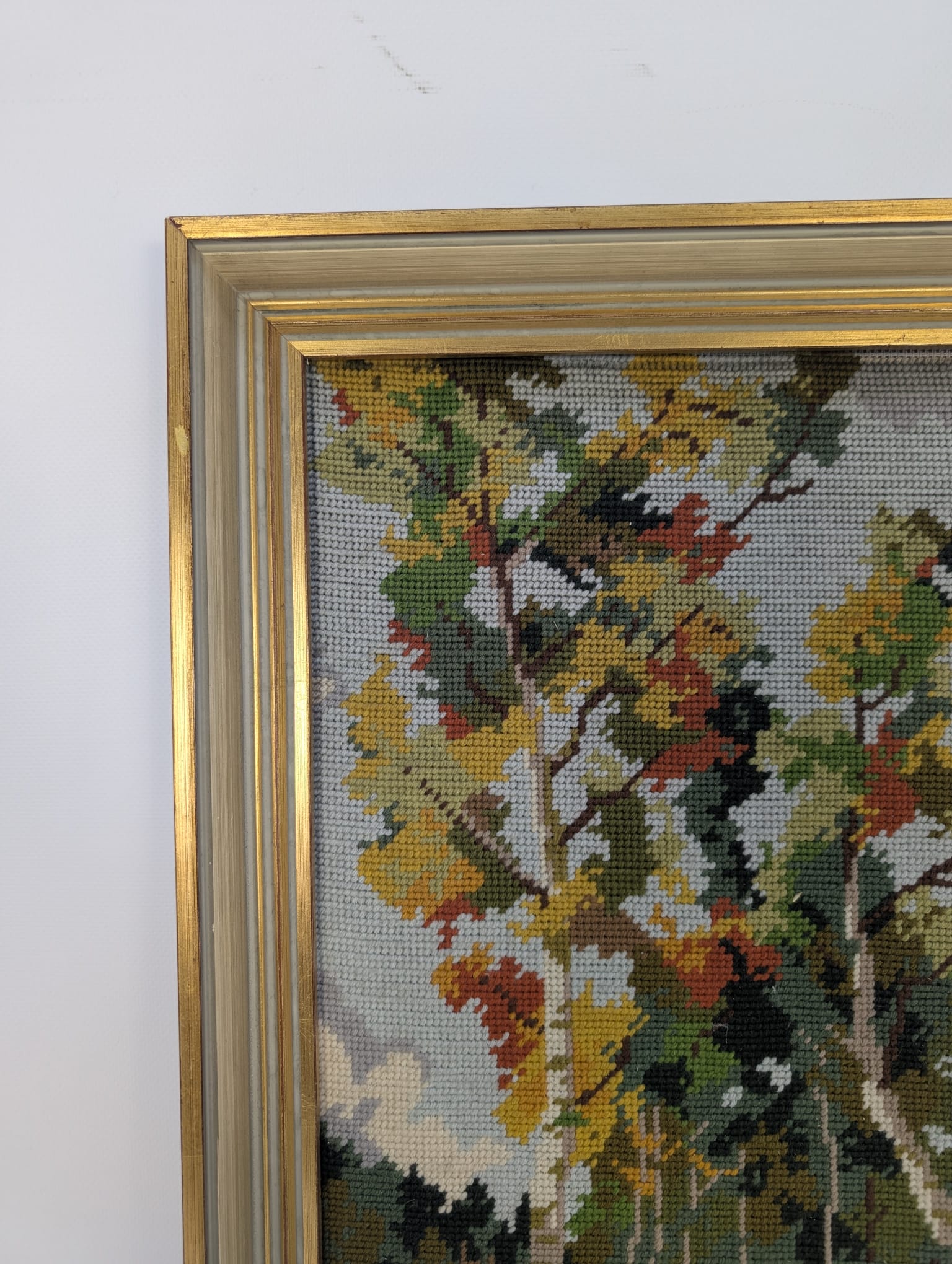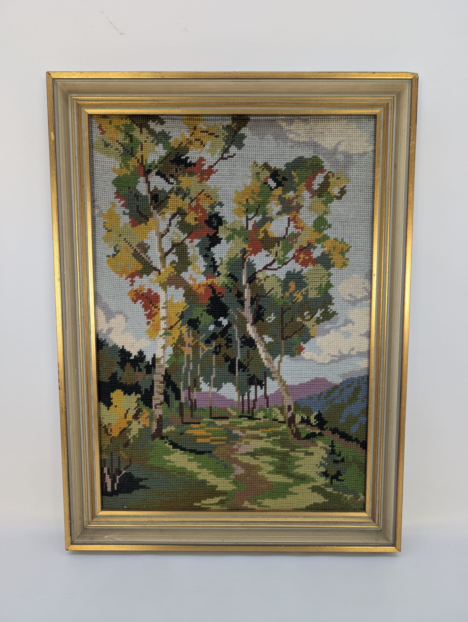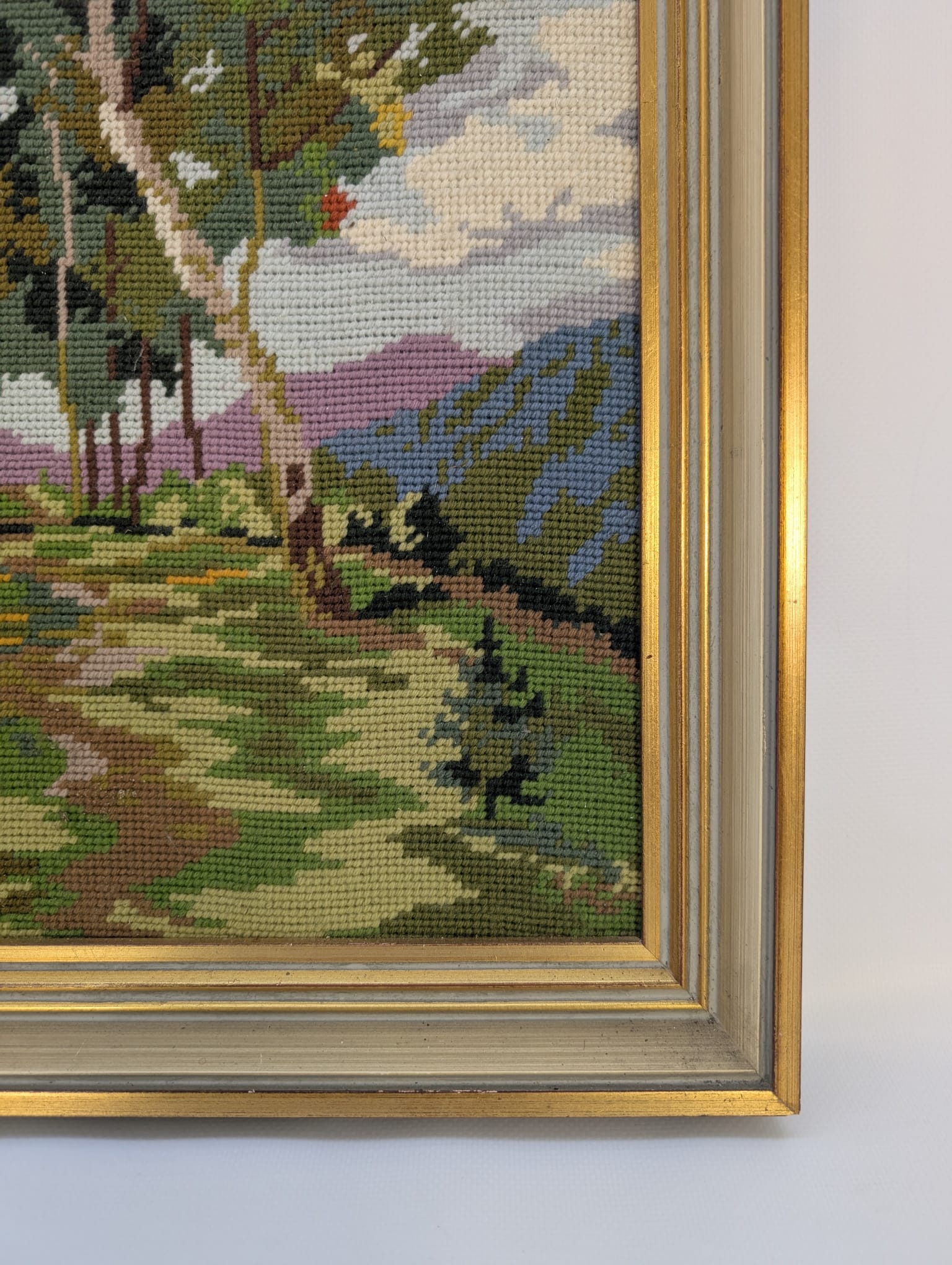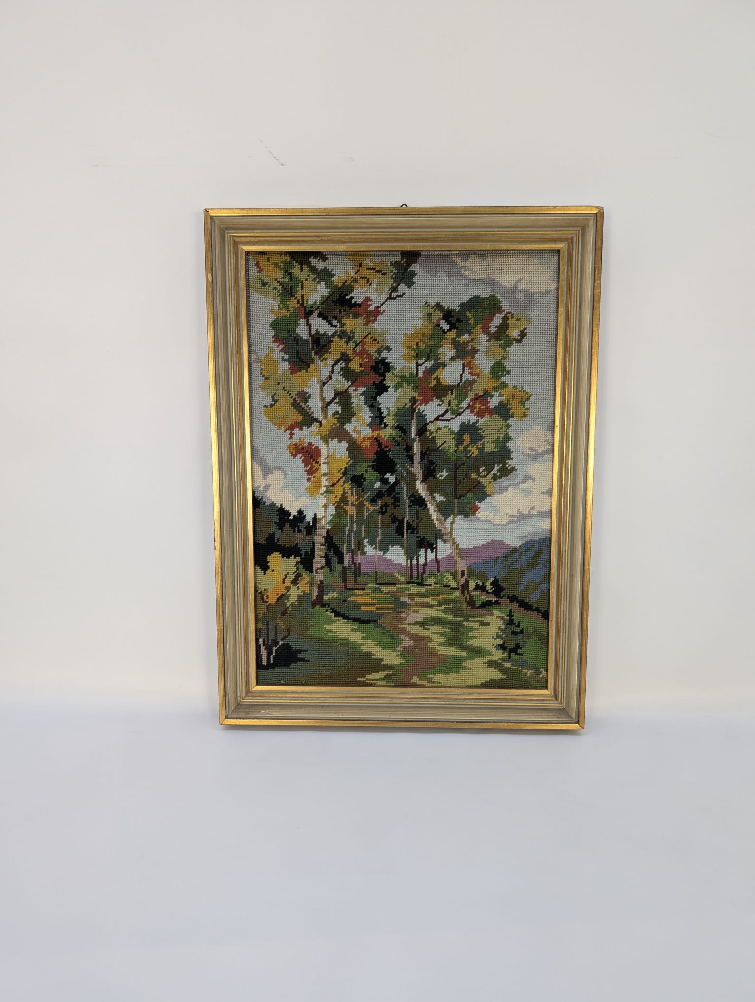 Pejzaż wykonany ręcznie, haftowany zwany inaczej Kanwą.