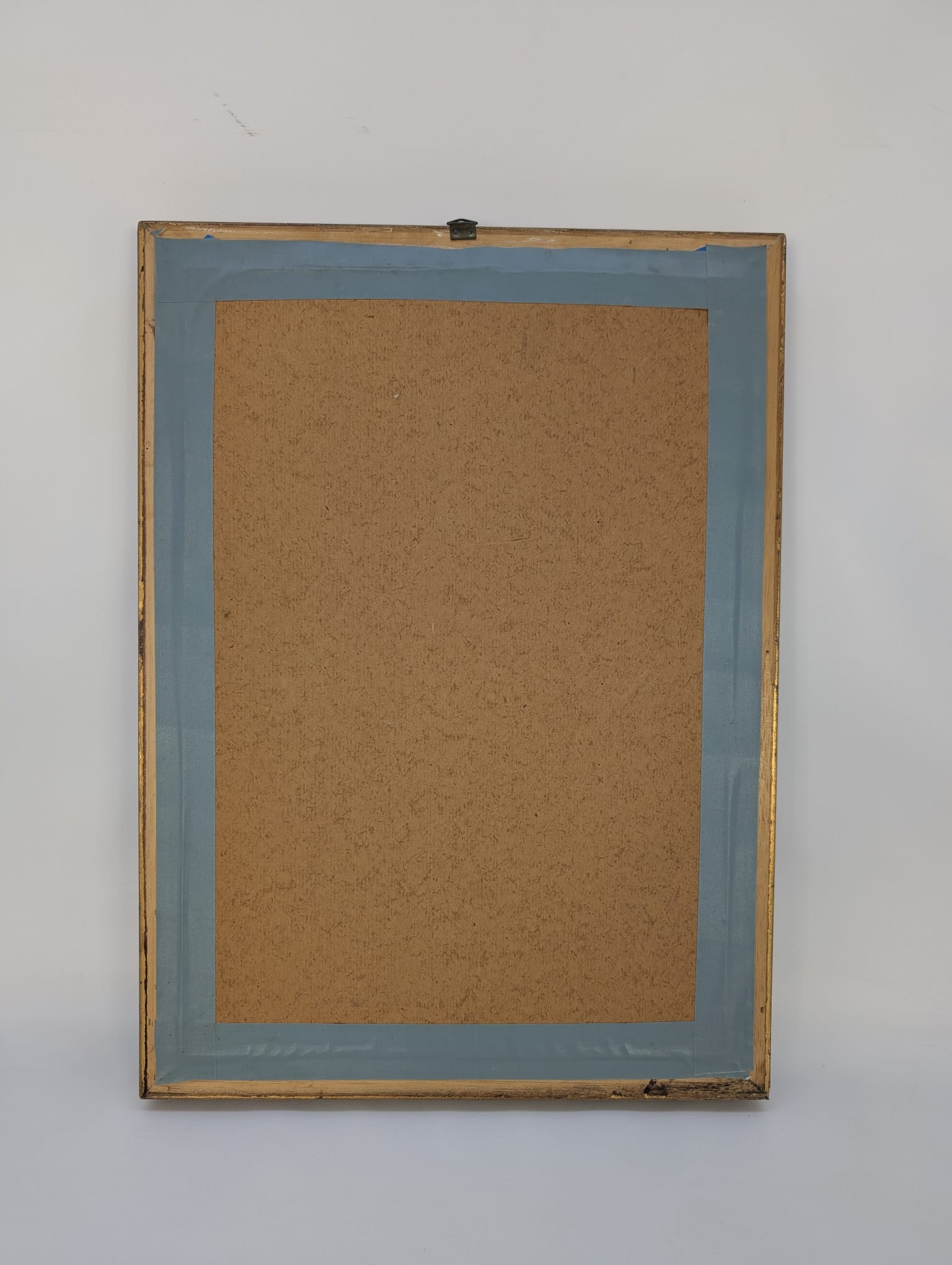Obraz w drewnianej złoconej ramie na płótnie.