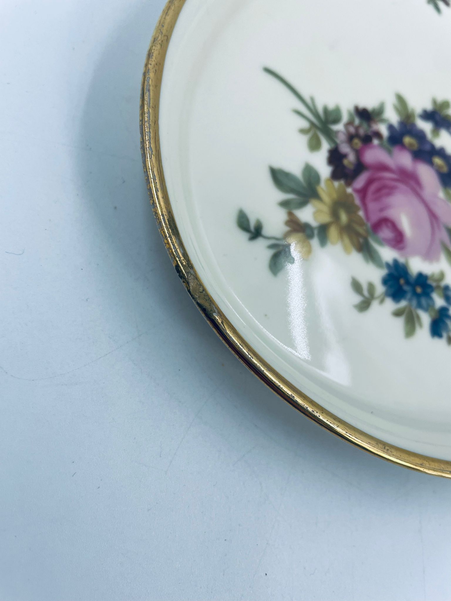 Porcelanowa patera manufaktury kobenhavns porcellains maleri KPM. Lata 50te. Porcelana w kolorze ecru z motywem kwiatowym, wykończona złoceniami na obramowaniu. Delikatny uszczerbek na rancie patery.