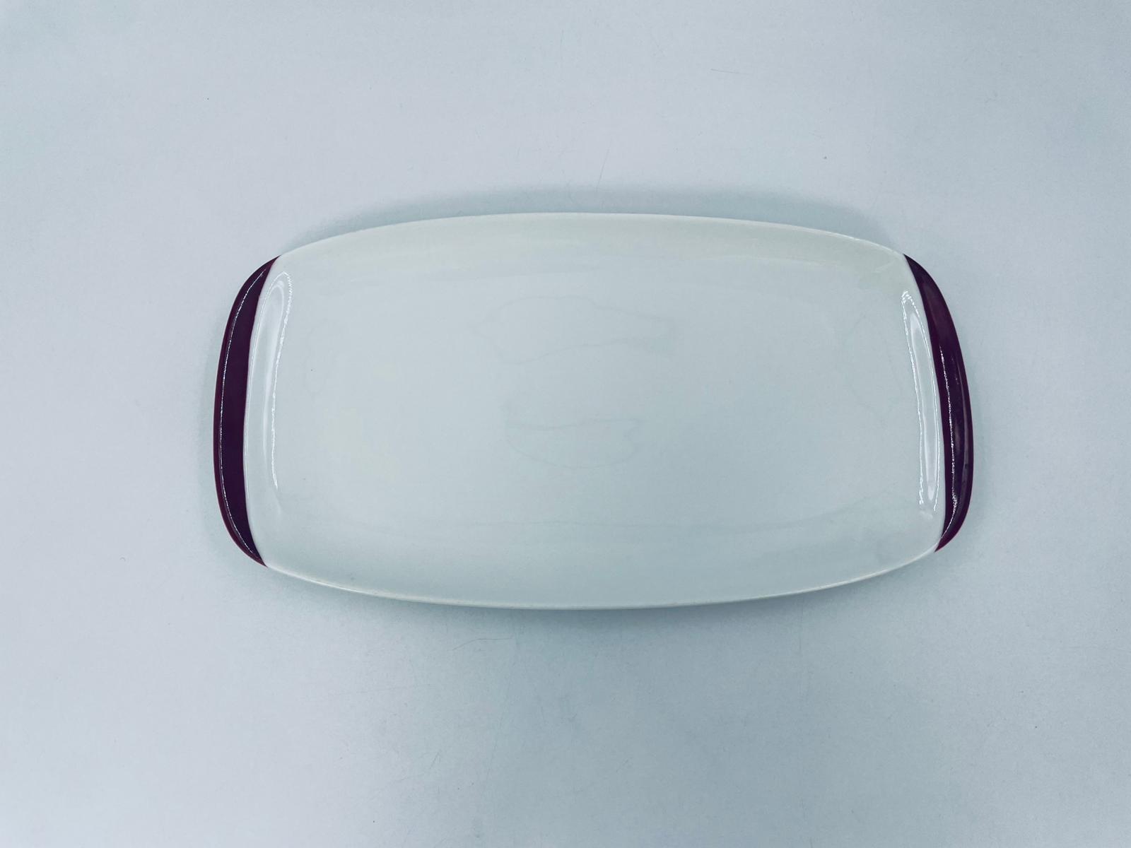 Patera znanej wytwórni Rosenthal, wykonana z białej porcelany. Charakteryzuje się modernistycznym designem z purpurowym wykończeniem na uchwytach.