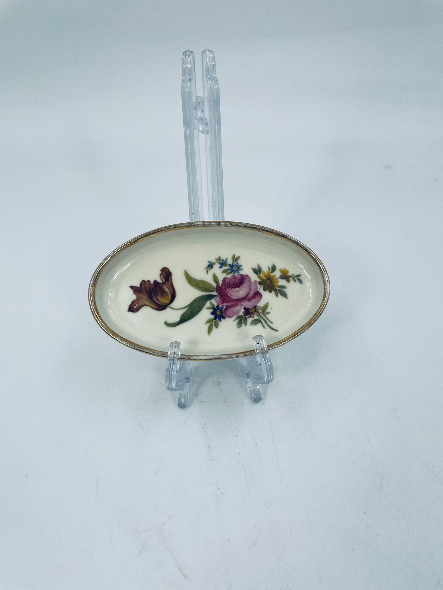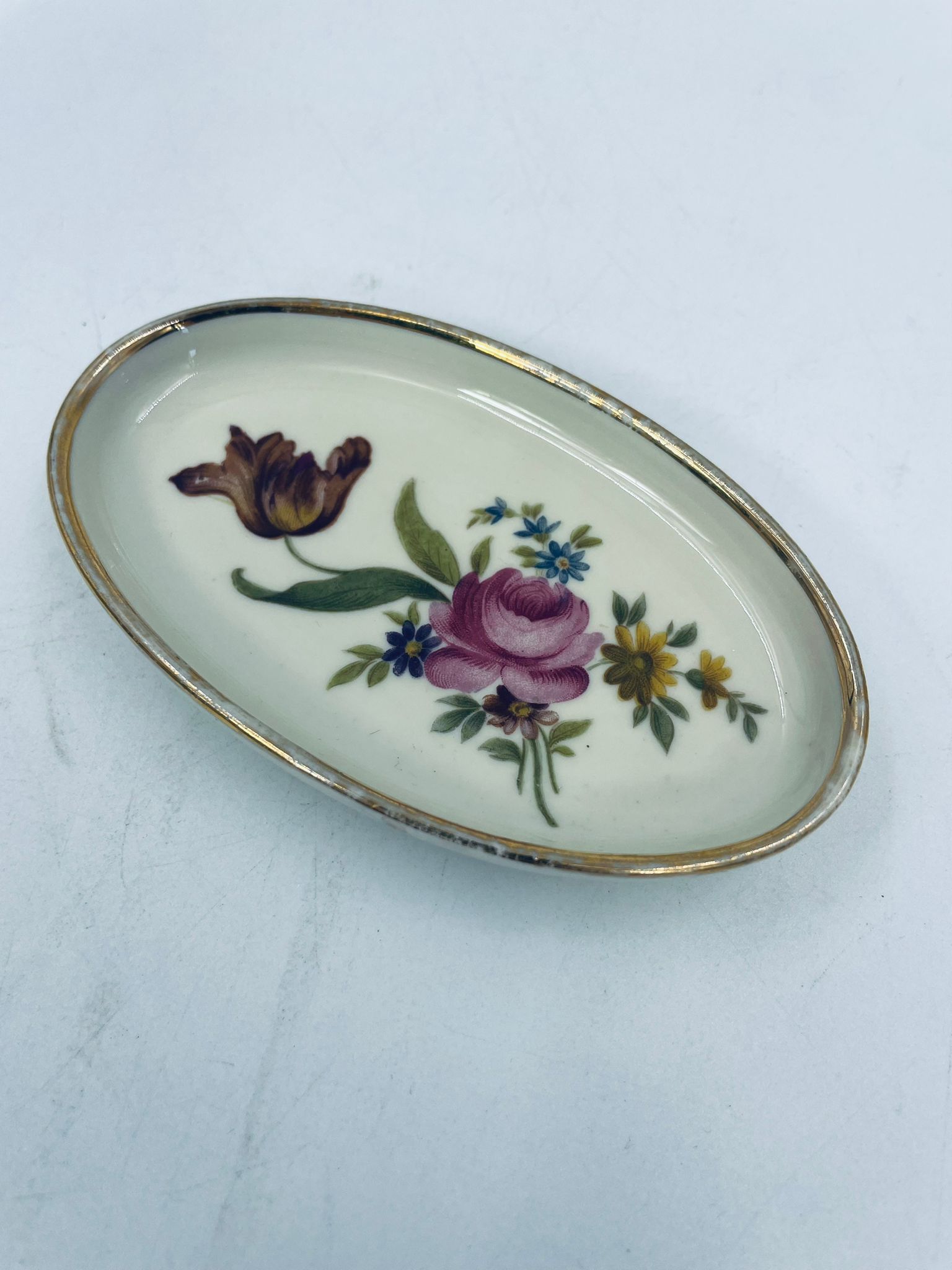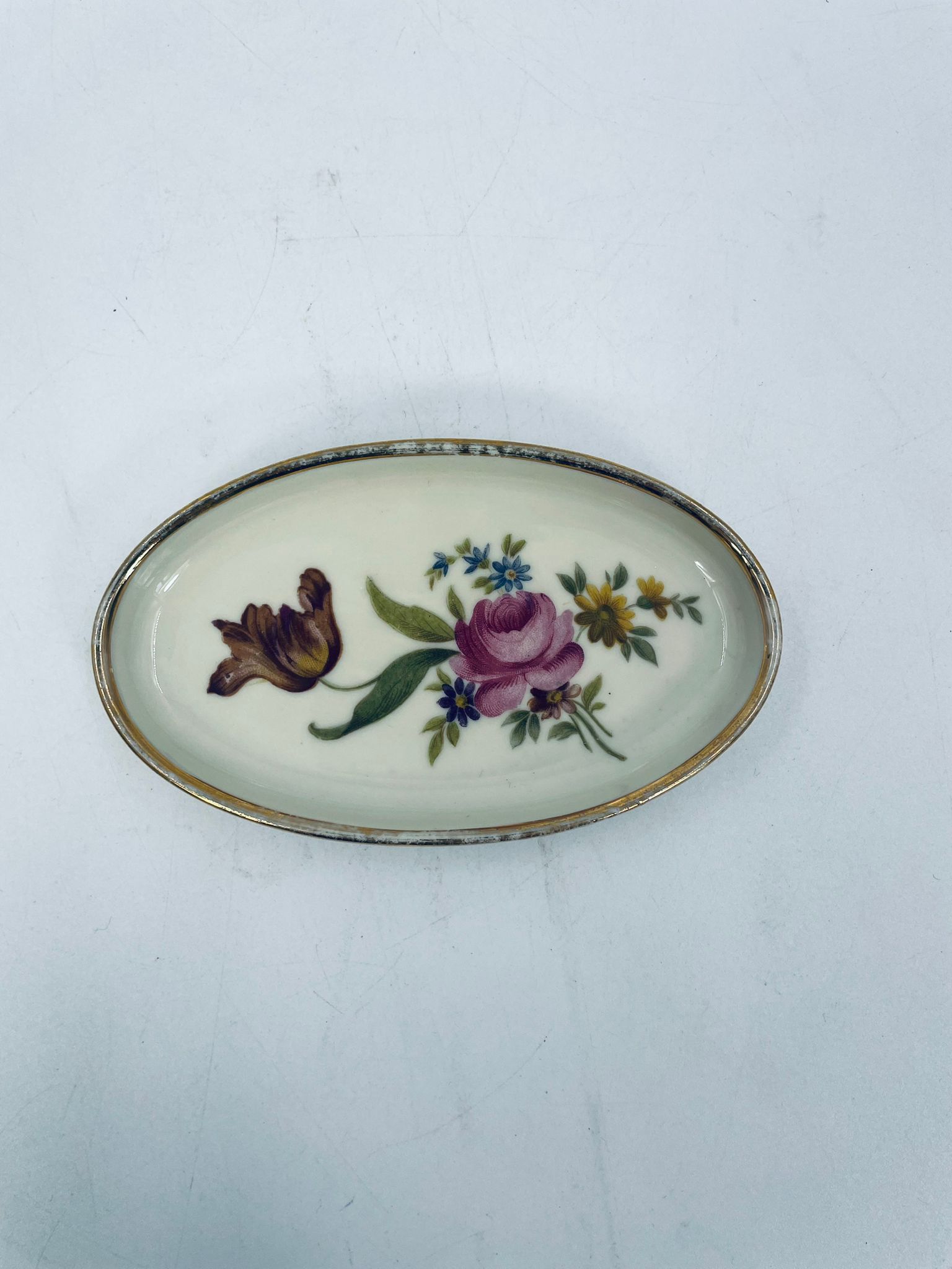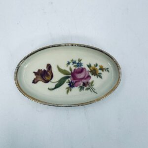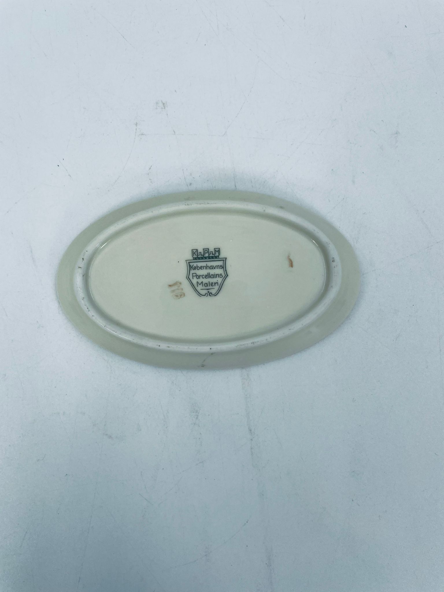 Mała patera Kobenhavns Porcellains maleri KPM . Porcelana w kolorze ecru, posiada wzór kwiatowy, złocony na krawędziach. Delikatne przetarcia na złoceniach.
