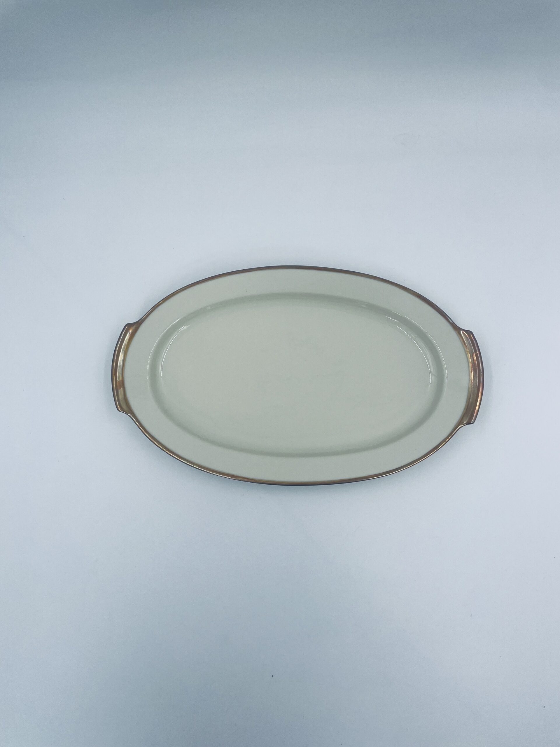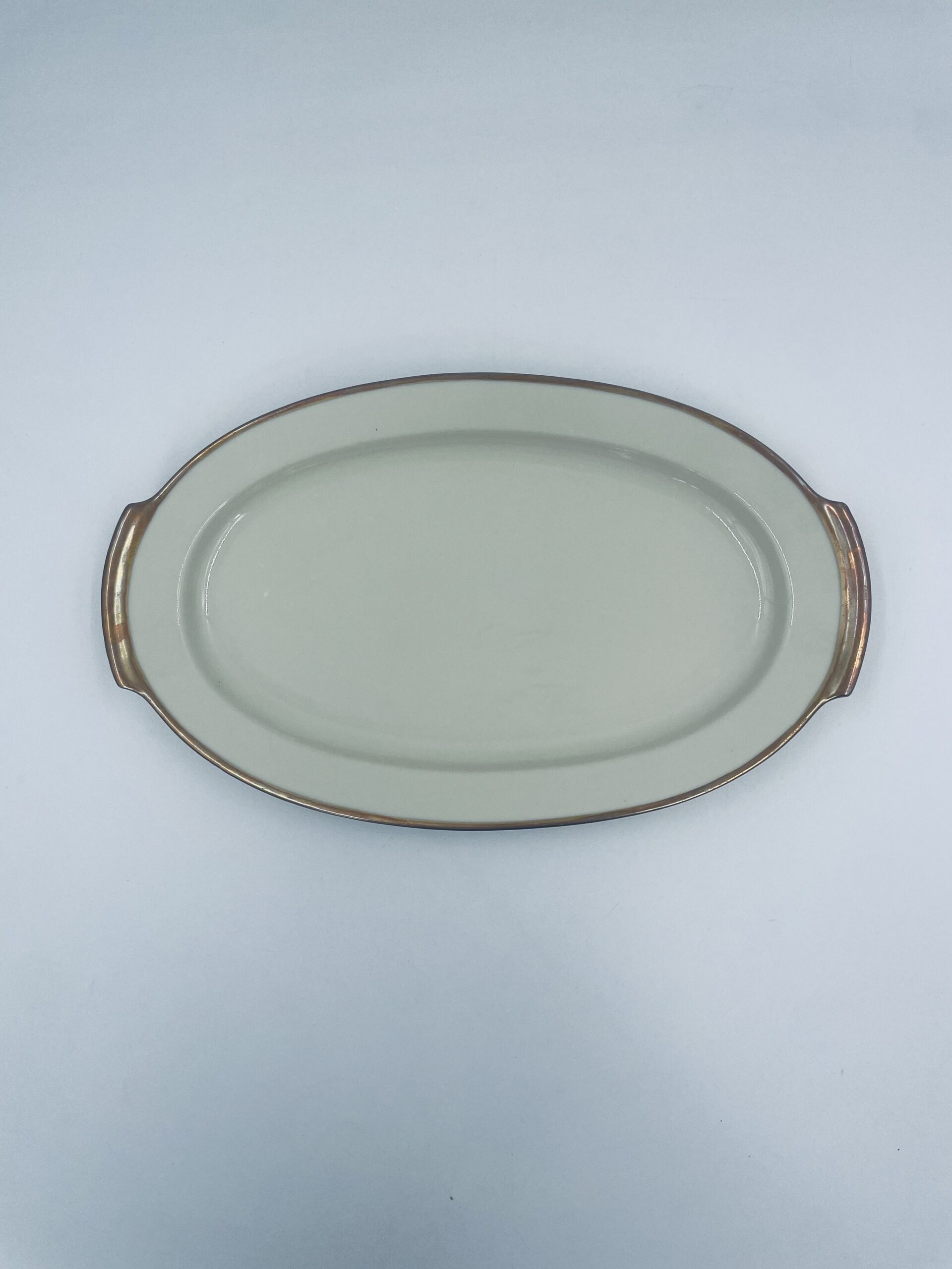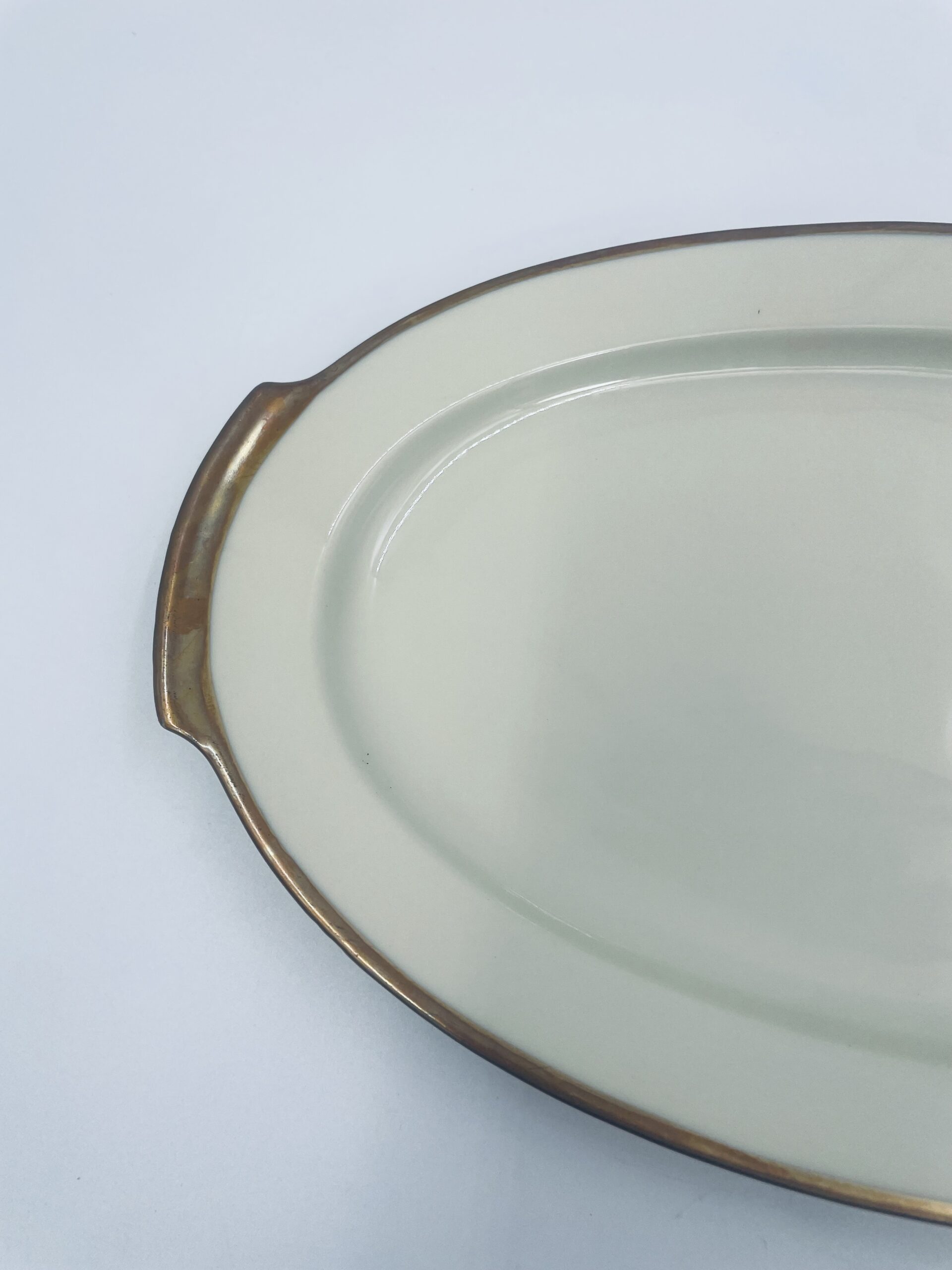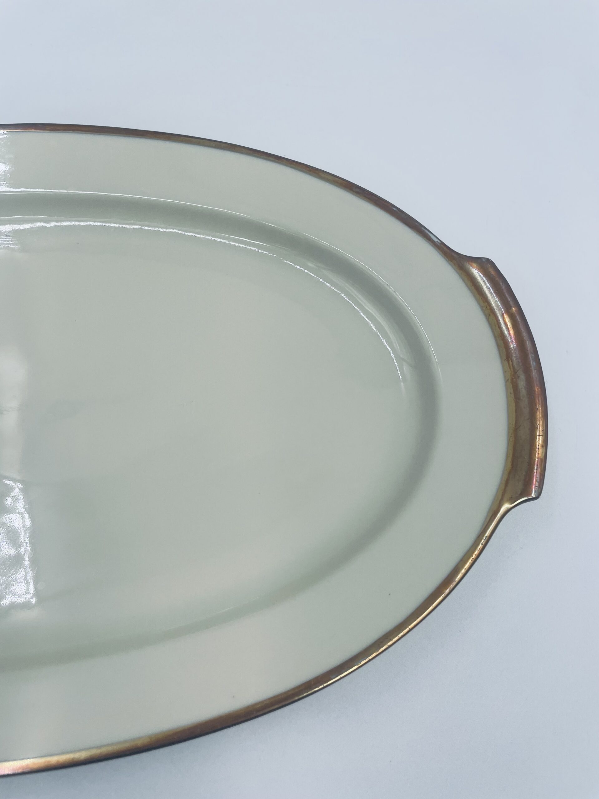 Porcelanowy półmisek z firmy Kahla w kolorze ecru wykończony złoconymi obramowaniami.