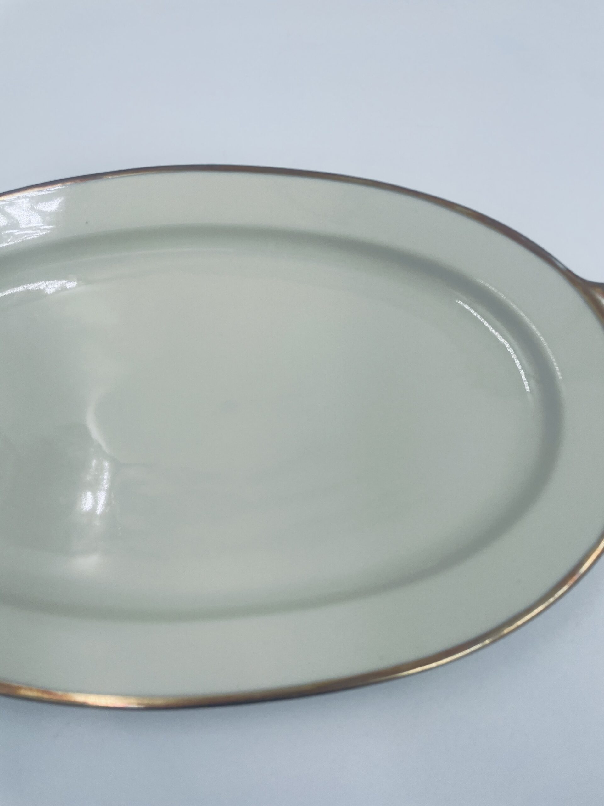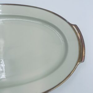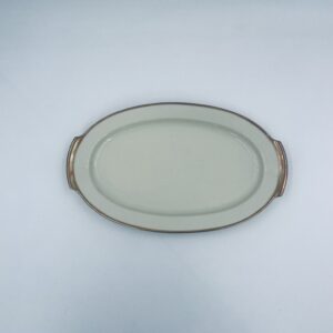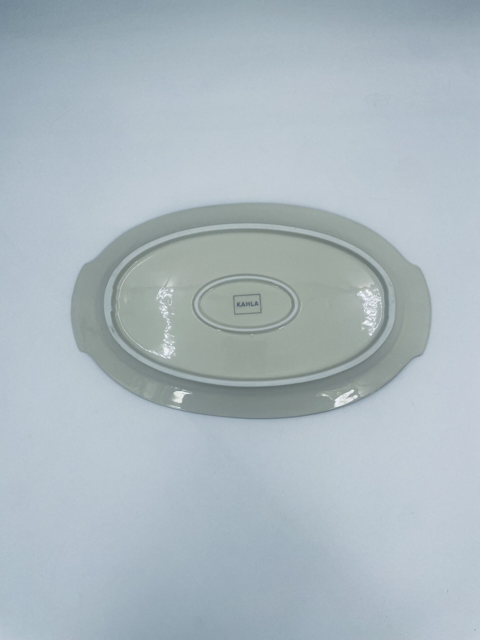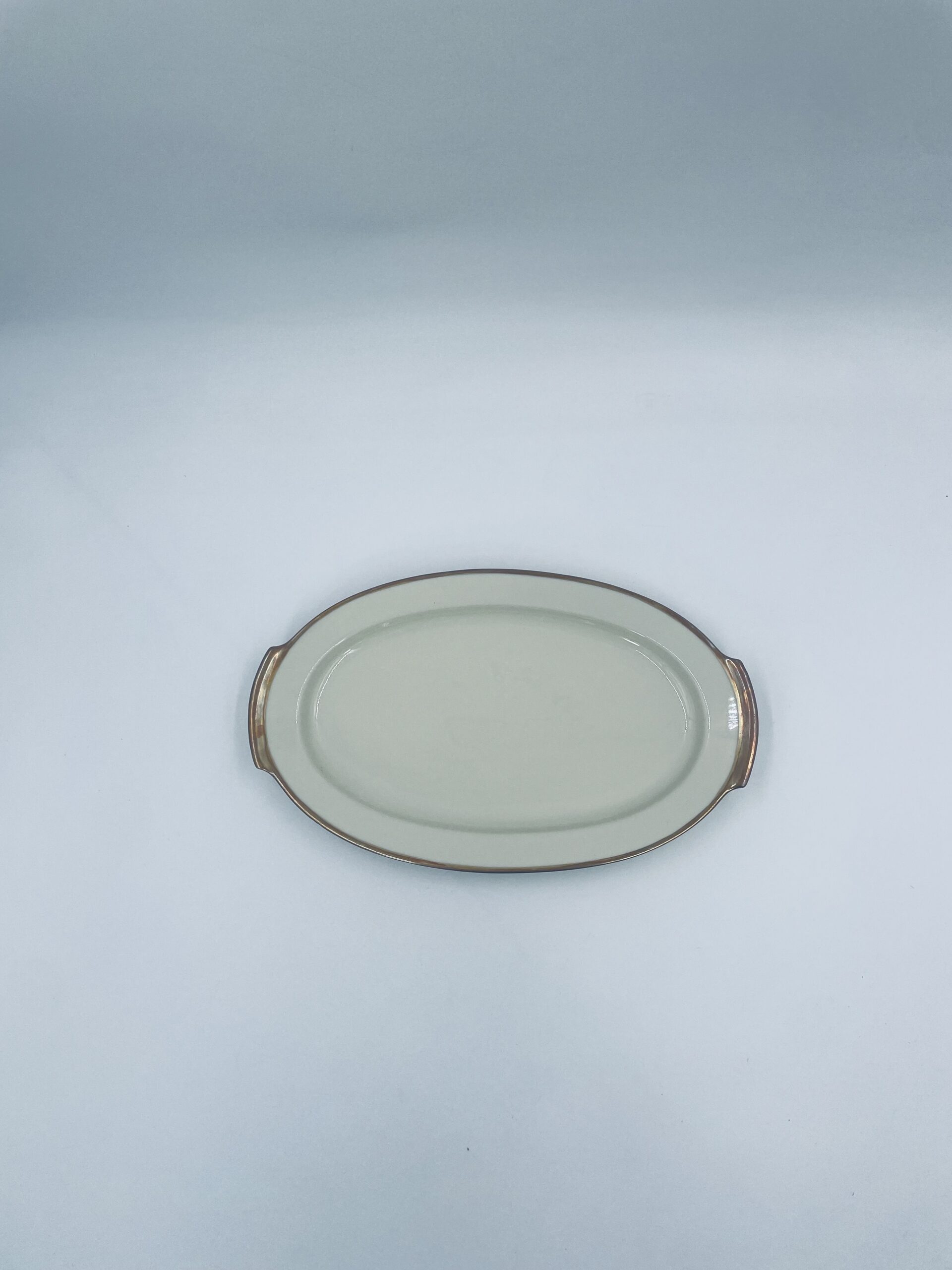 Porcelanowy półmisek z firmy Kahla w kolorze ecru wykończony złoconymi obramowaniami.
