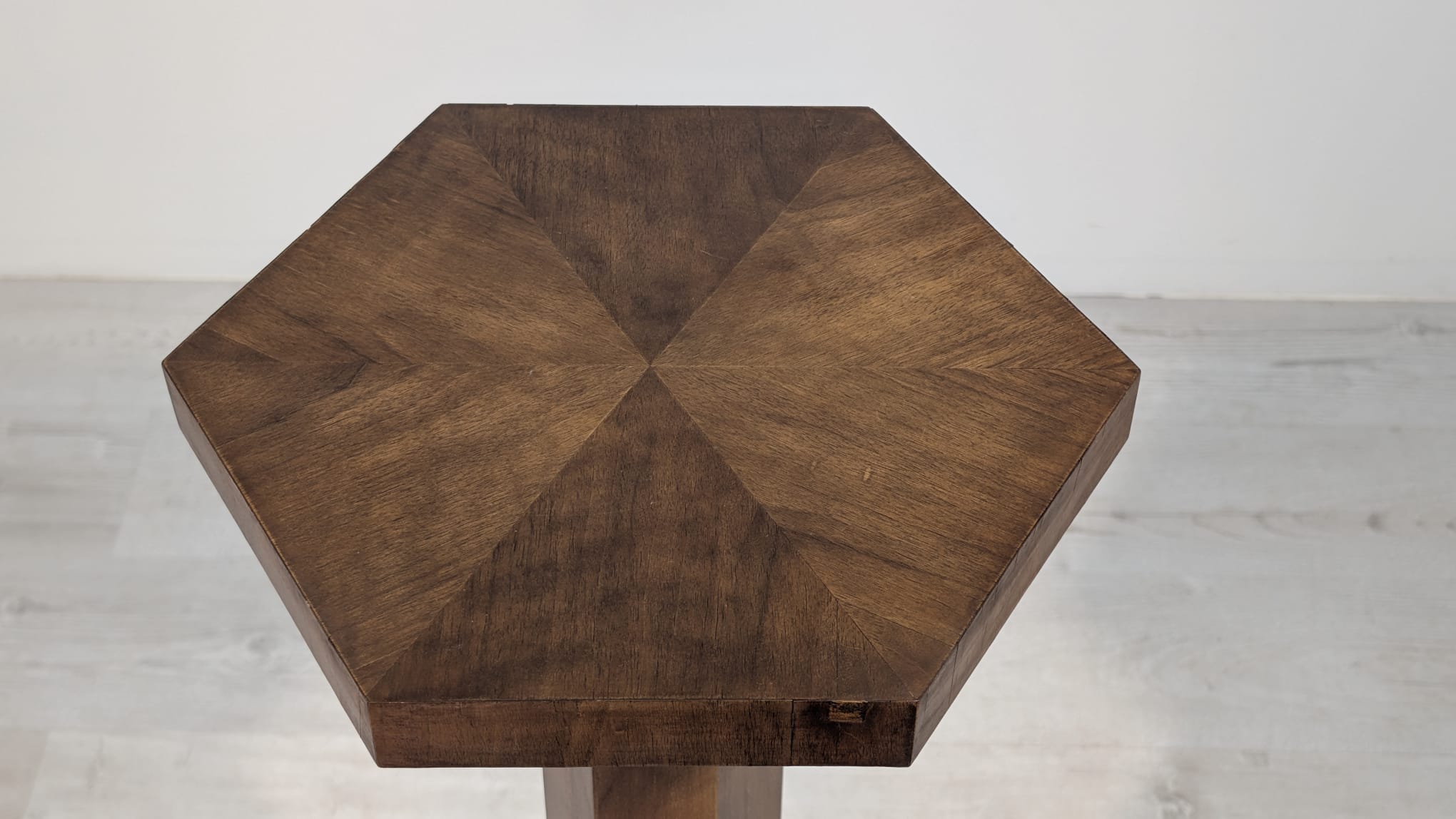 Solidna, drewniana podstawa/kwietnik pokryty fornirem z orzecha. Wykonana z wysokiej jakości drewna, prezentuje się elegancko i stylowo. Może służyć jako podstawa pod doniczkę lub jako dekoracyjny element w domu lub ogrodzie.