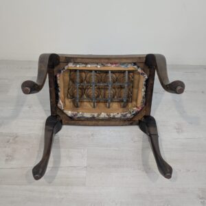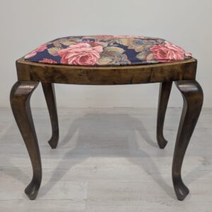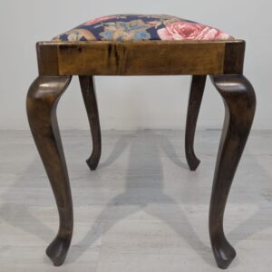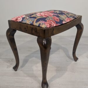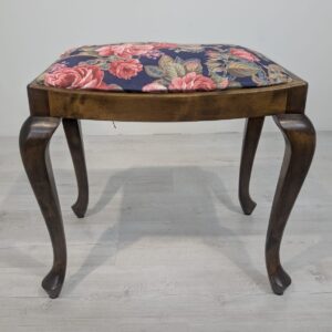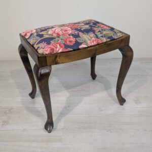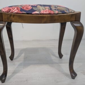Stylowy puf w stylu Ludwika XV na sprężynach. Mebel posiada rzeźbione, drewniane nogi oraz ozdobne, tapicerowane siedzisko. Produkt używany, ale w dobrym stanie zachowania. Idealny do uzupełnienia aranżacji w stylu vintage lub klasycznym.