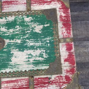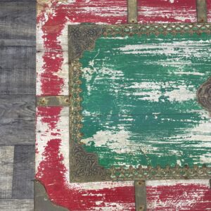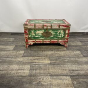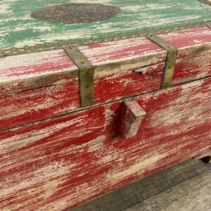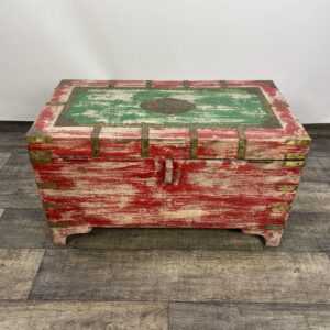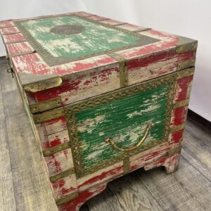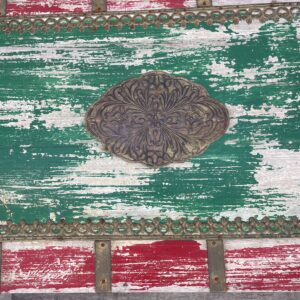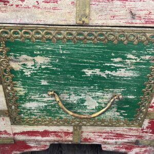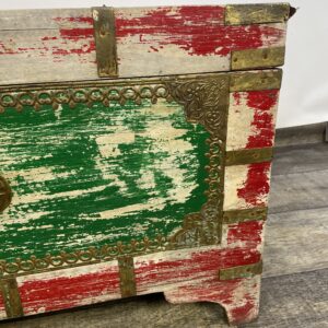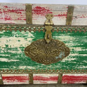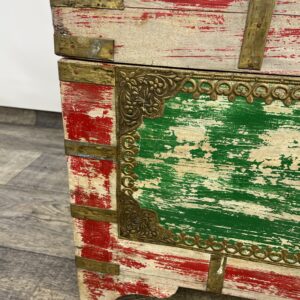 Kufer wykonany z drewna palisandrowego malowany i z okucia mi z mosiądzu.