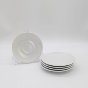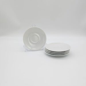 Biały talerzyk, spodek marki Rosenthal z kolekcji Epoque. Przedmiot jest używany, ale w dobrym stanie. Może być przydatny jako dodatek do zastawy stołowej lub jako dekoracja.
