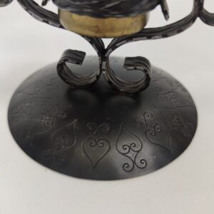 Stylowy metalowy stojak na wino z możliwością podgrzania i utrzymania odpowiedniej temperatury.