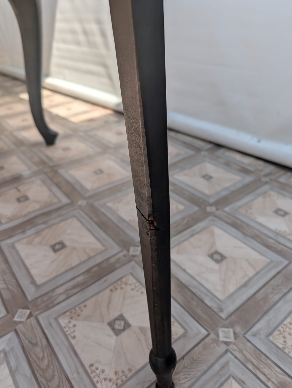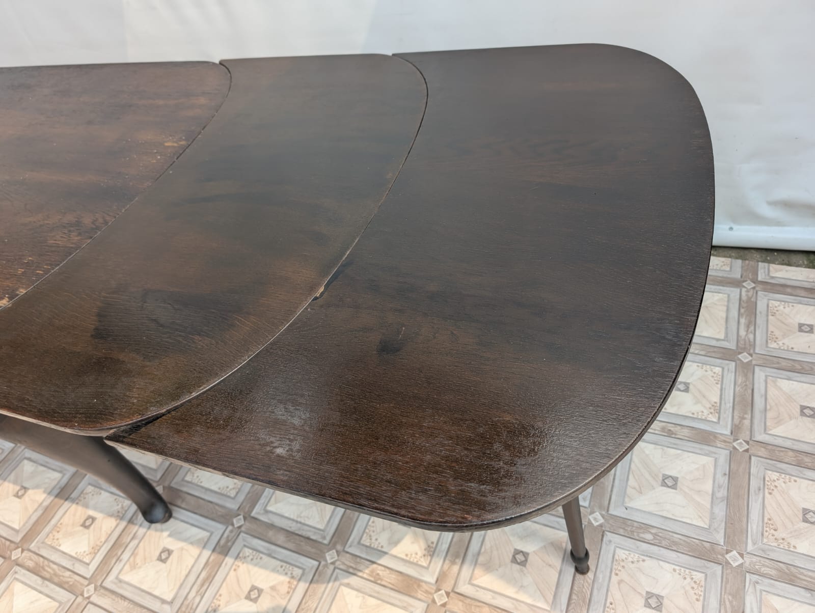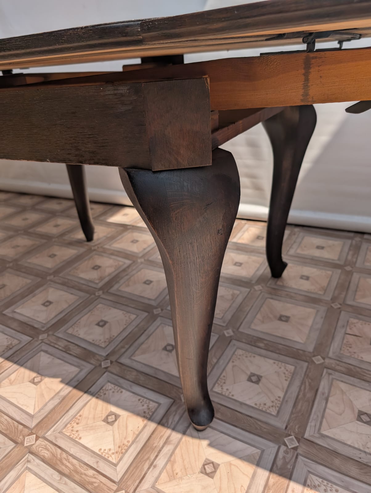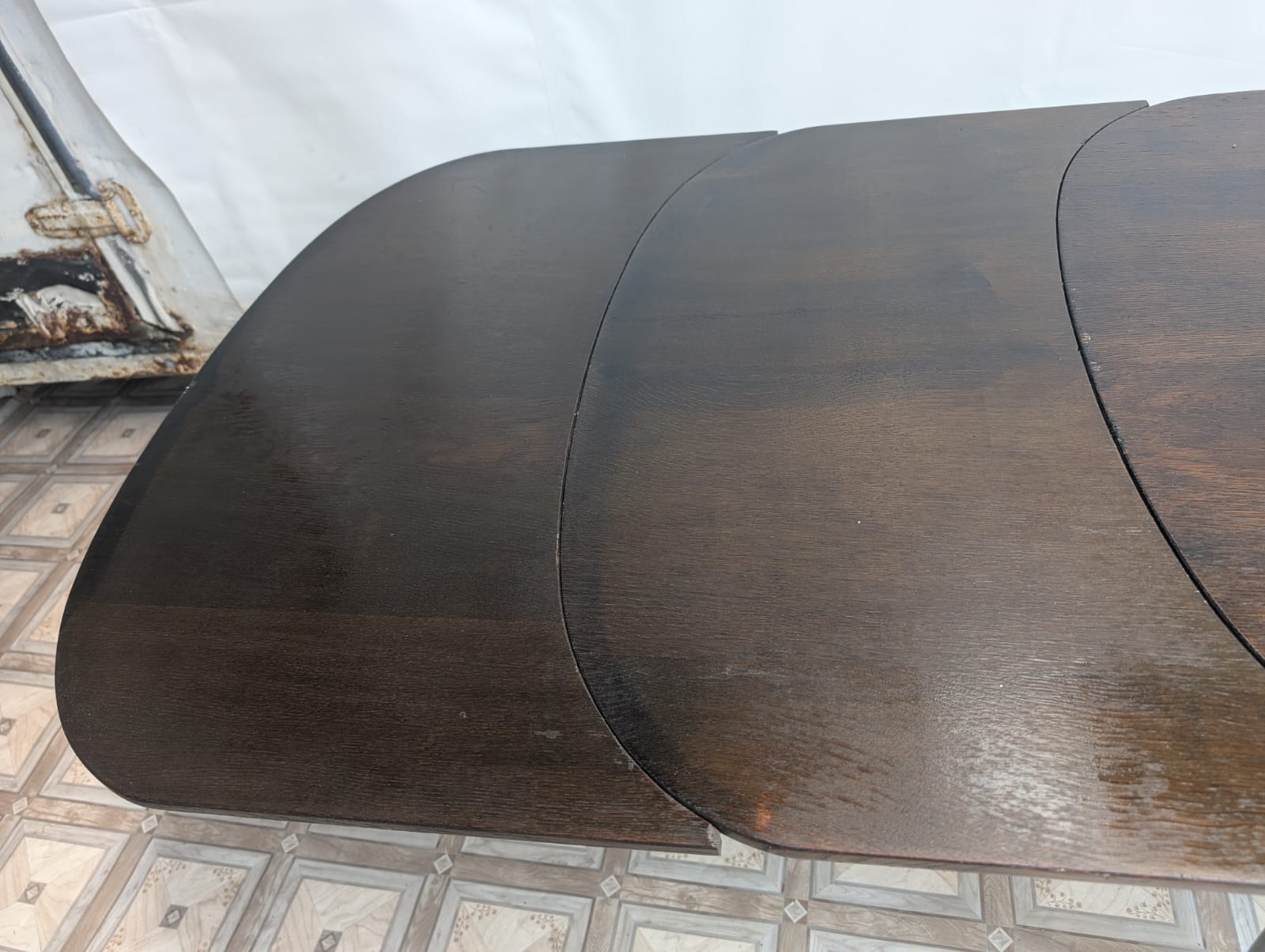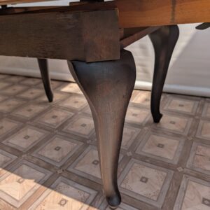 Stół posiada oznaki minionego czasu oraz na nodze wystającej po rozłożeniu widać pęknięcie nogi.
