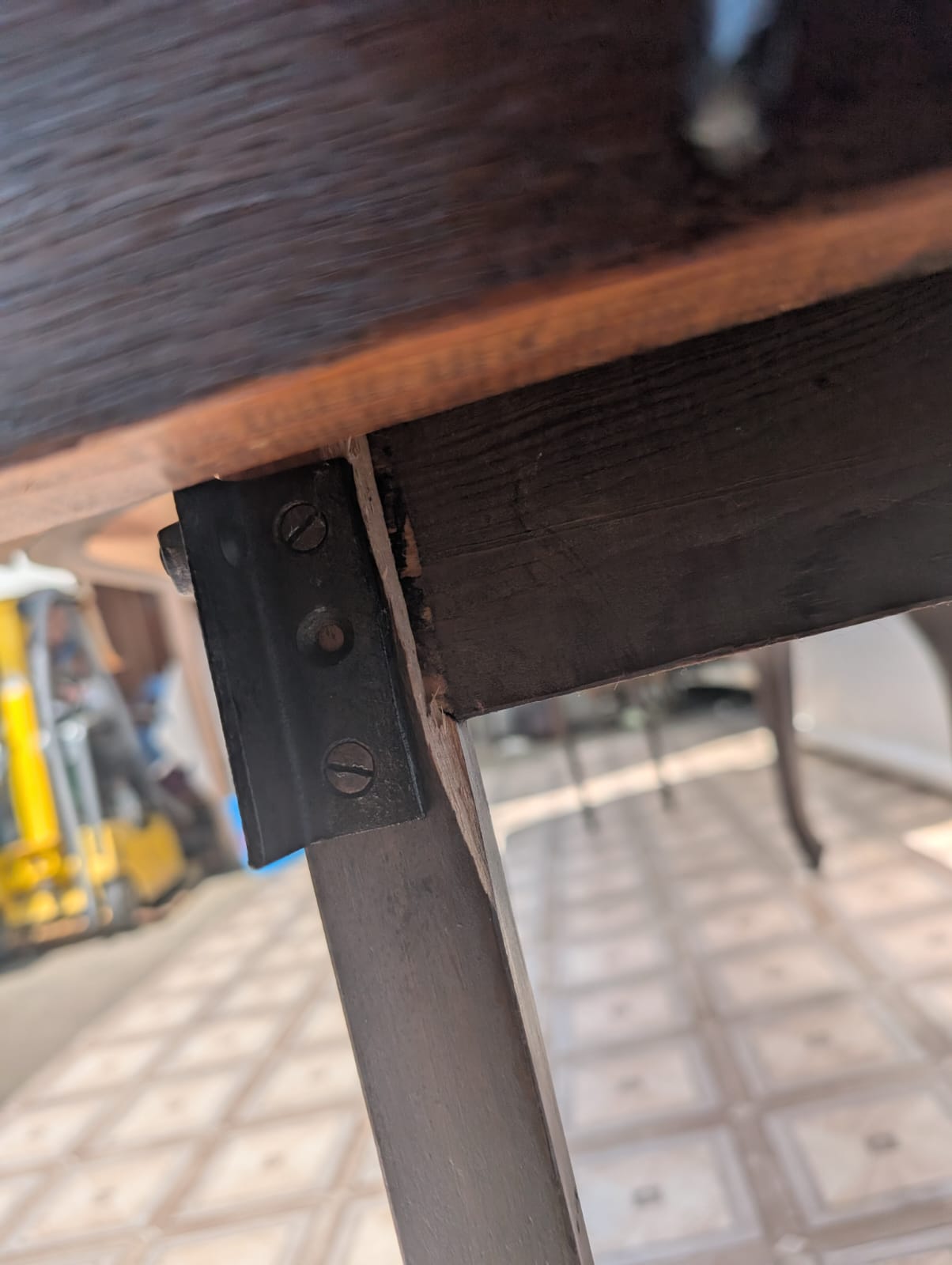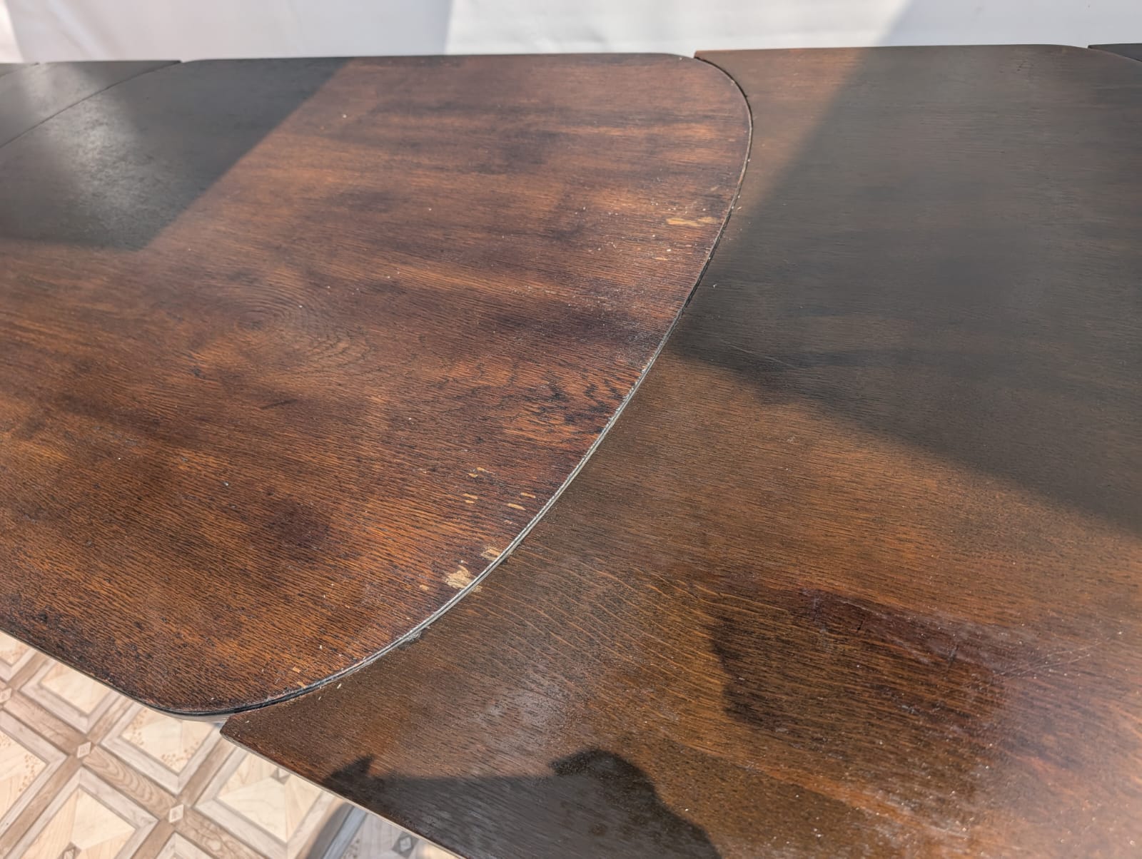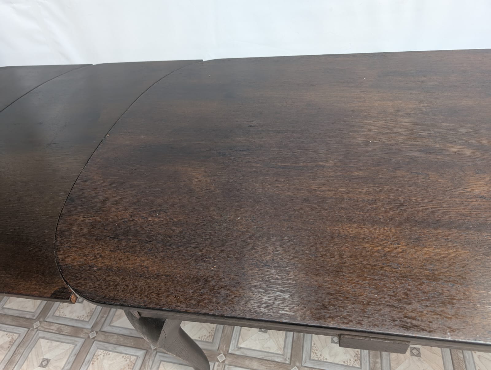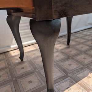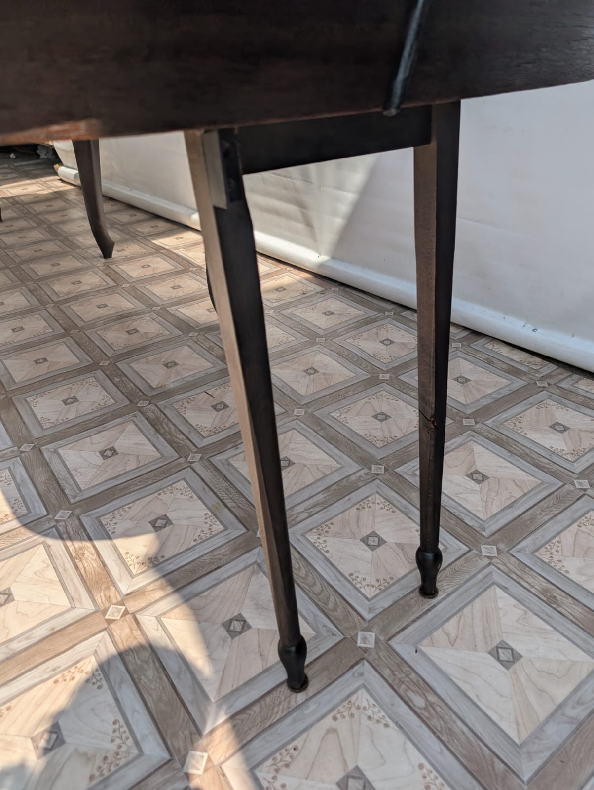 Stół posiada oznaki minionego czasu oraz na nodze wystającej po rozłożeniu widać pęknięcie nogi.